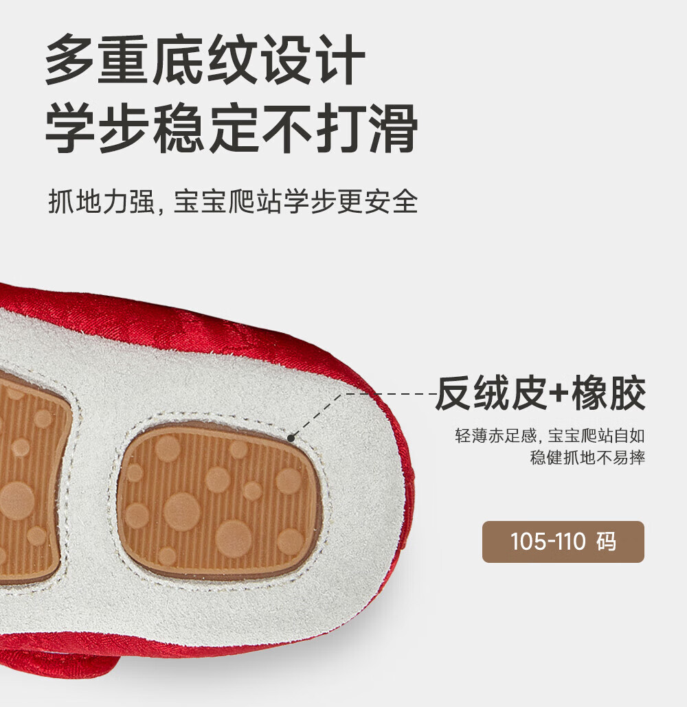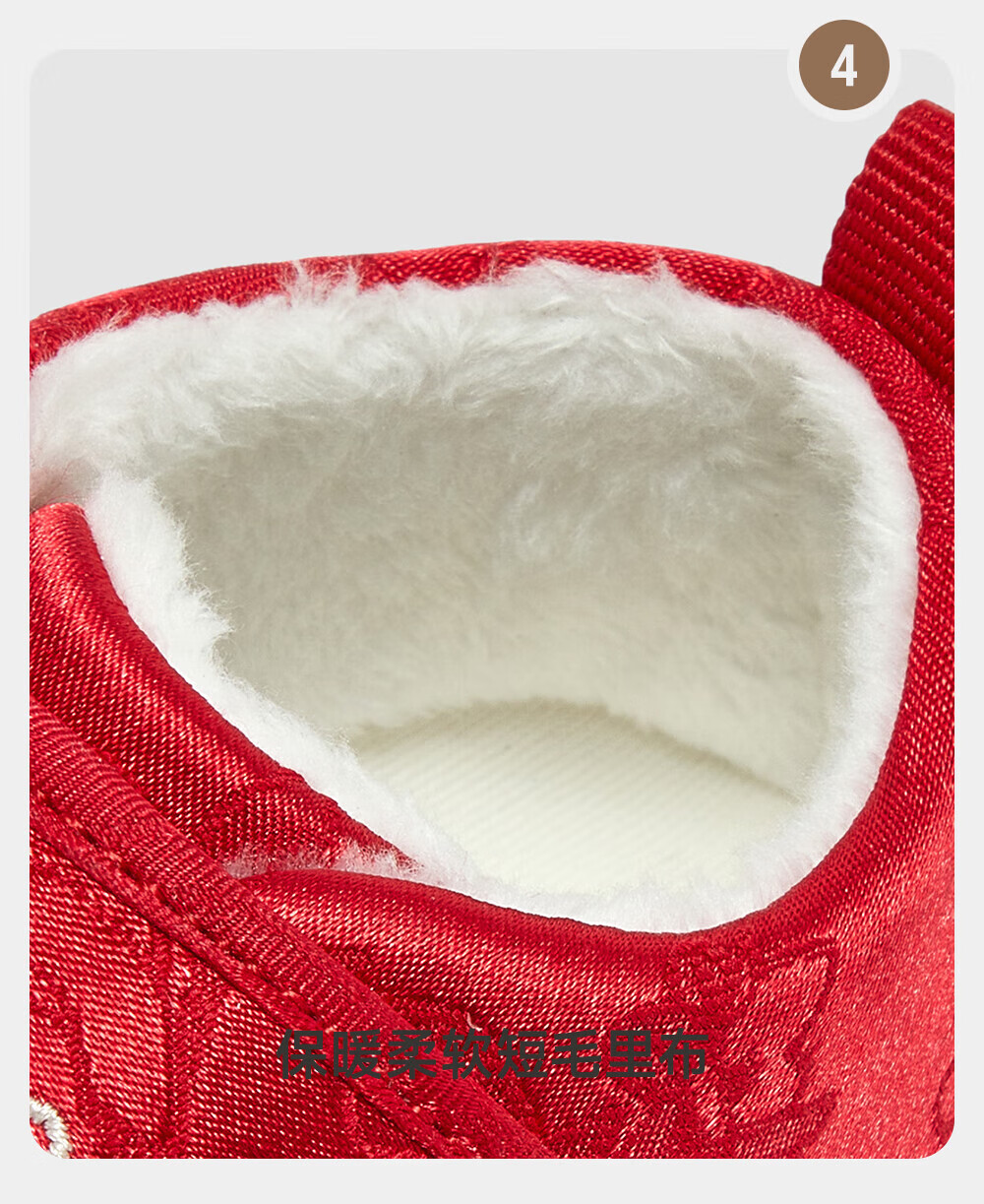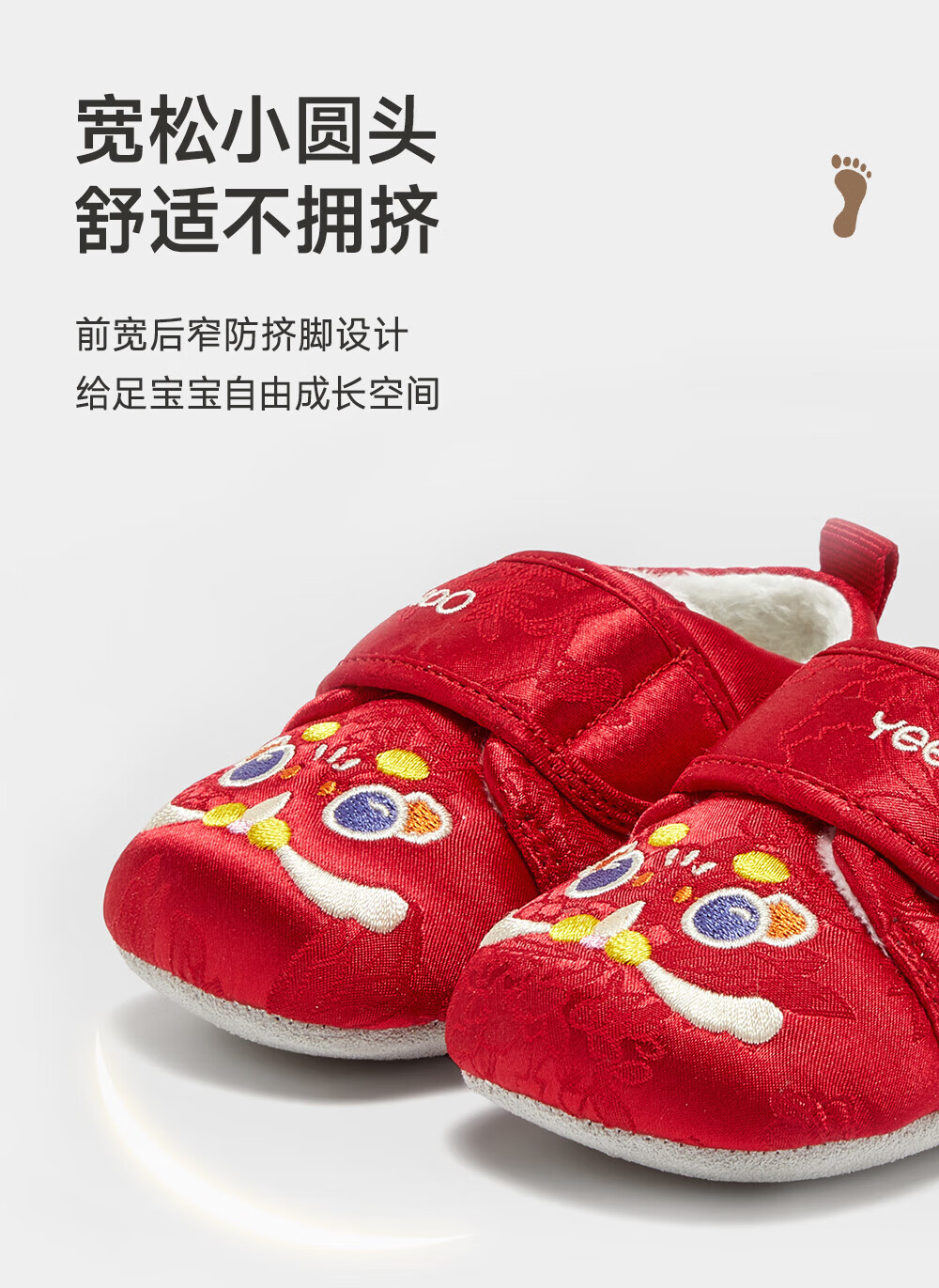 Ying's YEEHOO shopping mall same style children's shoes New Year festive baby shoes autumn and winter warm plus velvet shoes New Year red toddler shoes suitable for 6-18 months 20 foot length 11.9-12.5/inner length 12.6