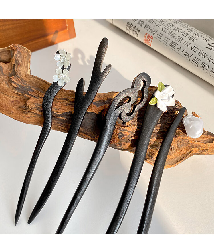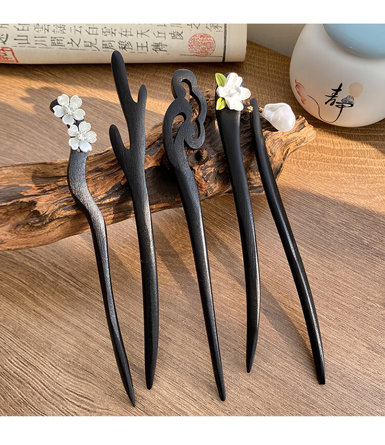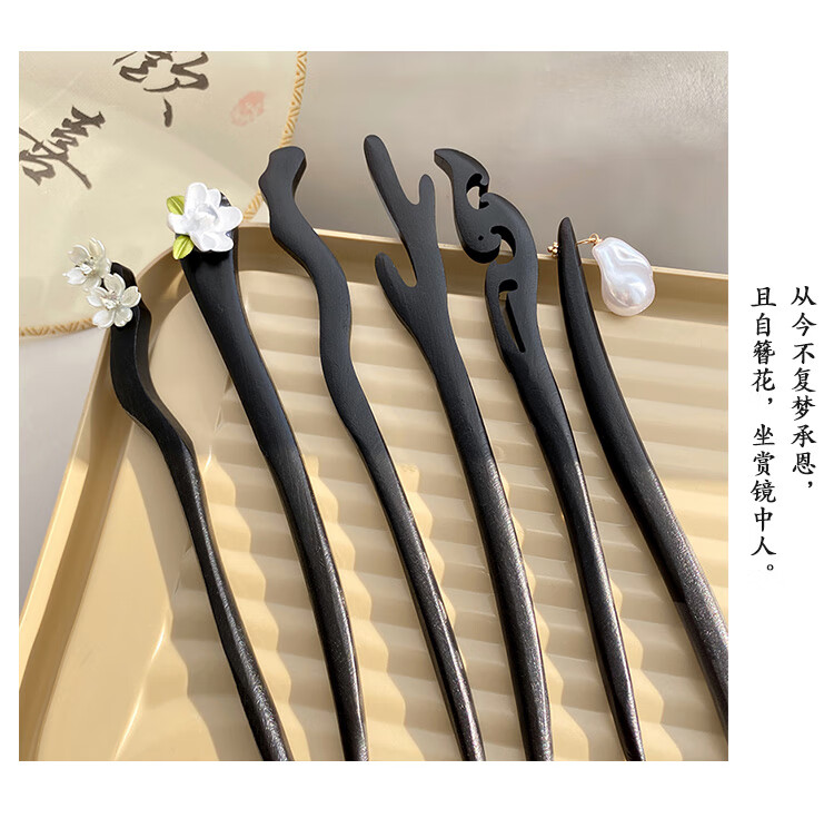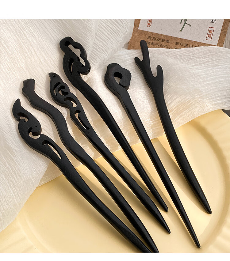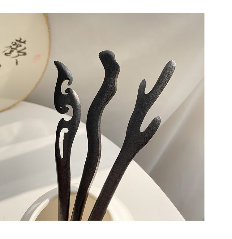 New Chinese style wooden hairpin for women, ancient style Hanfu cheongsam, hairpin accessories, hairpin, hairpin, horse face skirt, headdress, imitation ebony - Ruyi, single branch, no decoration