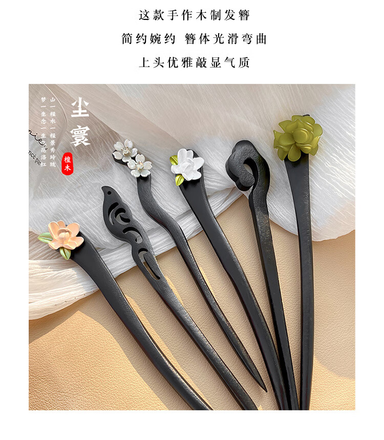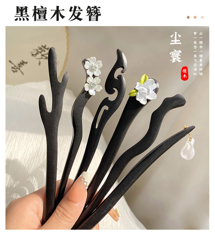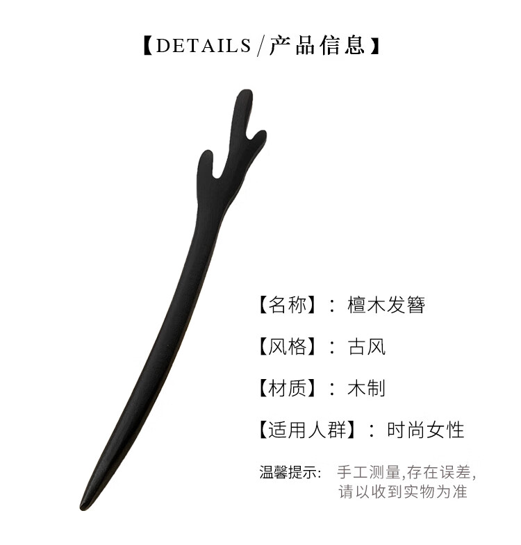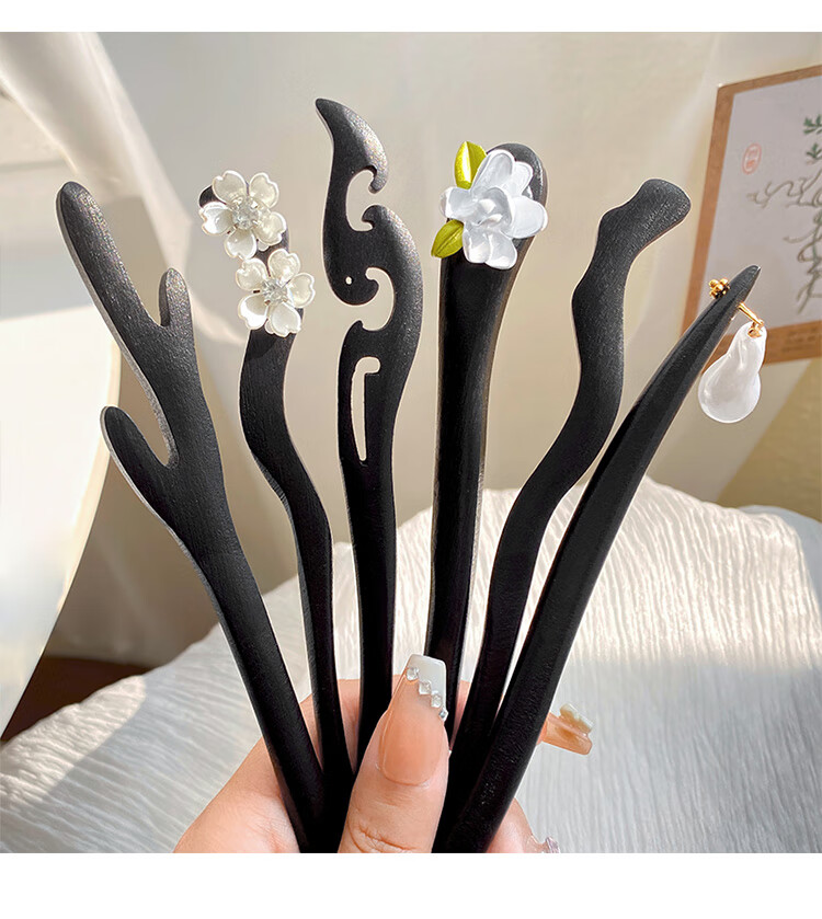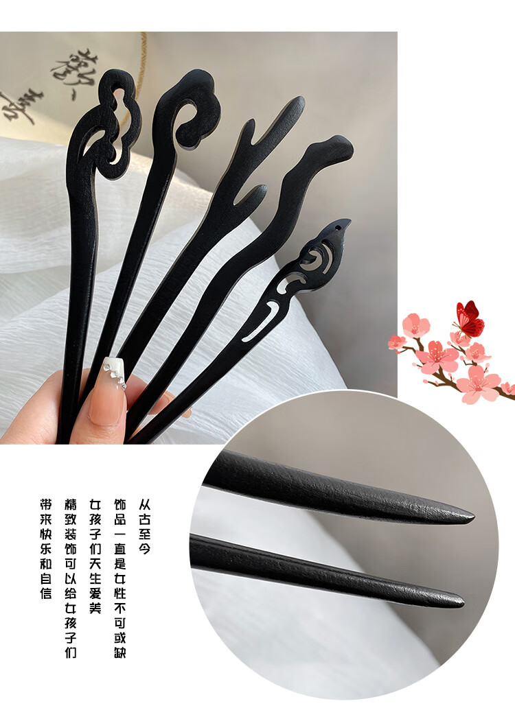 New Chinese style wooden hairpin for women, ancient style Hanfu cheongsam, hairpin accessories, hairpin, hairpin, horse face skirt, headdress, imitation ebony - Ruyi, single branch, no decoration