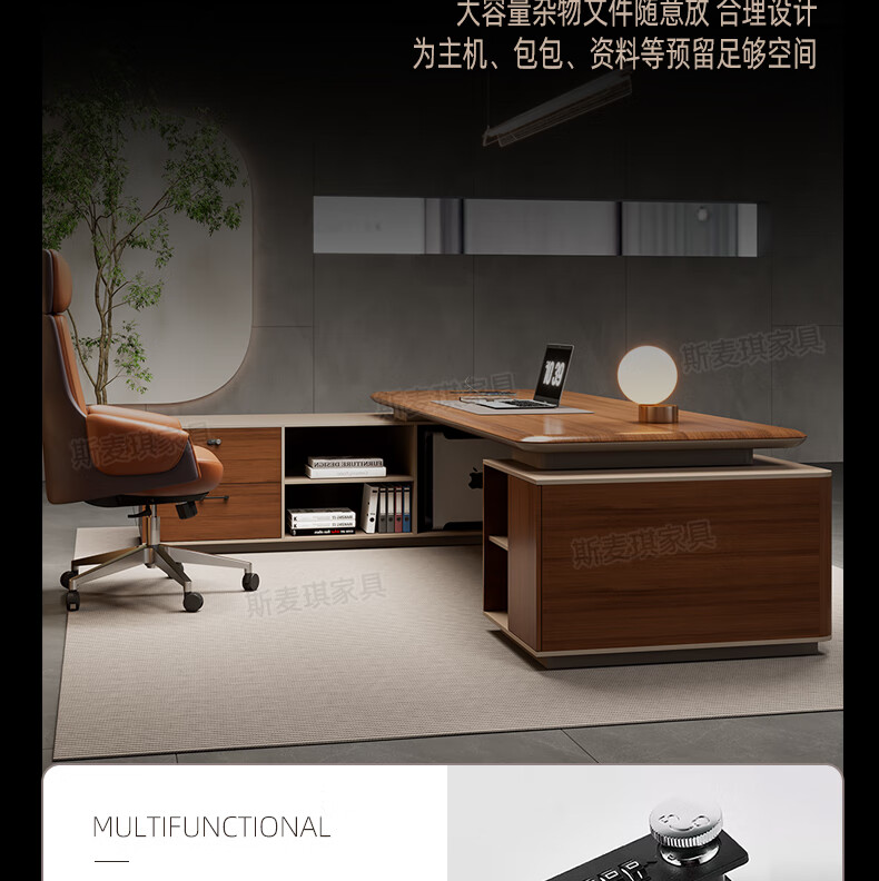 Simaqi boss desk office desk light luxury high-end blister paint simple modern executive desk manager desk president desk 2.6 meters boss table + chair + seven doors regular style