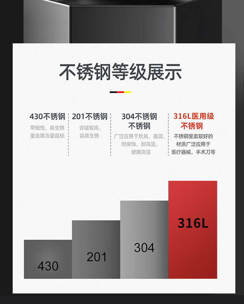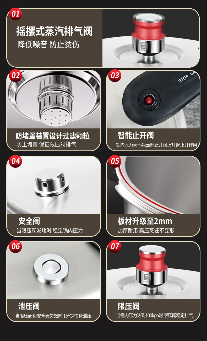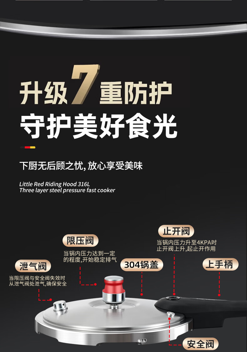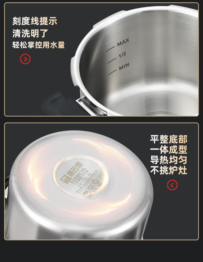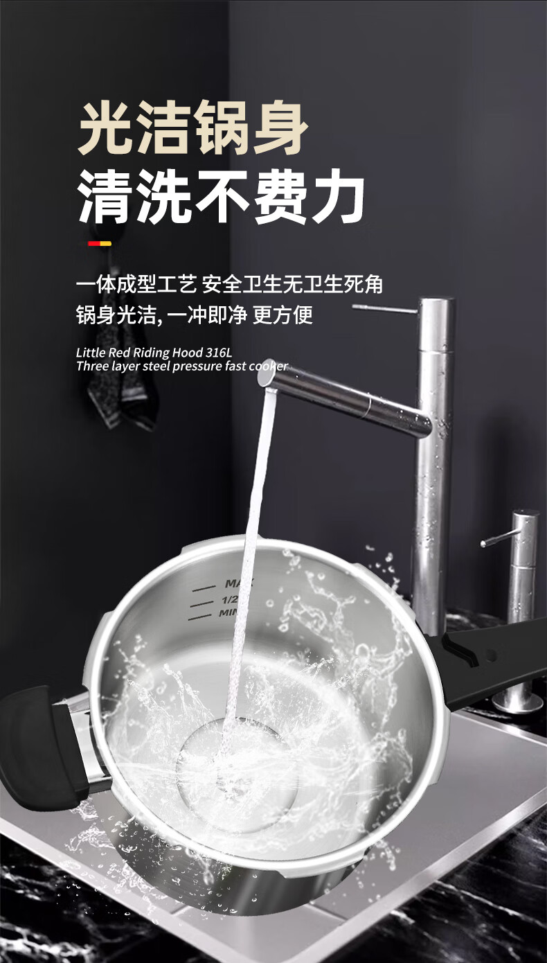 Konbach pressure cooker 316 food grade stainless steel household gas induction cooker universal one-piece explosion-proof pressure cooker upgraded version 316 steel 100kpa 22cm 6L