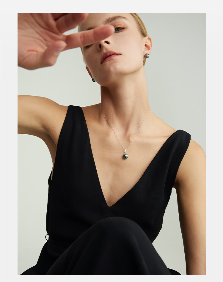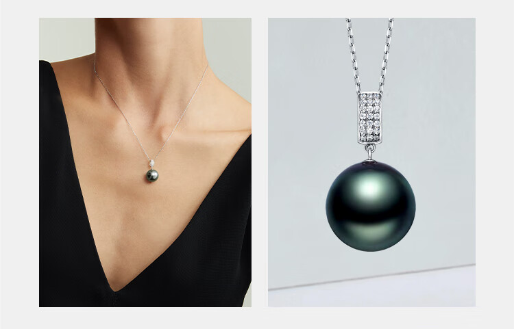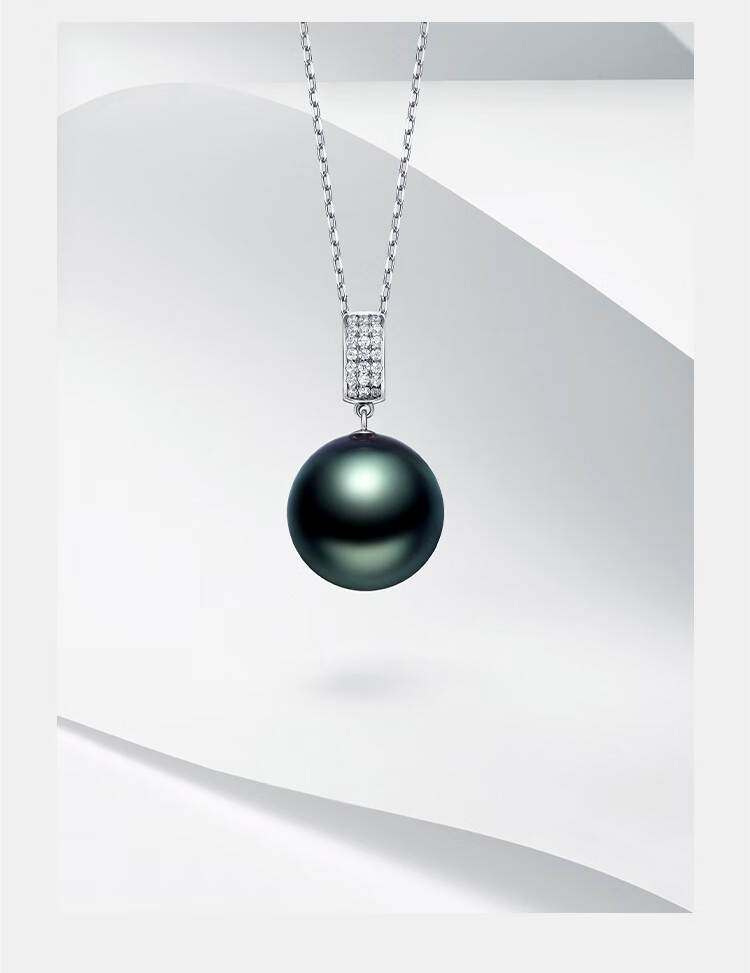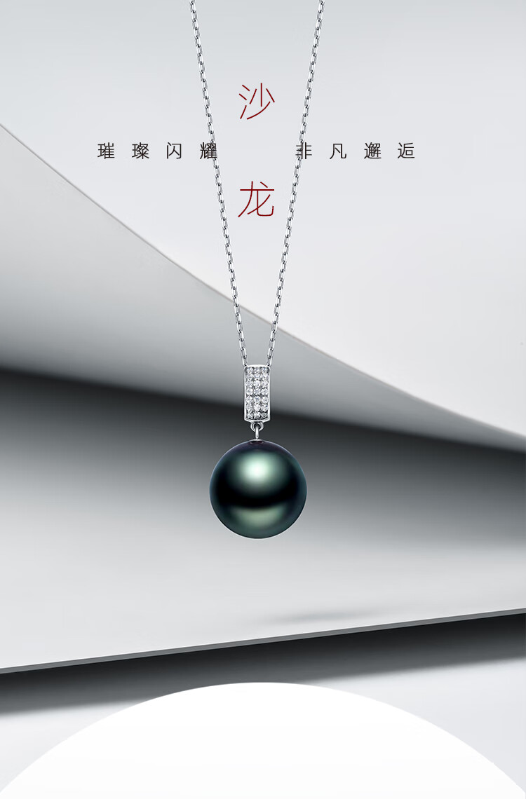 Chinese Valentine's Day gift for girlfriend 18k gold seawater Tahitian black pearl pendant salon pearl necklace gift beads G18k/approx. 12-13mm/slightly flawed