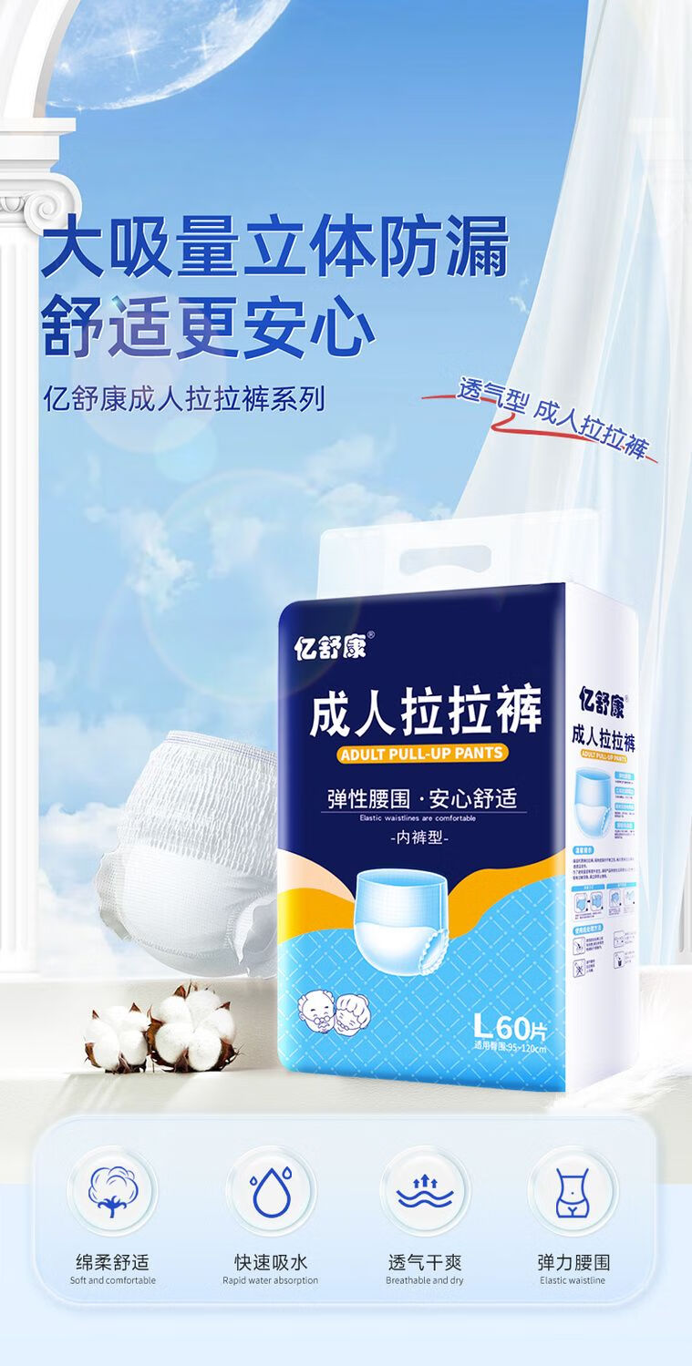 Yi Shukang thickened adult pull-up pants for the elderly, diapers for men and women, elderly incontinence underwear type adult diapers, economical size XXL size, 40 pieces x 3 packs