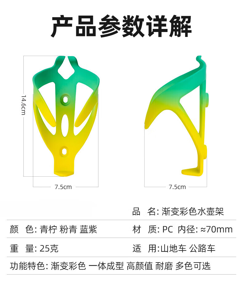 TLXT Bicycle Water Bottle Cage Road Mountain Bike Water Bottle Bracket Gradient Water Bottle Cup Holder Cycling Equipment Accessories Vitality Lime-Water Bottle Cage + Vitality Lime Kettle 710ML