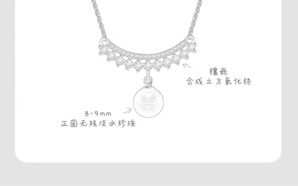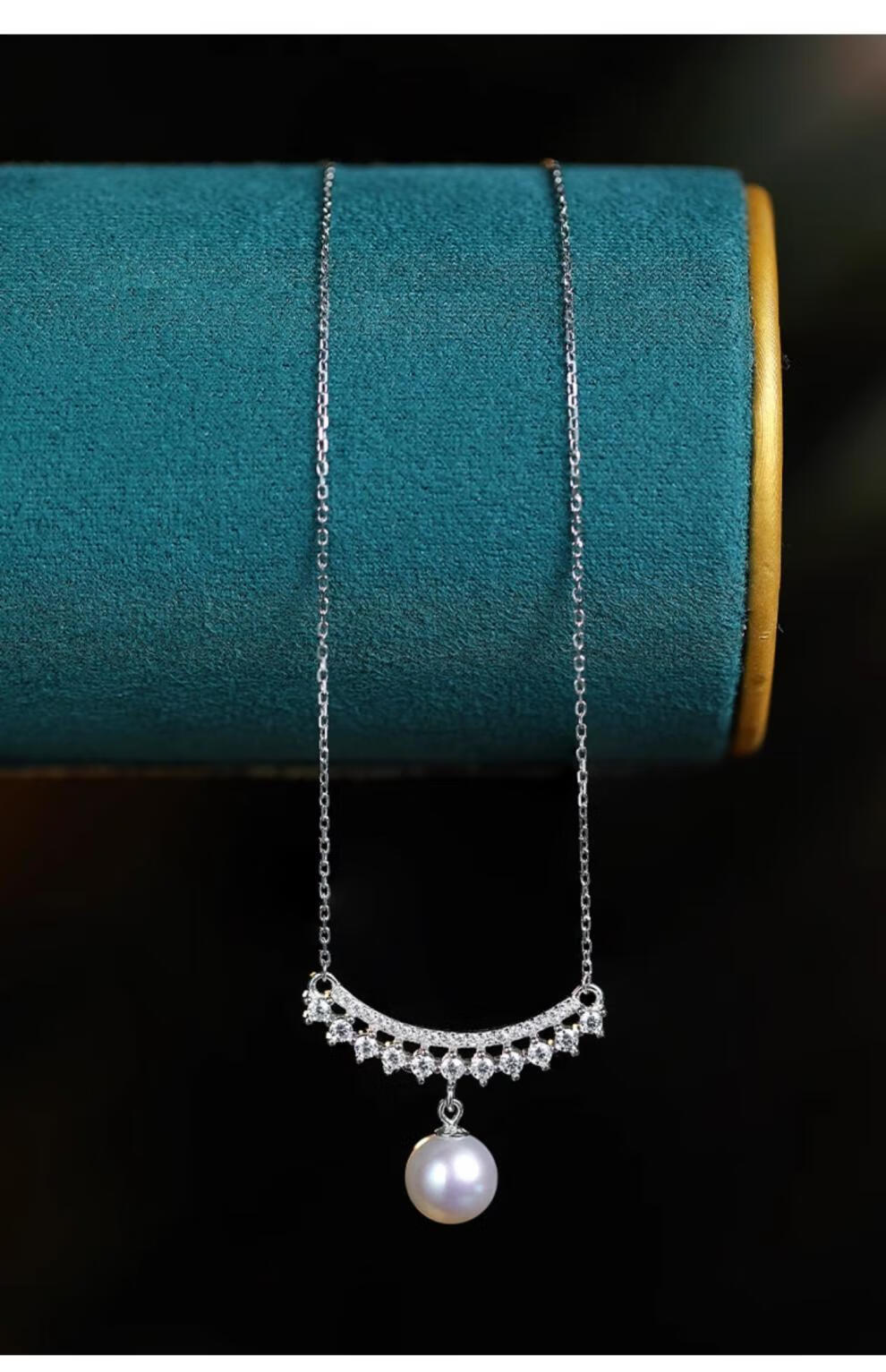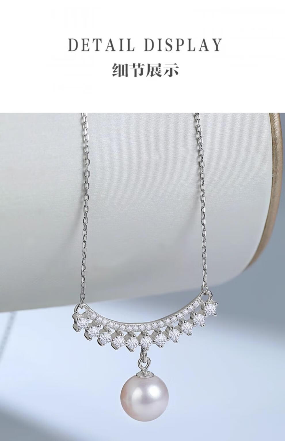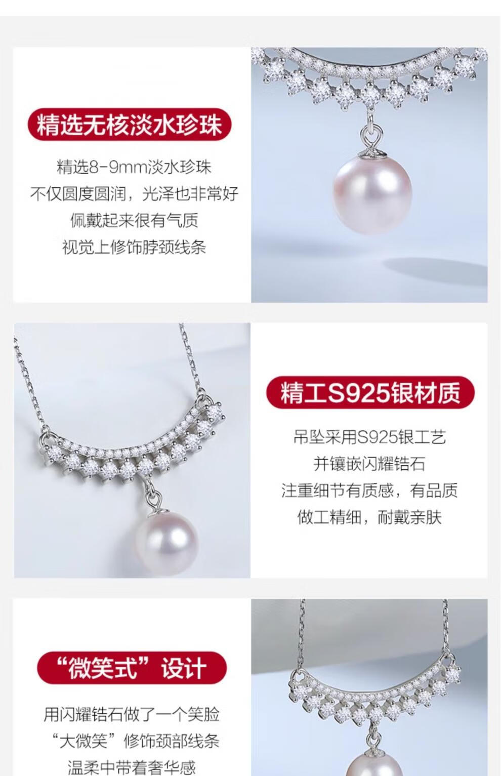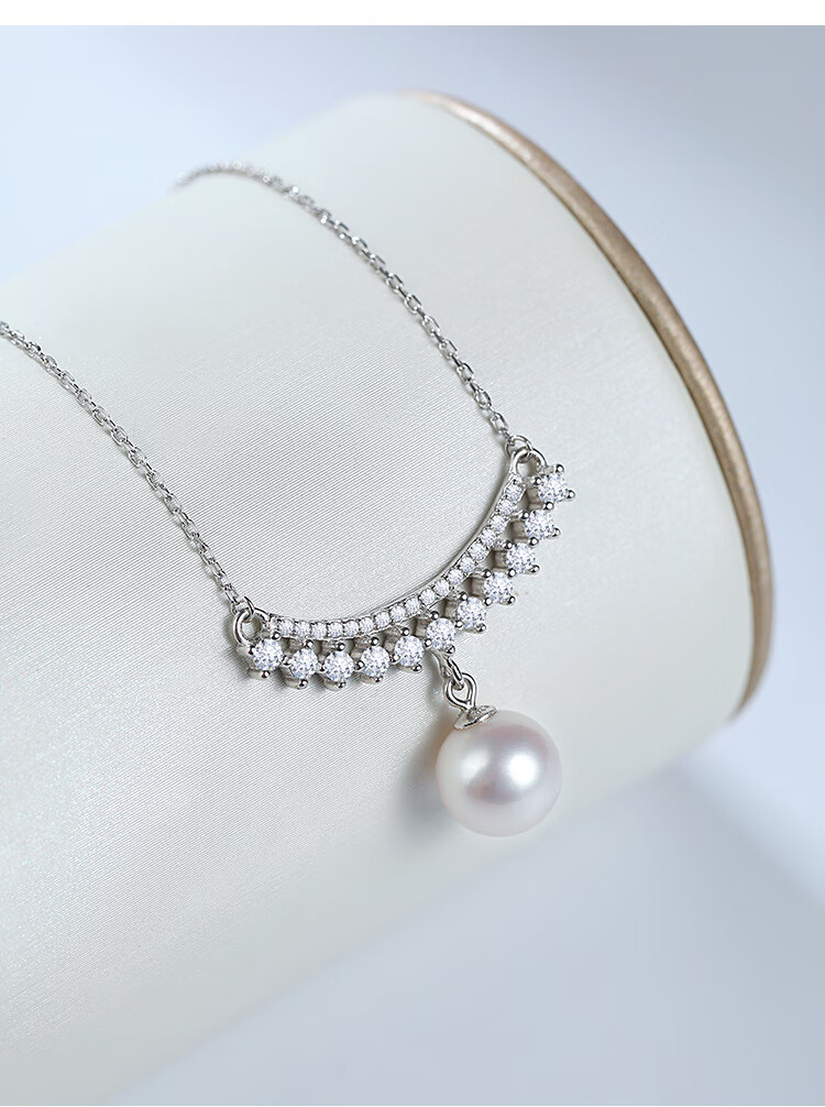 Chinese Valentine's Day gift for girlfriend smile8-9mm perfect round seedless freshwater pearl necklace women's S925 silver clavicle silver/8-9mm perfect round freshwater pearl pendant