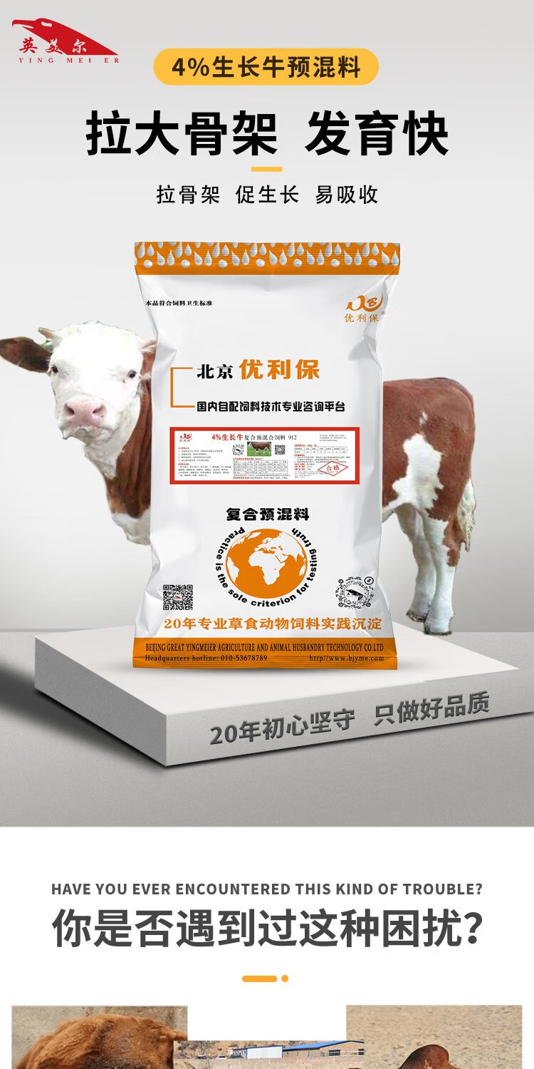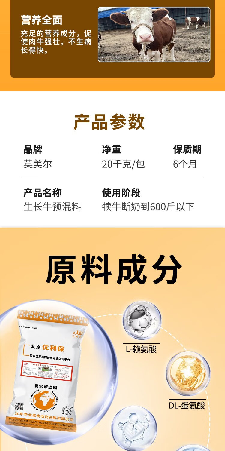 Inmer Inmer growing cattle premix special for calves fast growing calves calf skeleton trace element feed wholesale cow premix 20kg*2 bags 102 per bag