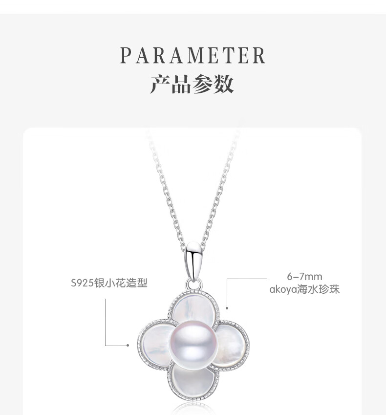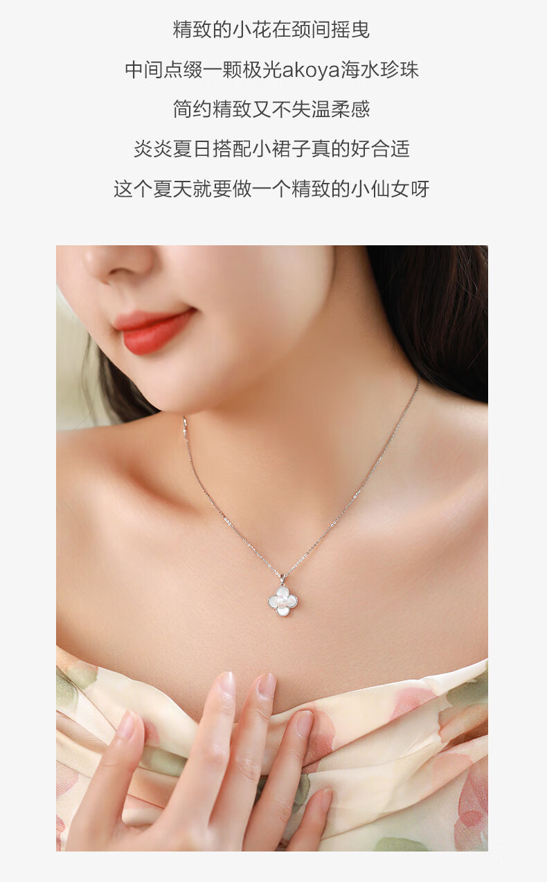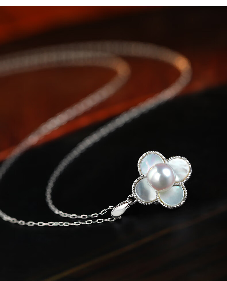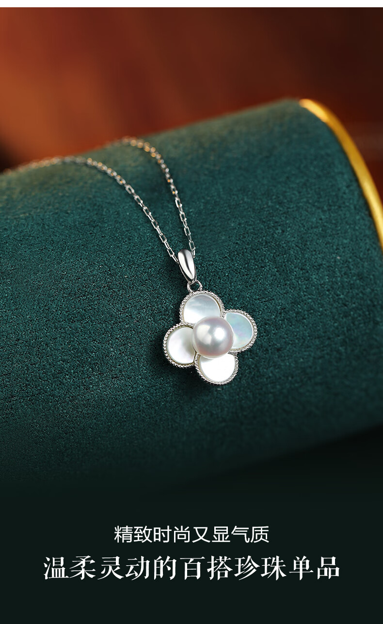 Chinese Valentine's Day gift for girlfriend warm jewelry 6-7mm perfect round akoya seawater pearl necklace S925 silver four-leaf clover 6-7mm perfect round seawater akoya pearl/silver