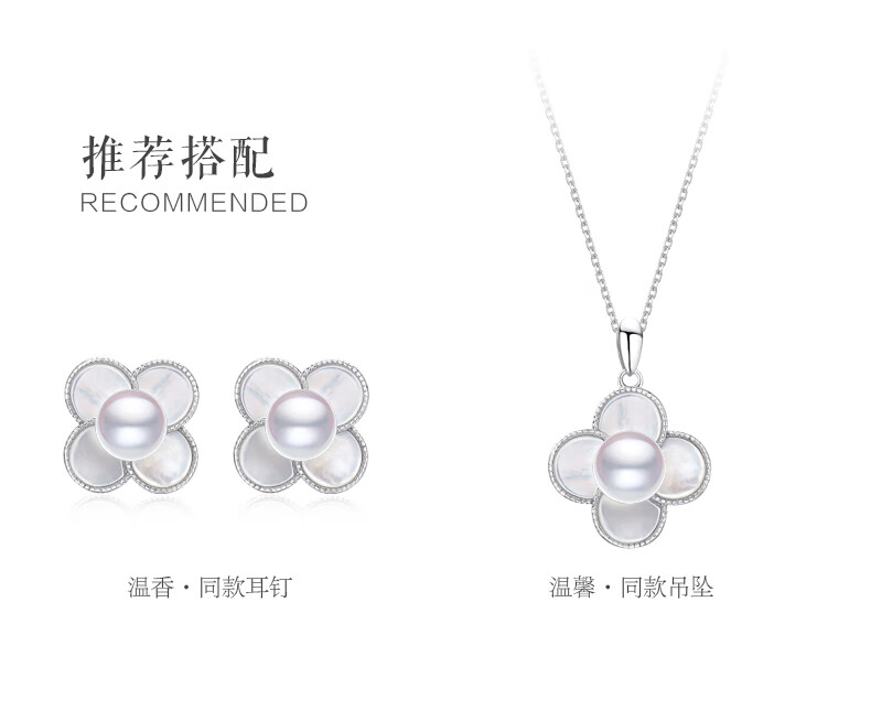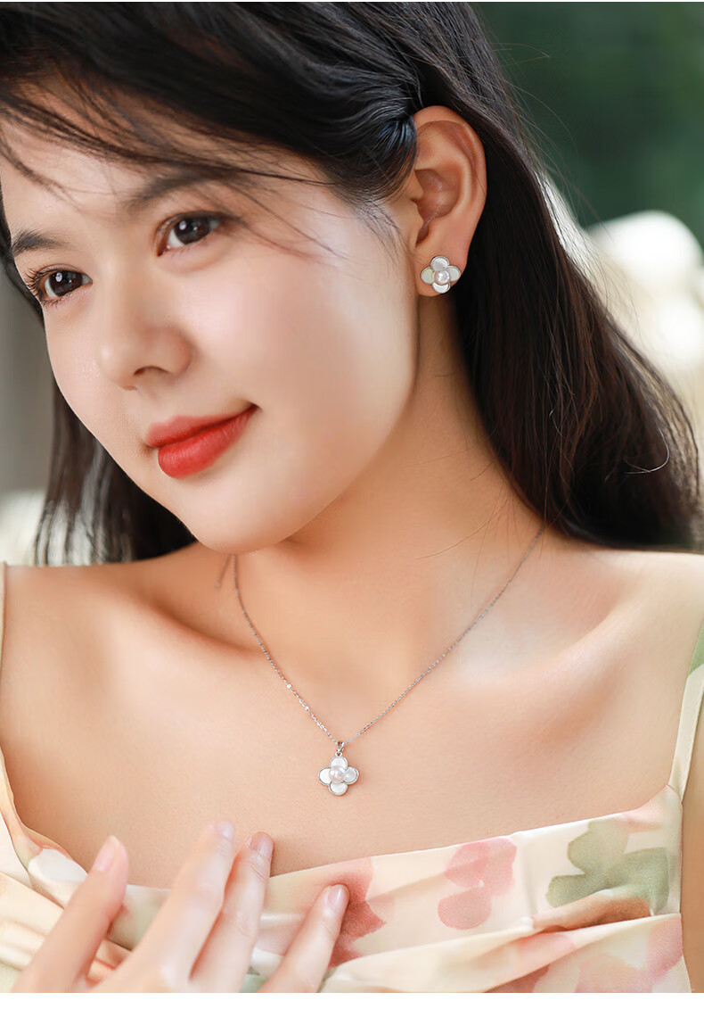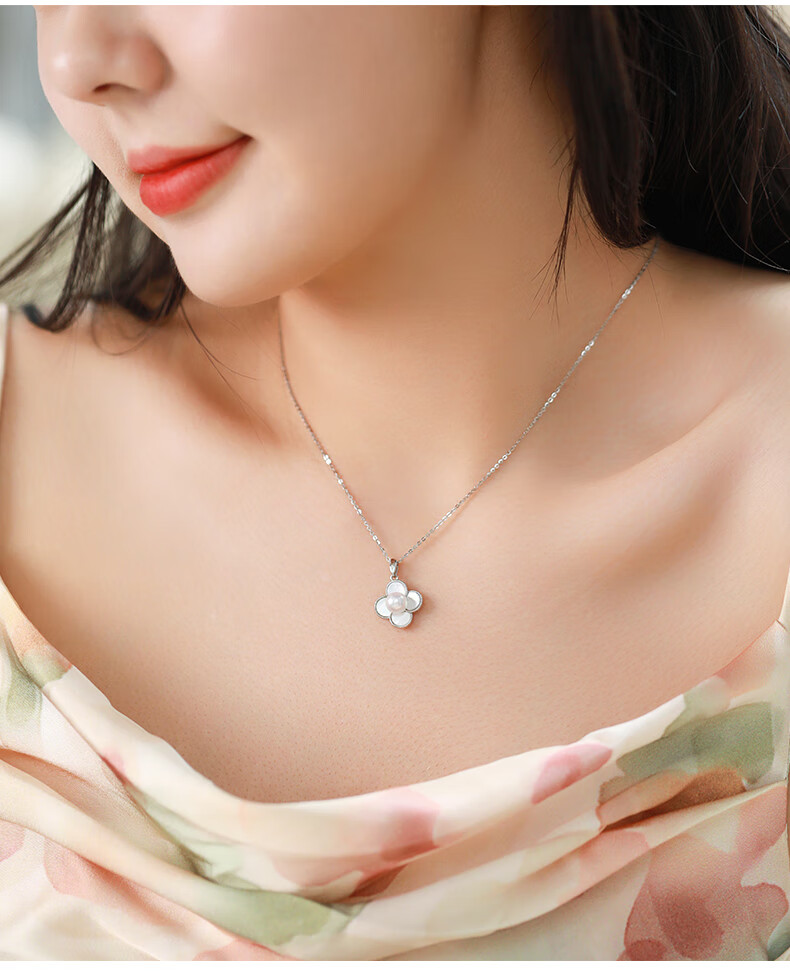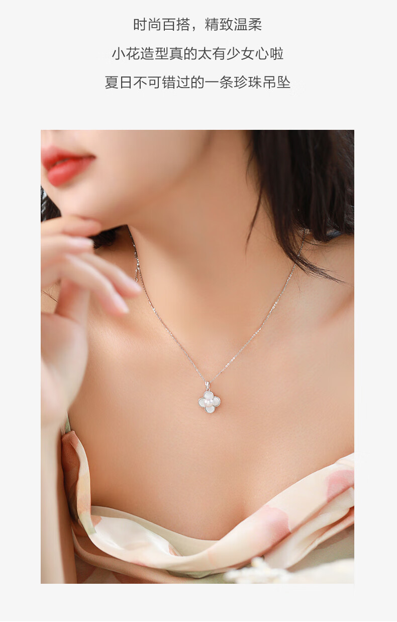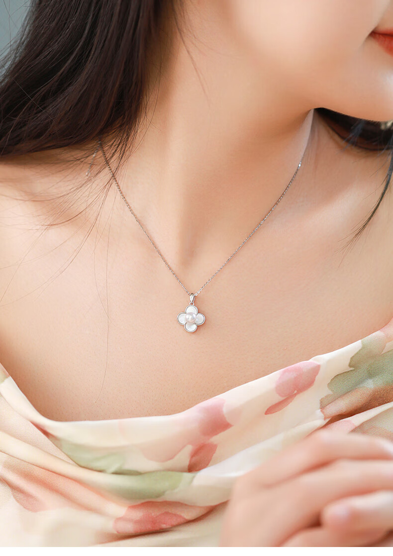 Chinese Valentine's Day gift for girlfriend warm jewelry 6-7mm perfect round akoya seawater pearl necklace S925 silver four-leaf clover 6-7mm perfect round seawater akoya pearl/silver