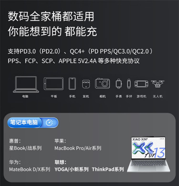 Lenovo Savior Power Supply 245W GaN Laptop Power Adapter Multi-device Compatible Computer Charger Savior 245W GaN Adapter (New Product Launched)