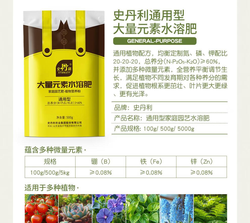Stanley (STANLEY) high nitrogen, phosphorus and potassium balanced water-soluble fertilizer special compound fertilizer for flowers 500g general-purpose 20-20-20 water-soluble fertilizer