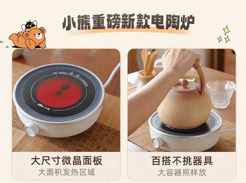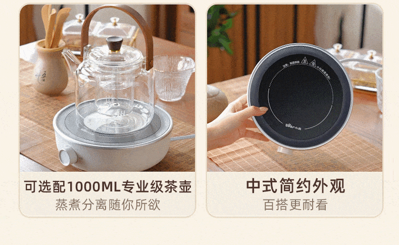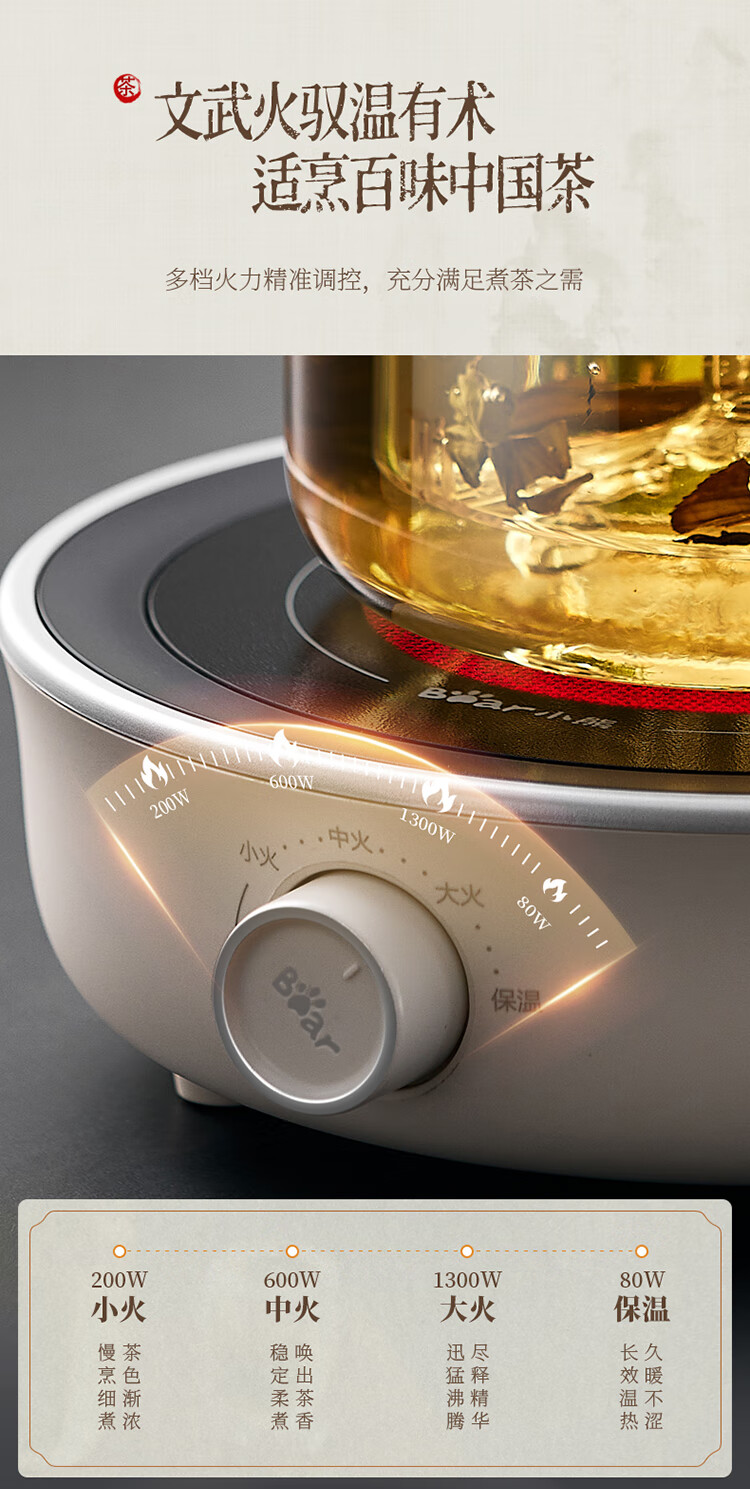 Bear Electric Ceramic Stove Mini Tea Stove Black Tea Old White Tea Pu'er Healthy Tea Stove Small Household Heating Multi-function Non-picking Pot Soft Cooking Surrounding the Stove for Tea DTL-J13Z5 with Teapot 1L
