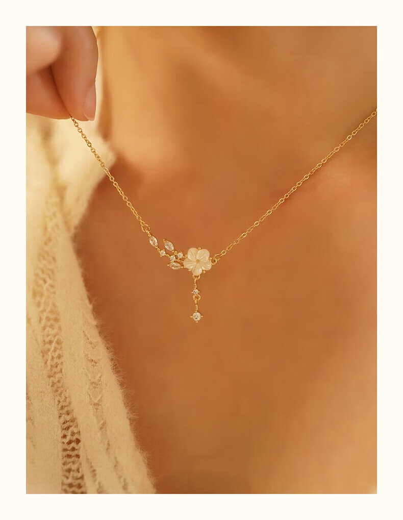 Farcoko Brand Camellia Necklace Bracelet Set Women's Fashion Accessories Birthday Anniversary Valentine's Day Gift for Girlfriend Necklace + Bracelet Set (Gold) - (Exquisite Gift Box)