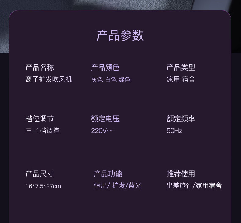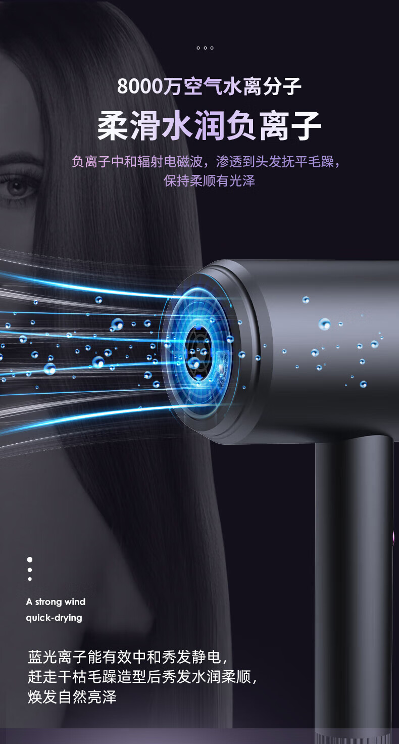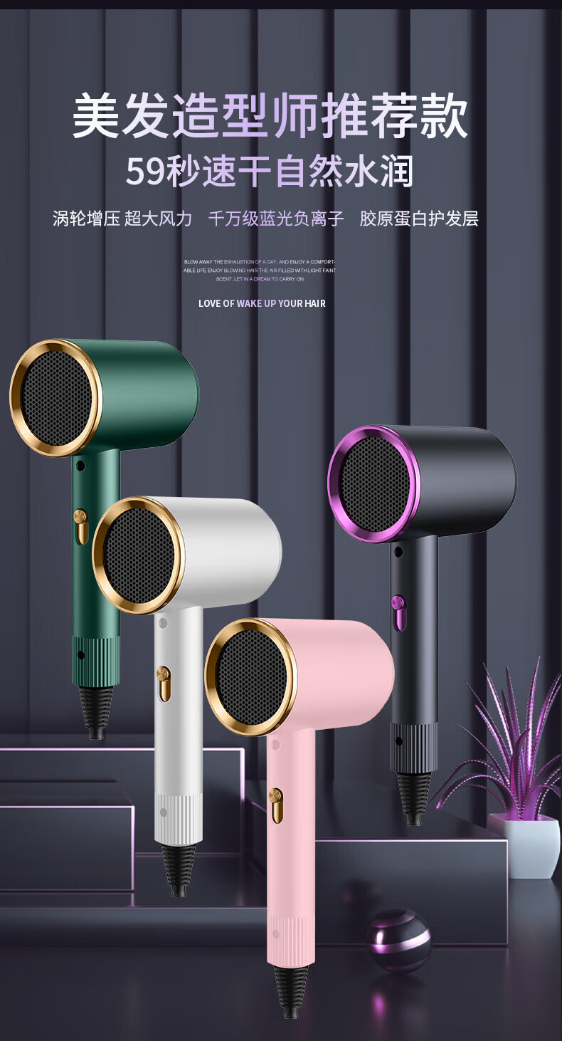 Xiaomili student dormitory-specific hair dryer, household silent negative ion high-power non-harming campus hot air hair dryer 800W dormitory-specific - Charming White - negative ion hair care