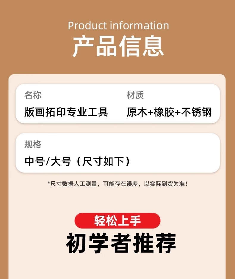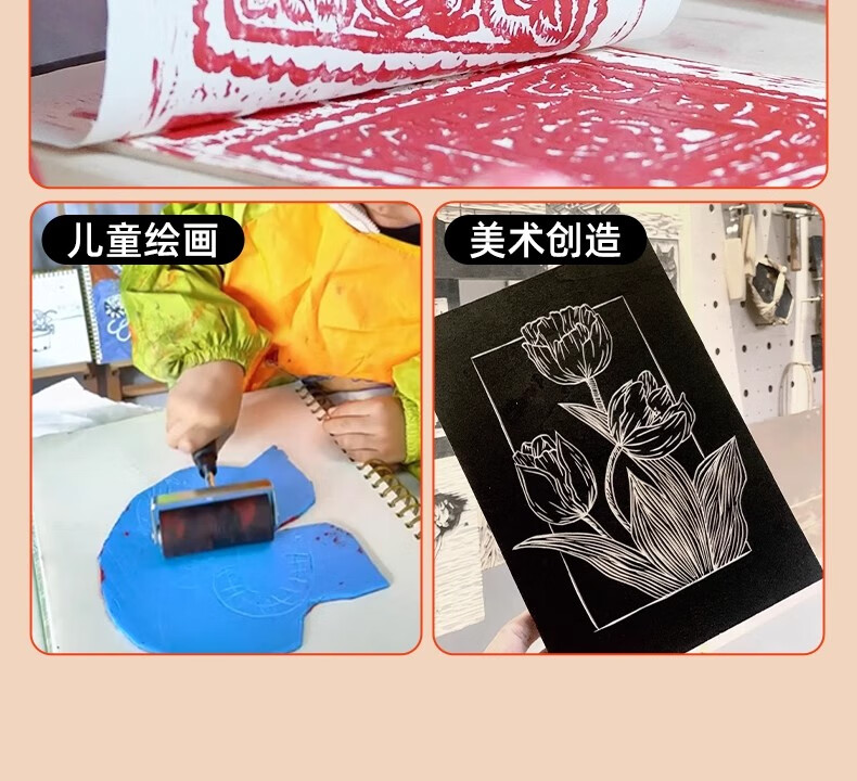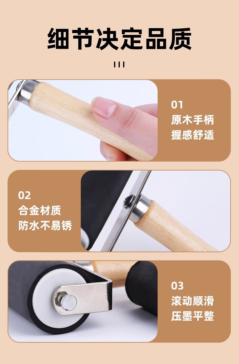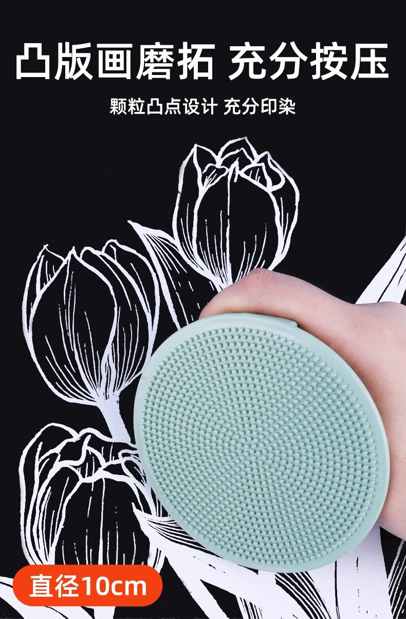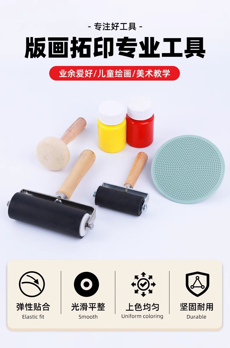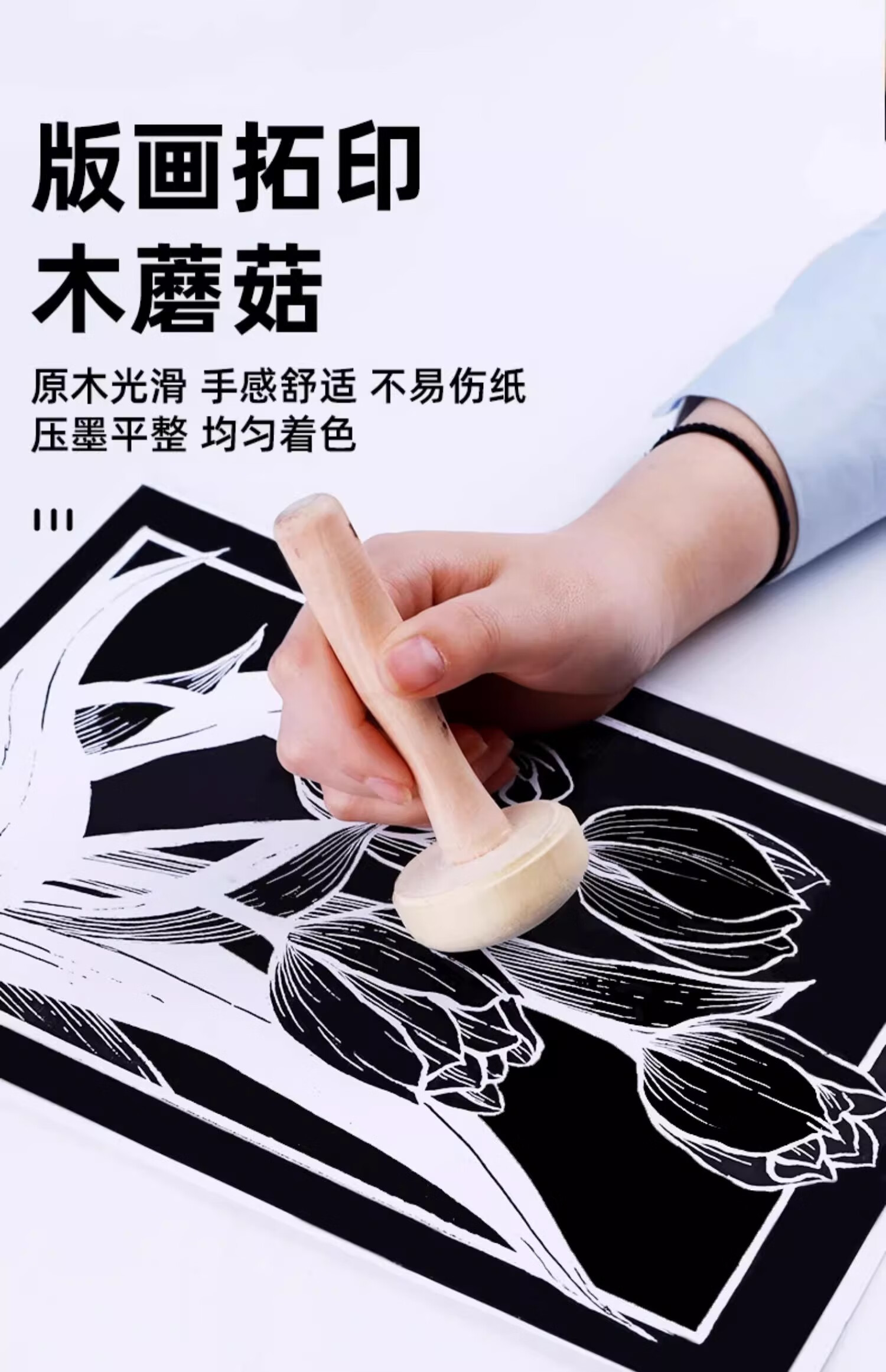 Shantou Lincun children's printmaking tools rubber roller rubber roller brush embossing rubber roller printmaking tools roller rubbing ink rubber roller wooden handle art rubber roller wooden mushroom Malian wood board painting black glue roller 10cm wooden mushroom Malian + ink black