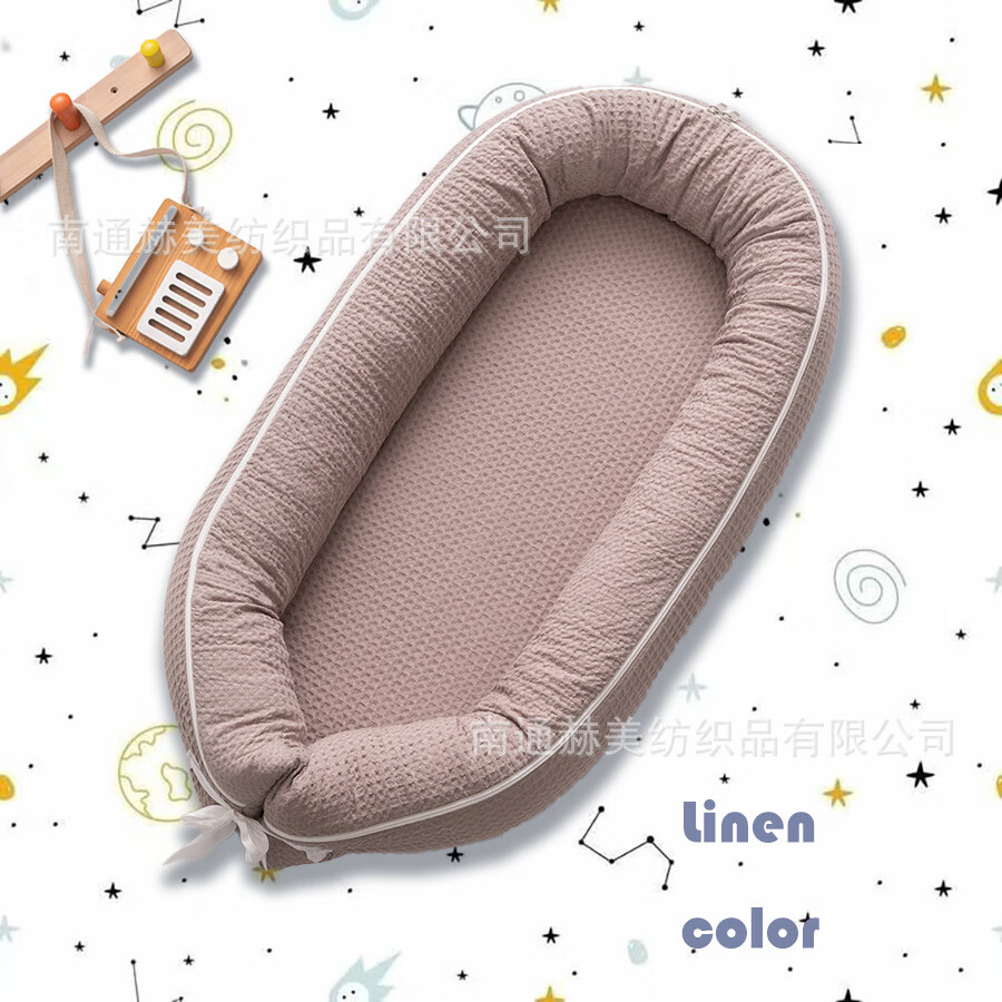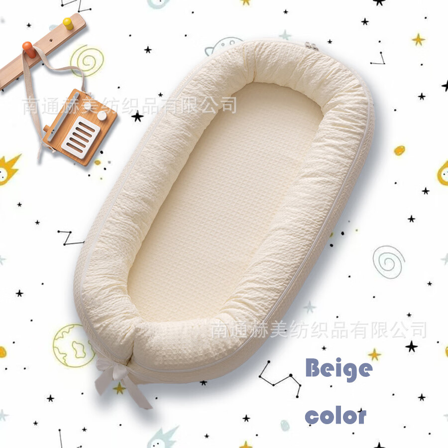 Waffle all-in-one portable bed-in-bed newborn baby nest toddler travel bed modern crib beige solid color waffle
