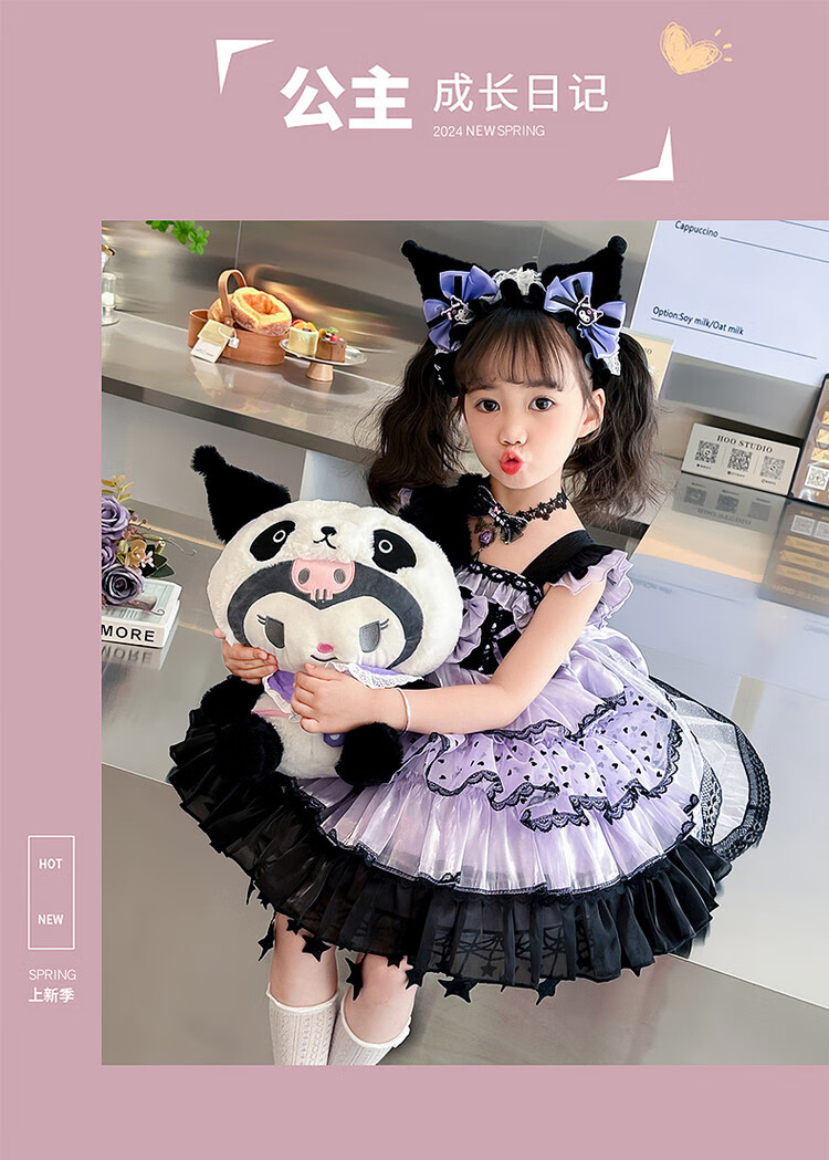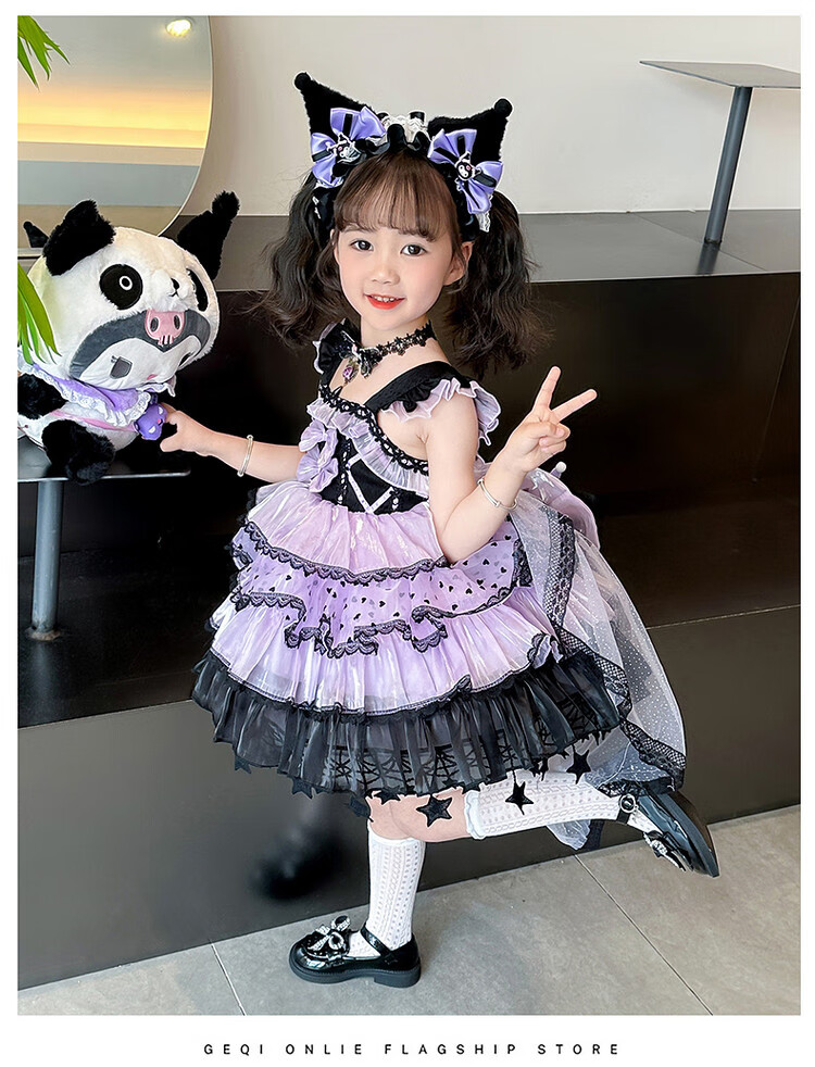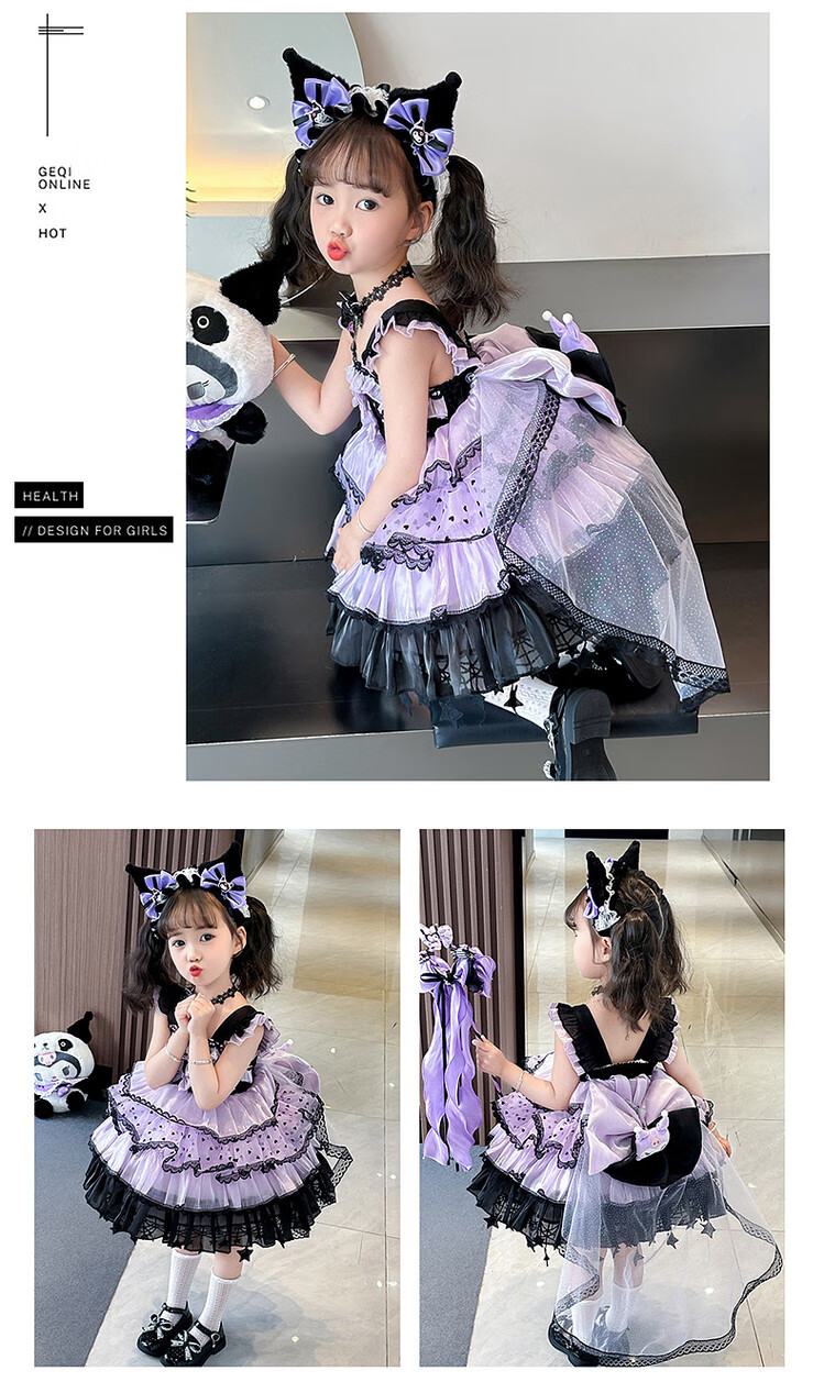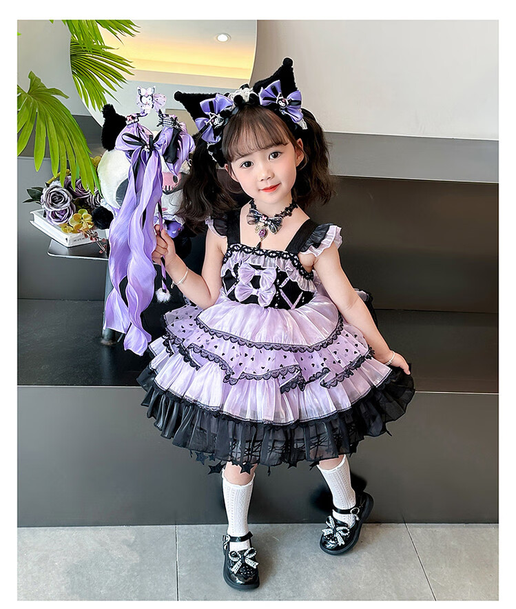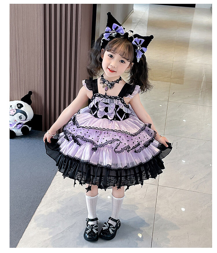 Kuromi Princess Dress Girls Summer Lolita Children's Dress Baby Girl Birthday Dress Children's Day Performance Costume Skirt 150 cm
