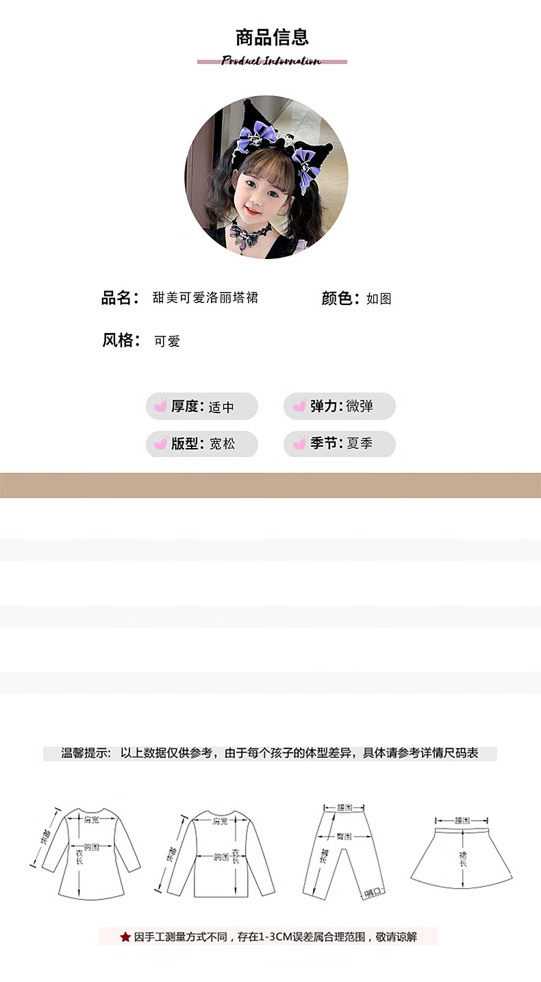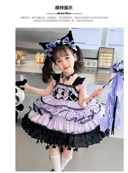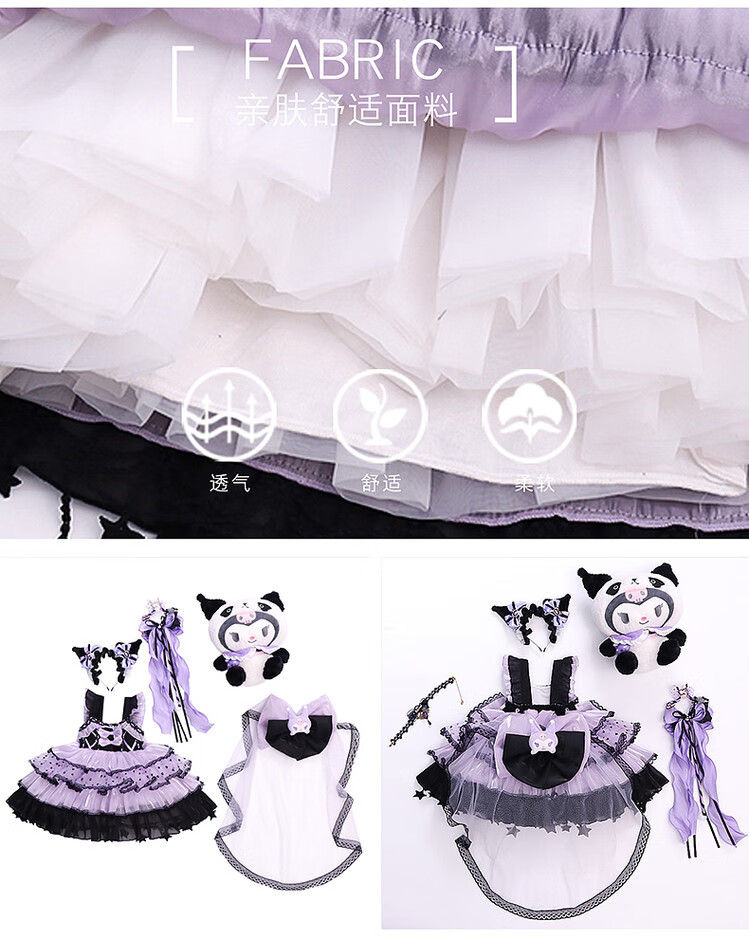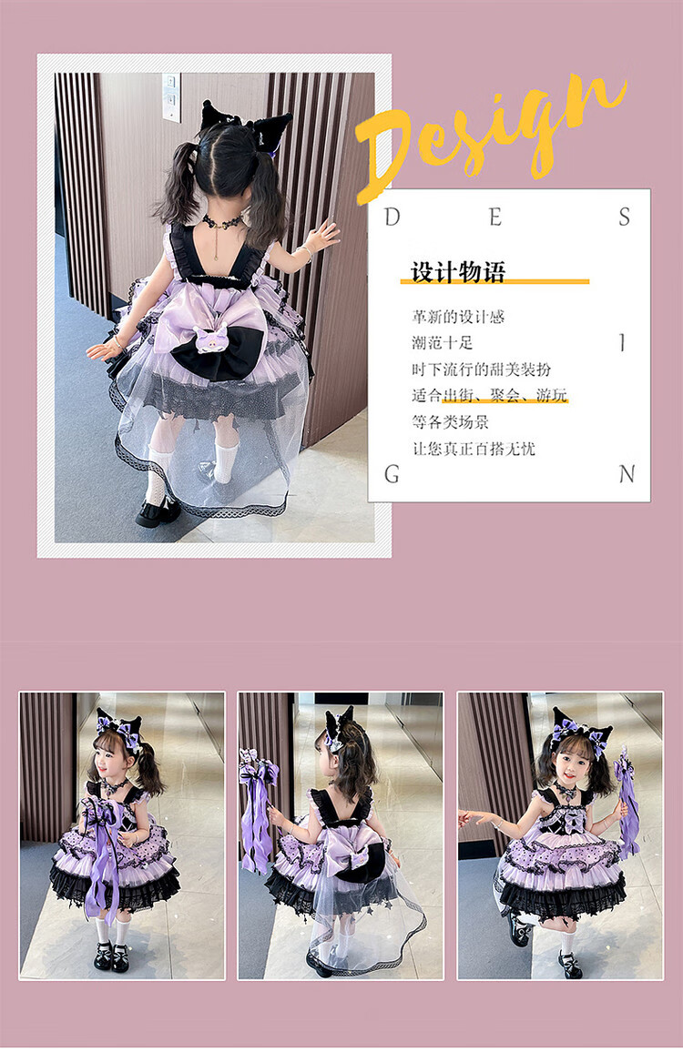 Kuromi Princess Dress Girls Summer Lolita Children's Dress Baby Girl Birthday Dress Children's Day Performance Costume Skirt 150 cm