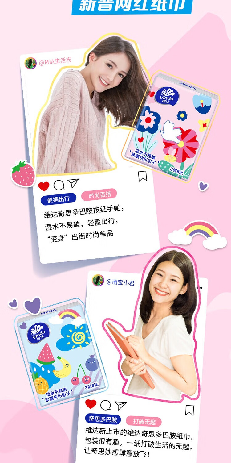 Vinda handkerchief paper 3 layers unscented facial tissue table paper toilet paper household carry-on portable small pack tissue wholesale 3 layers 8 sheets * 30 packs