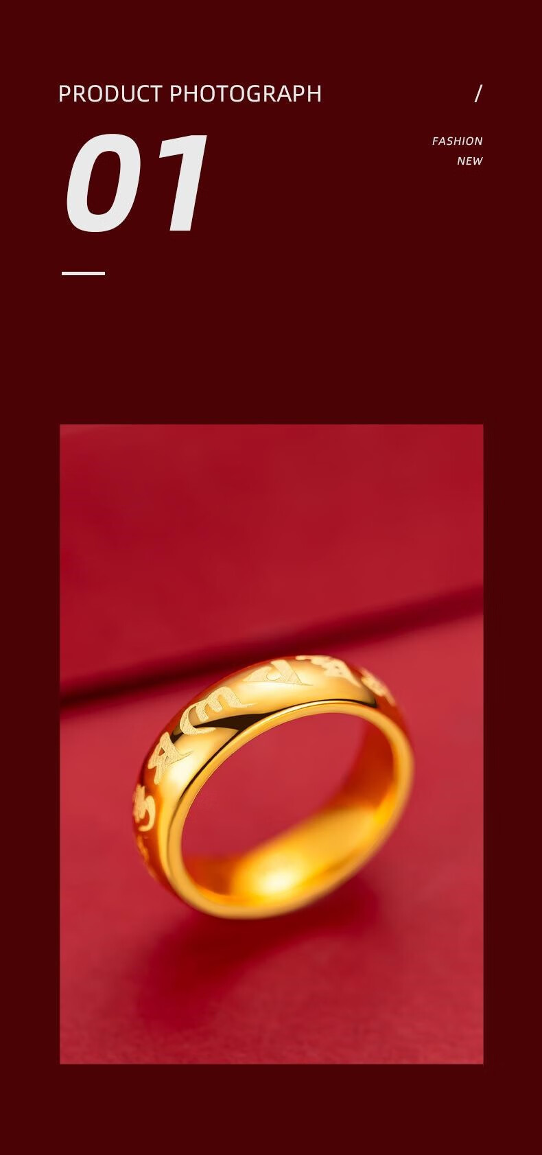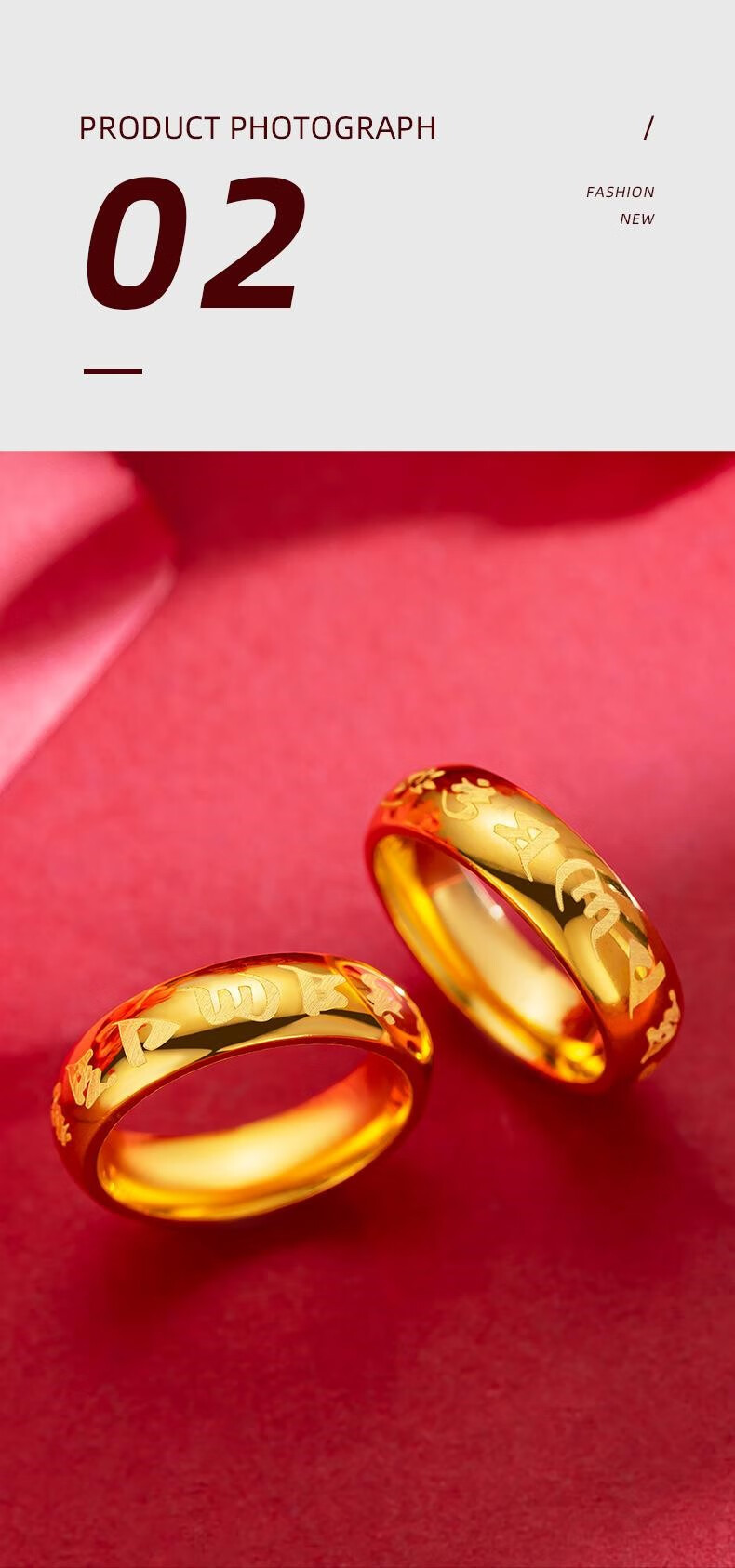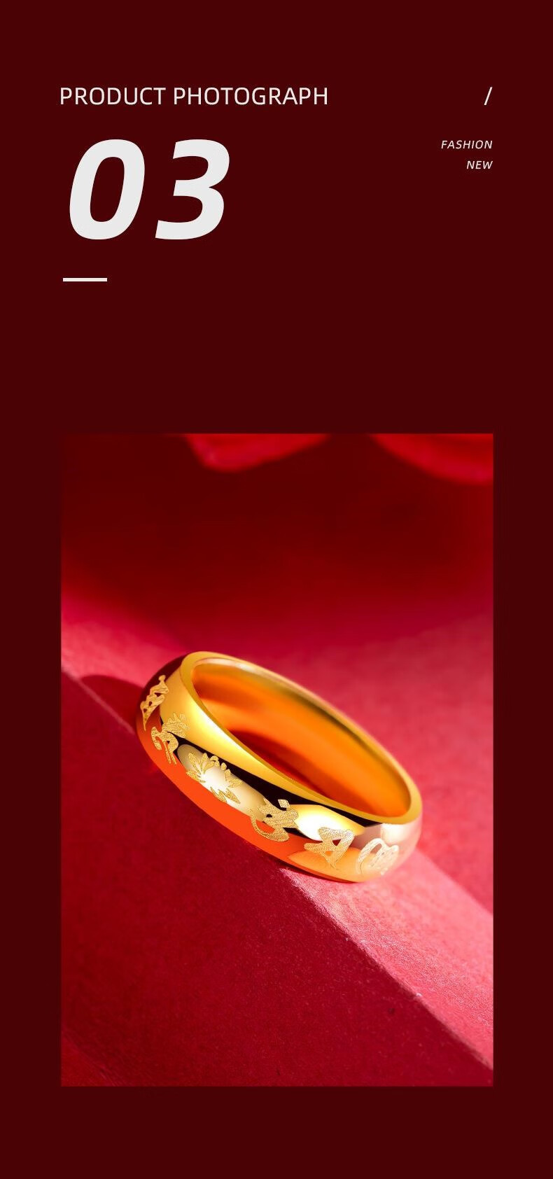 Pupan Lao Phoenix 999 Bengal red gold-plated six-character mantra ring for men and women couples ring sand gold glossy six 8# six-character mantra ring Lao Fengxiang quality