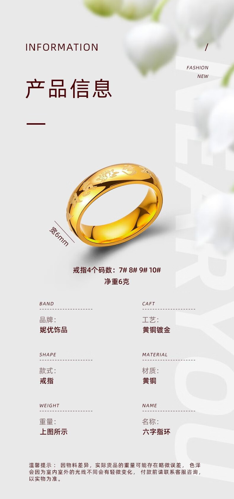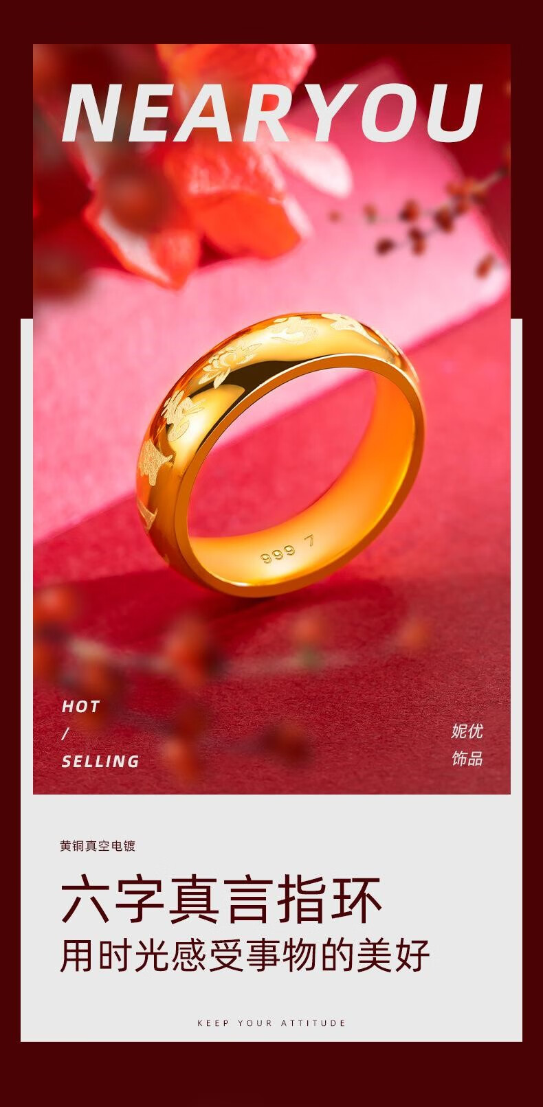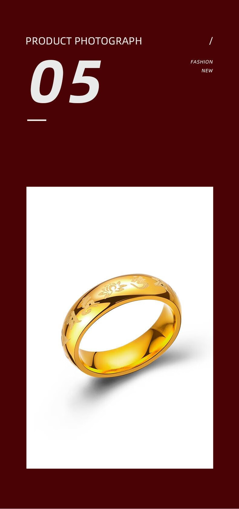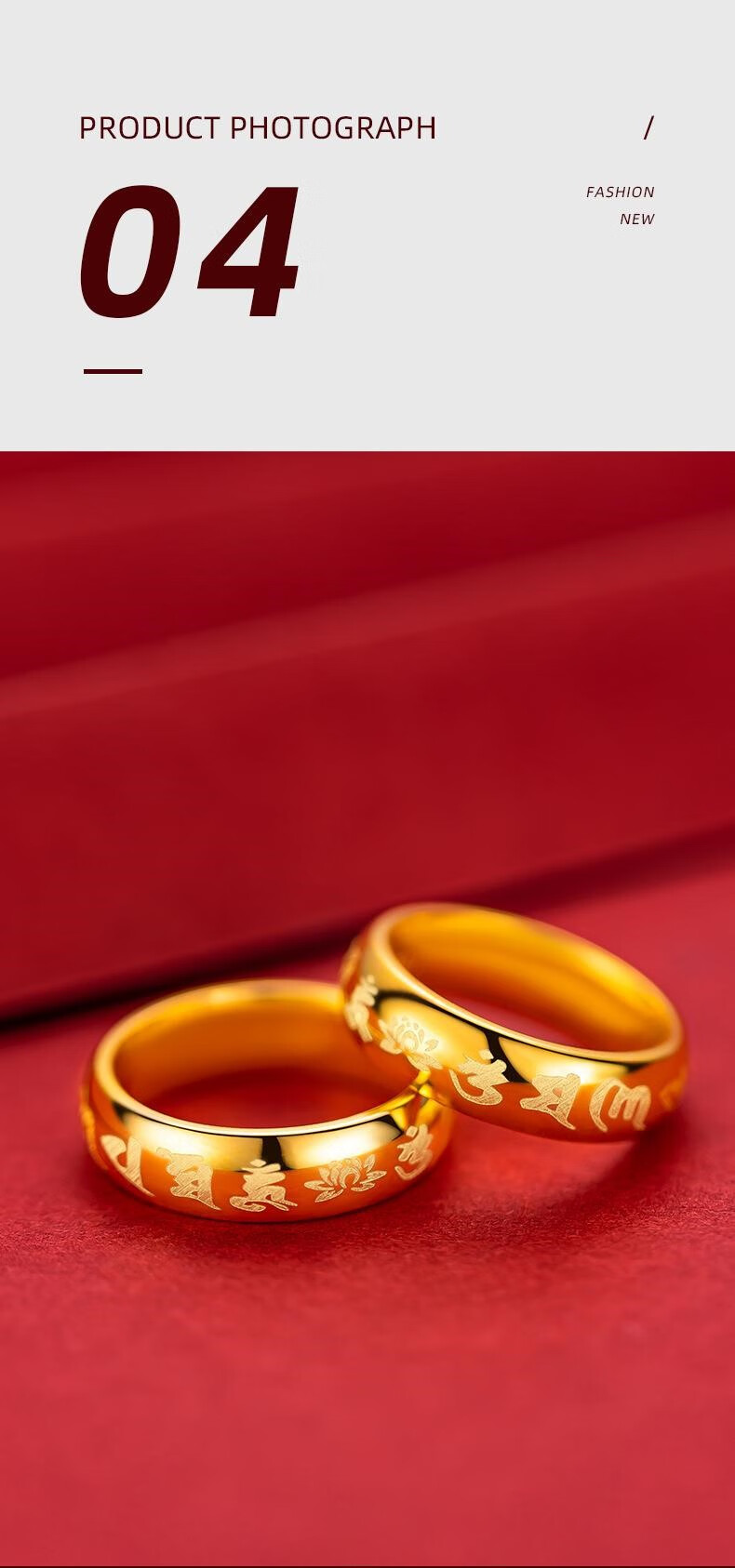 Pupan Lao Phoenix 999 Bengal red gold-plated six-character mantra ring for men and women couples ring sand gold glossy six 8# six-character mantra ring Lao Fengxiang quality
