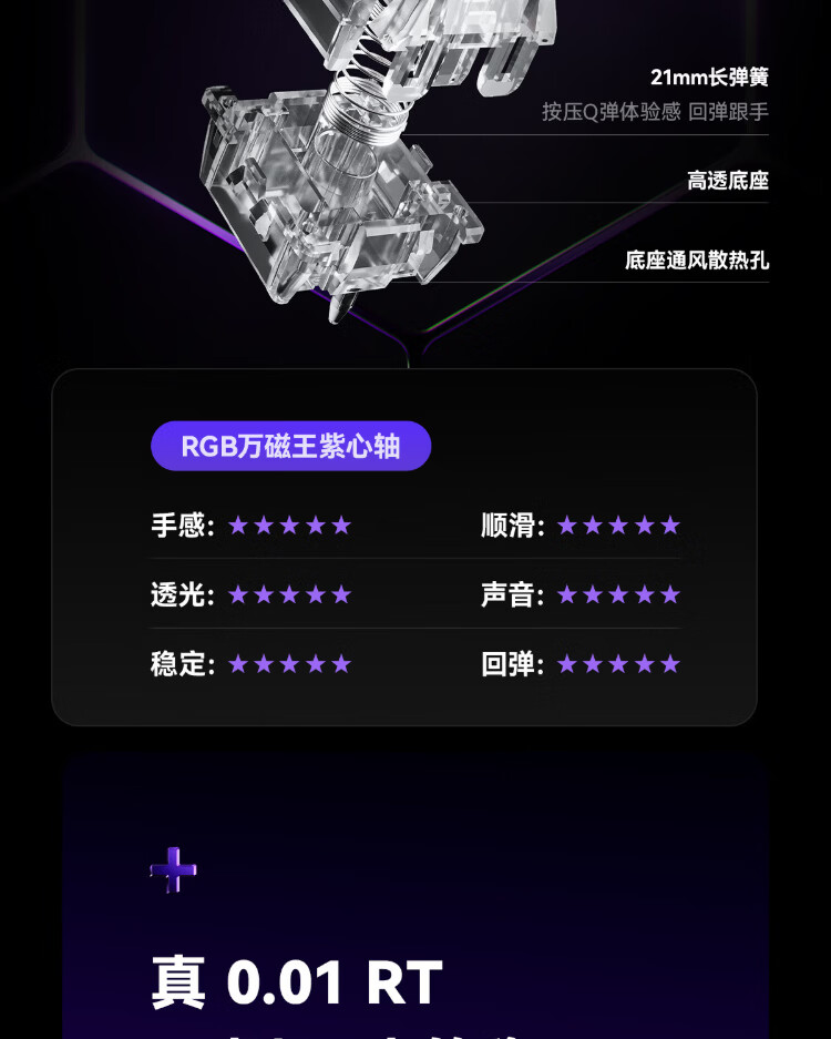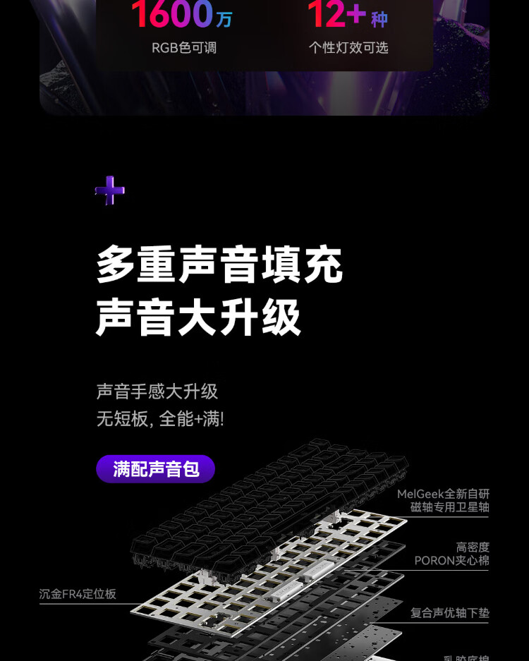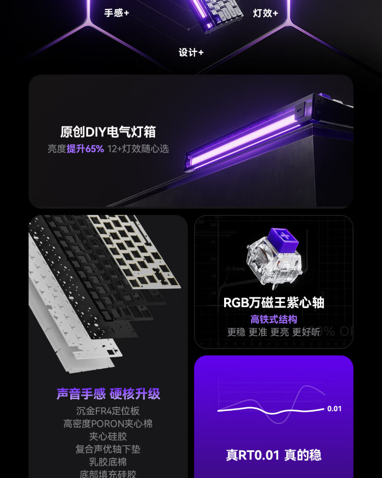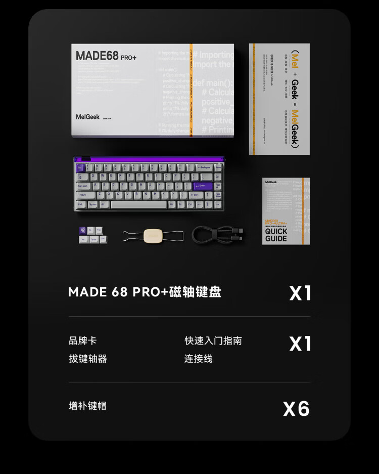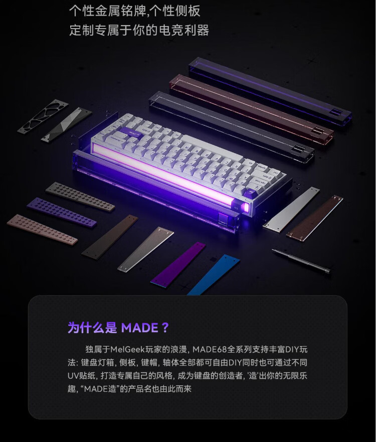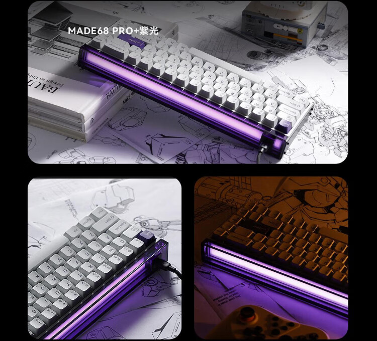 MelGeek Christmas gift made68pro+ magnetic axis keyboard Little Bee TTC Magneto axis RT0.01 e-sports game customized mechanical fearless contract couple MADE68 PRO+ pink light purple spindle wired MelGeek 68 keys
