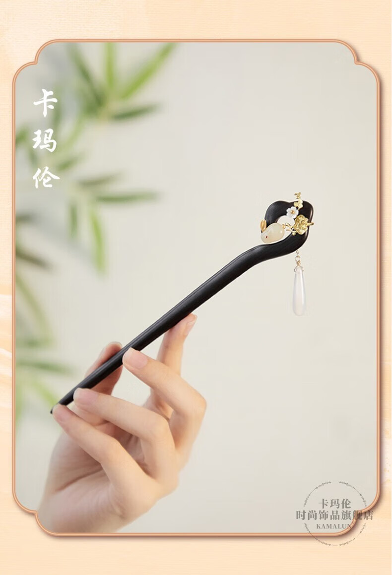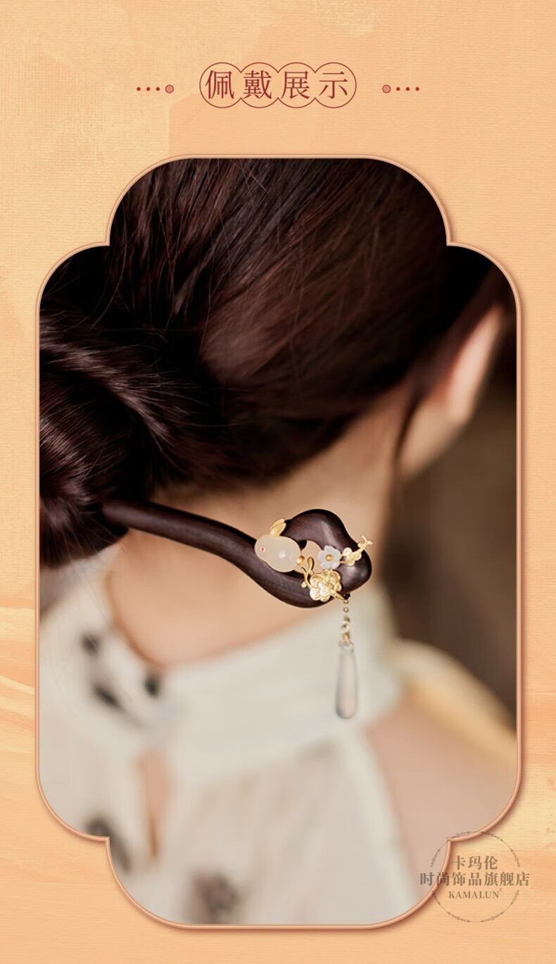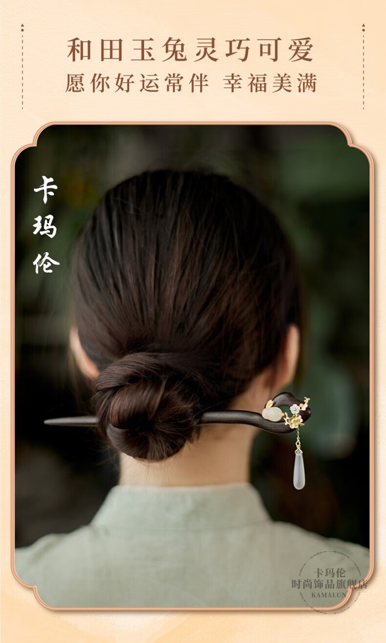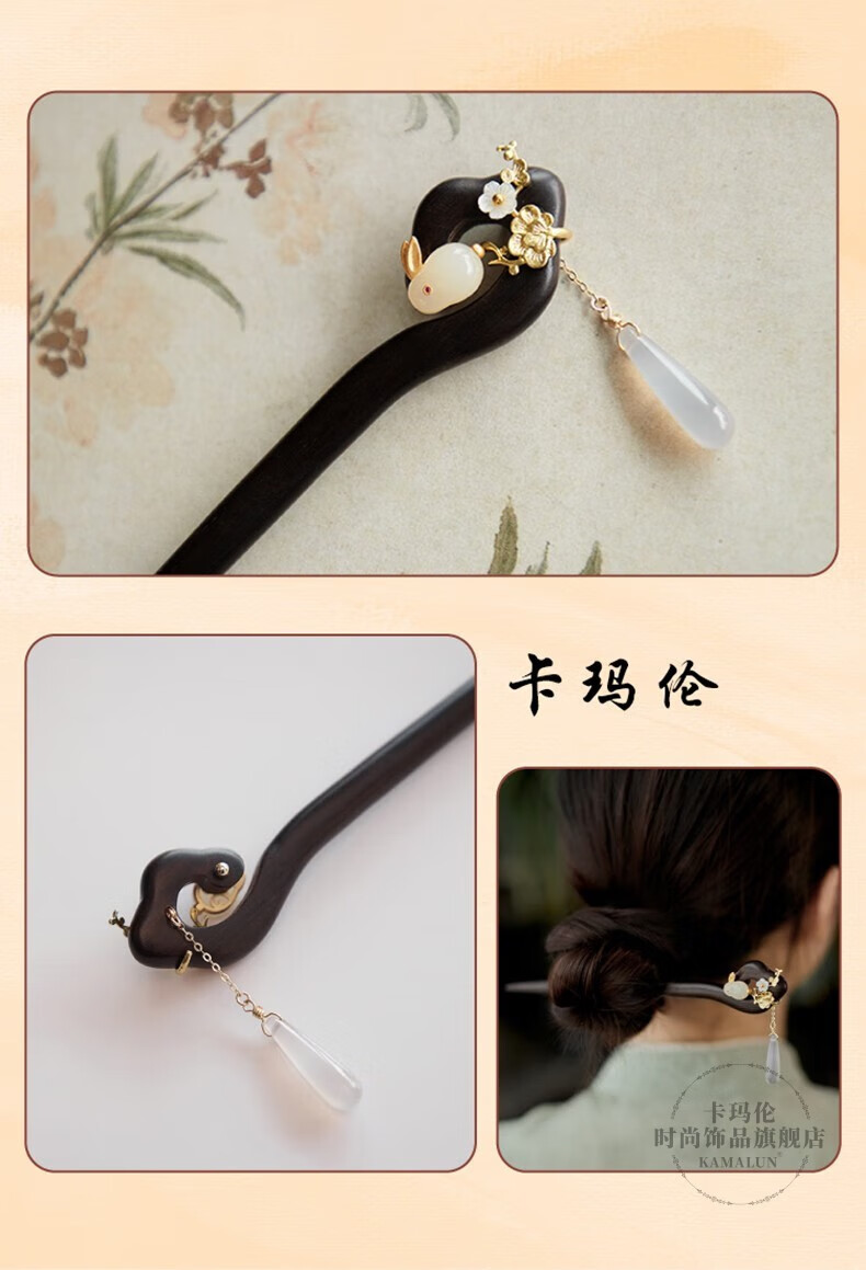 Lao Phoenix 999 Sandalwood Hairpin, Ancient Style Jade Rabbit Wooden Hairpin, Hanfu Headwear, New Chinese Style Hairpin for Girlfriend’s Birthday, Yatu Hairpin + Brand Gift Box