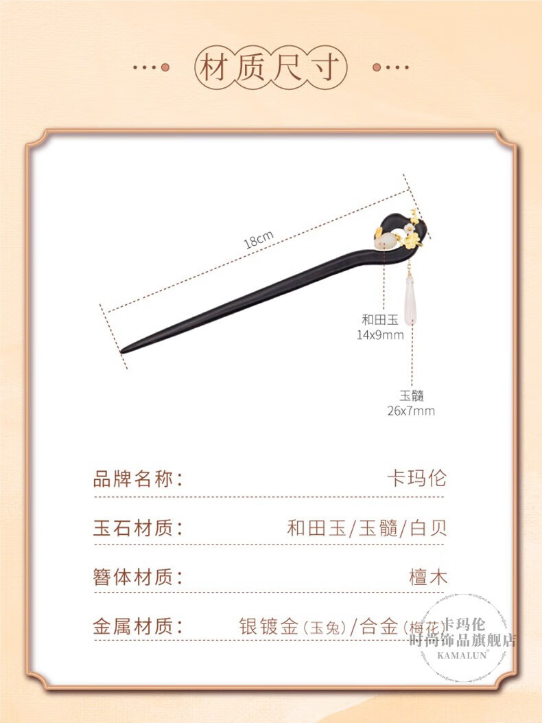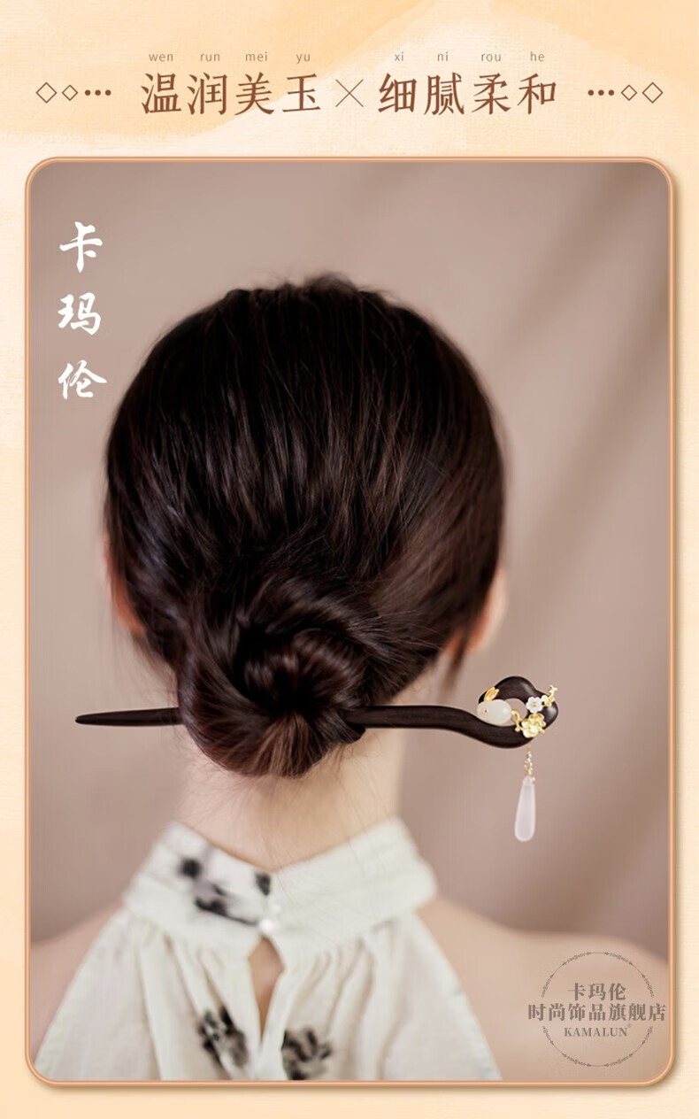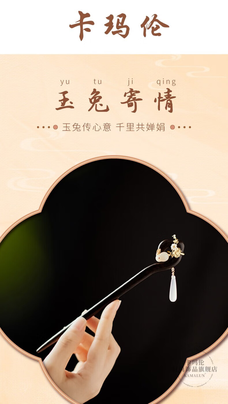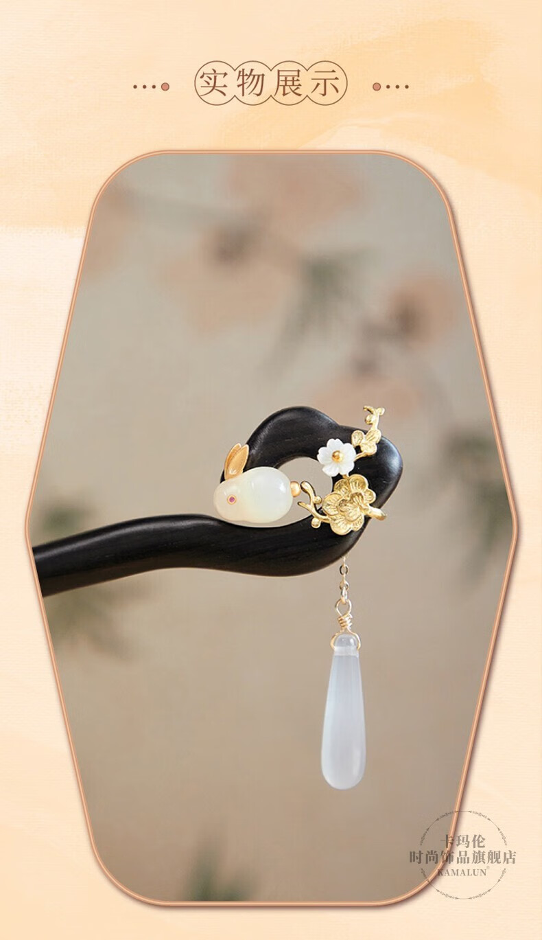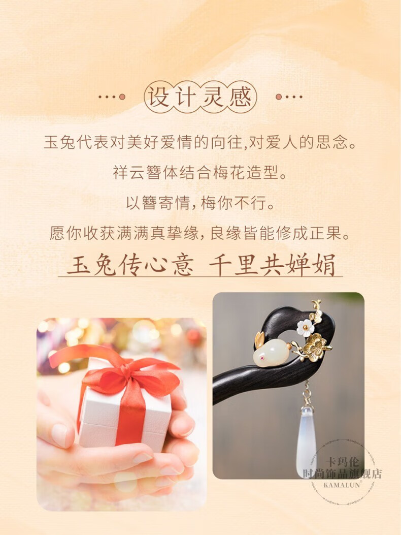 Lao Phoenix 999 Sandalwood Hairpin, Ancient Style Jade Rabbit Wooden Hairpin, Hanfu Headwear, New Chinese Style Hairpin for Girlfriend’s Birthday, Yatu Hairpin + Brand Gift Box