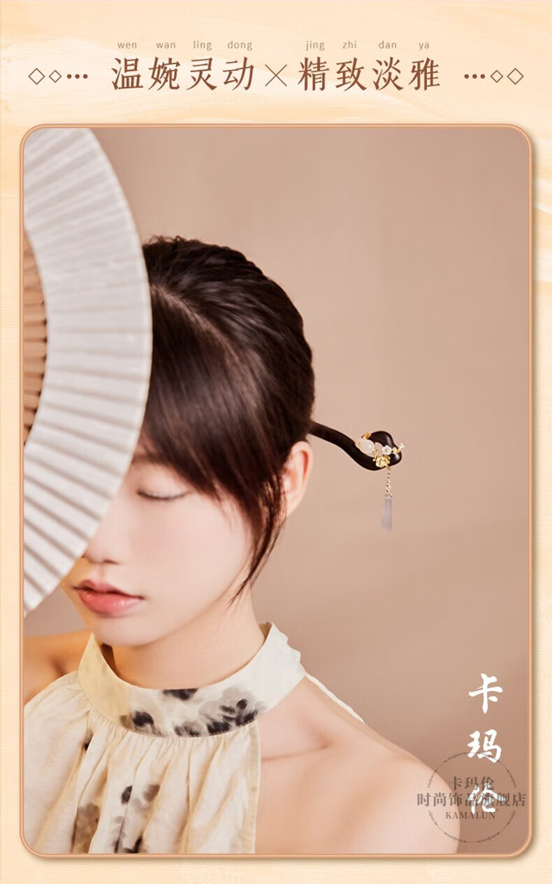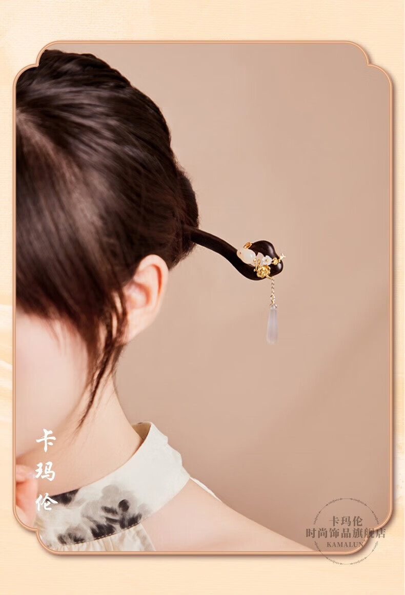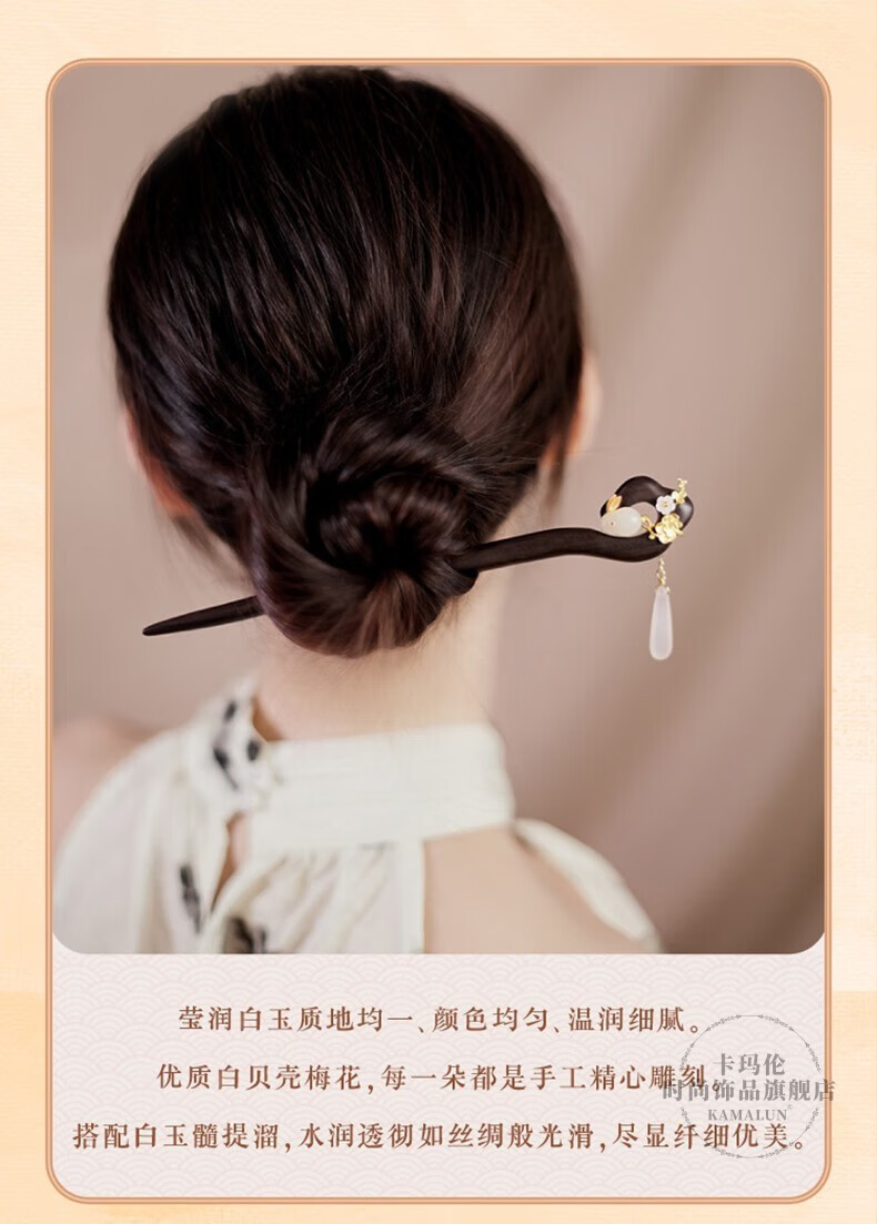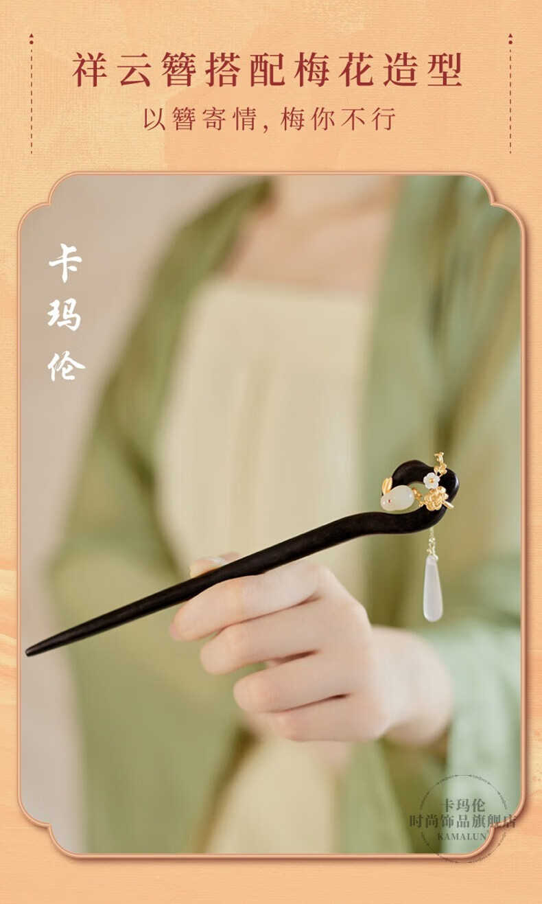 Lao Phoenix 999 Sandalwood Hairpin, Ancient Style Jade Rabbit Wooden Hairpin, Hanfu Headwear, New Chinese Style Hairpin for Girlfriend’s Birthday, Yatu Hairpin + Brand Gift Box