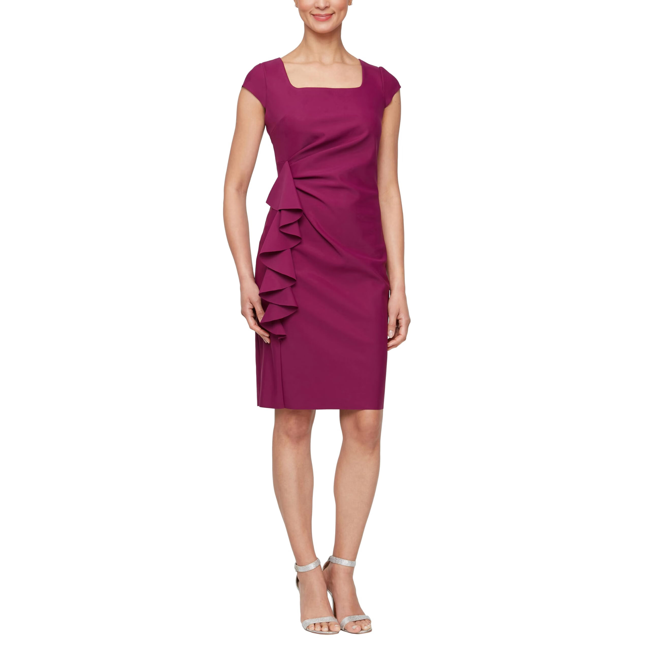 Alex Evenings Slim Cocktail Dress Square Neck Wedding Guest Indigo Square Neck 10