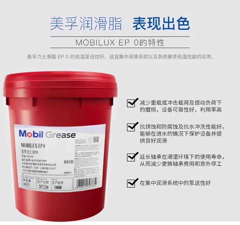 Mobilix grease butter EP0123 No. XHP222 bearing universal lithium-based grease high temperature wear-resistant 16kg Mobilix EP0 No. 16KG semi-fluid