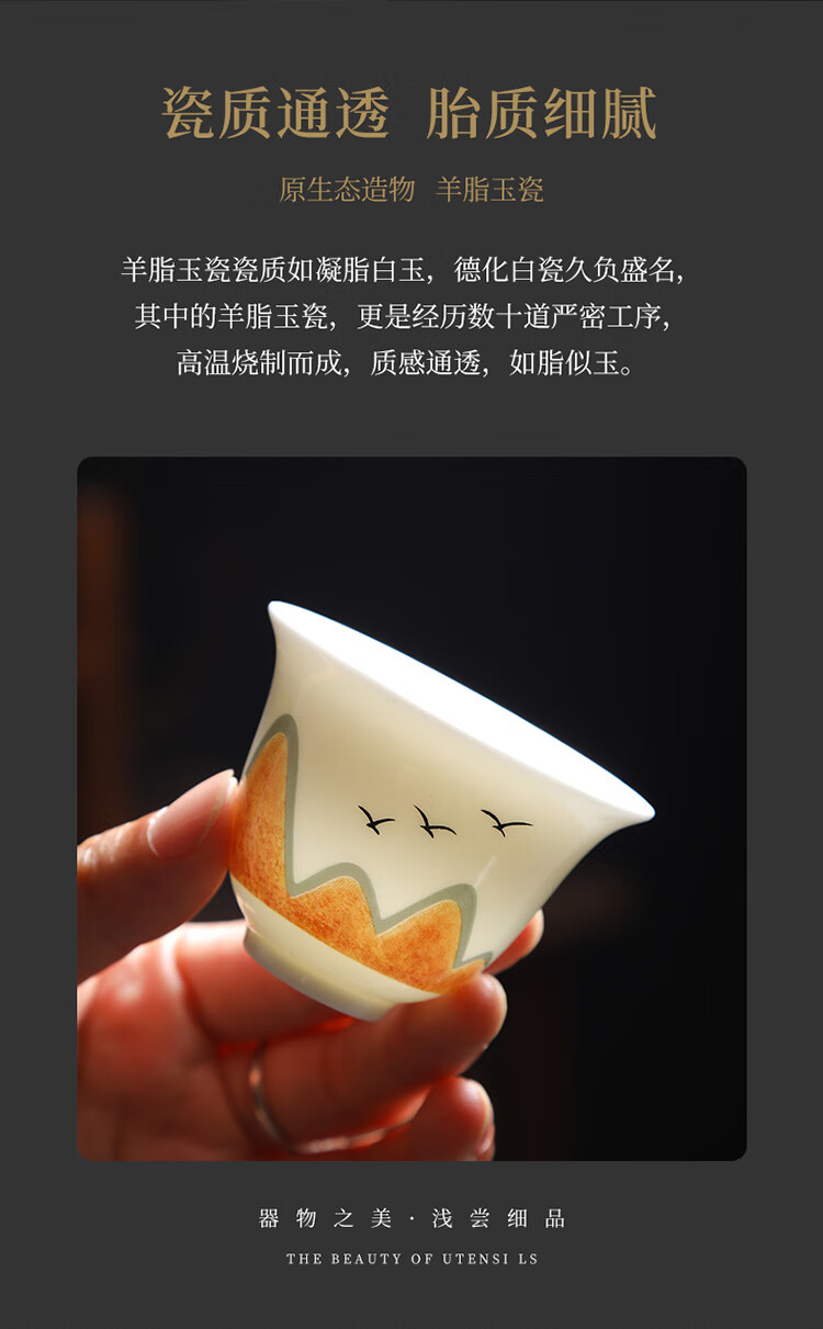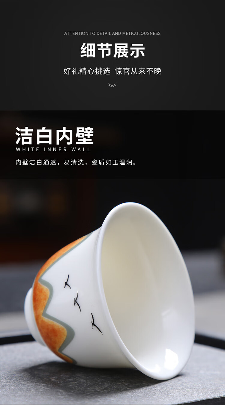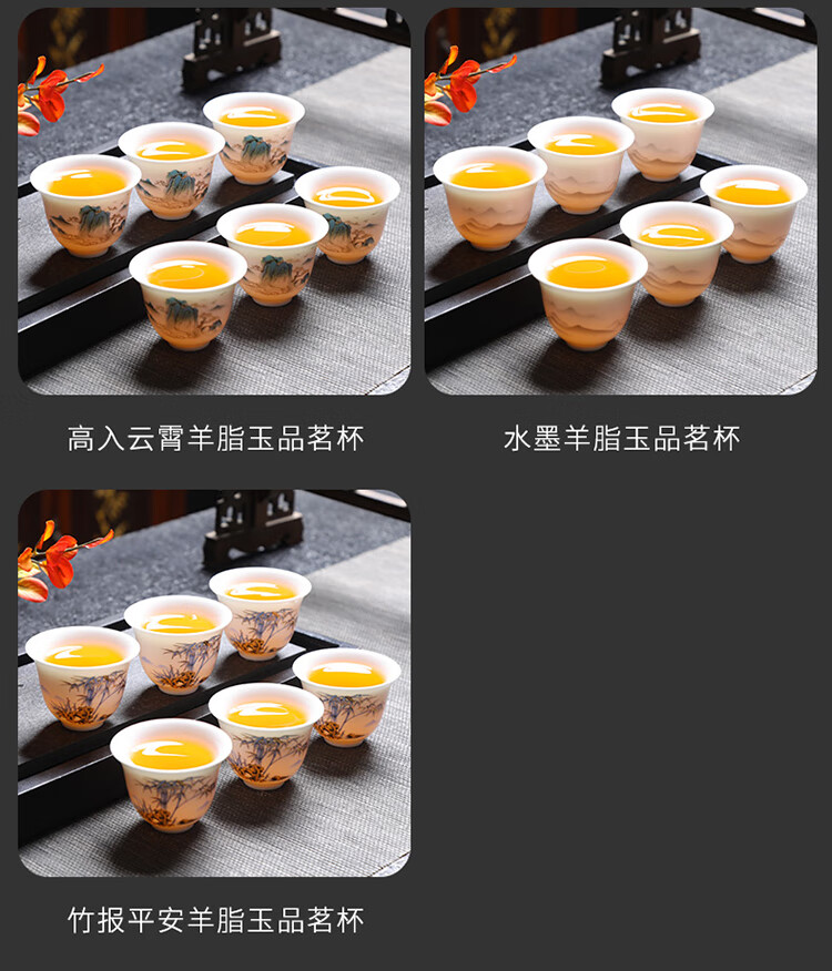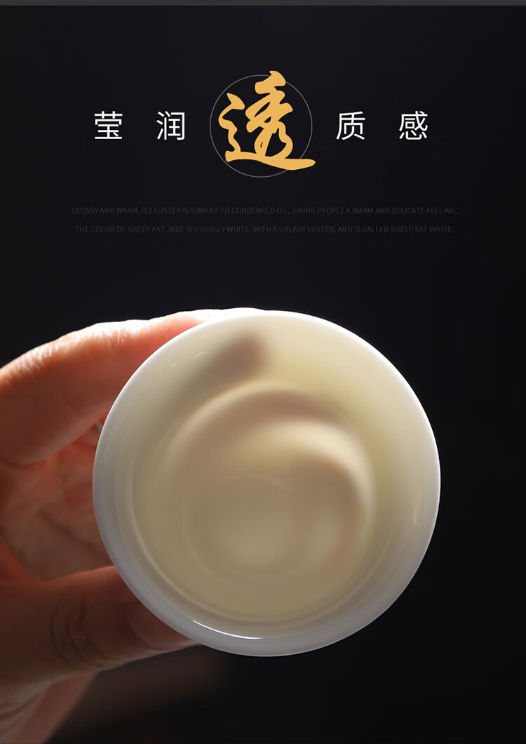Tea cup ceramic household kung fu tea set tea drinking cup master personal mutton fat jade white porcelain small cup single tea cup ink mutton fat jade 6 pieces