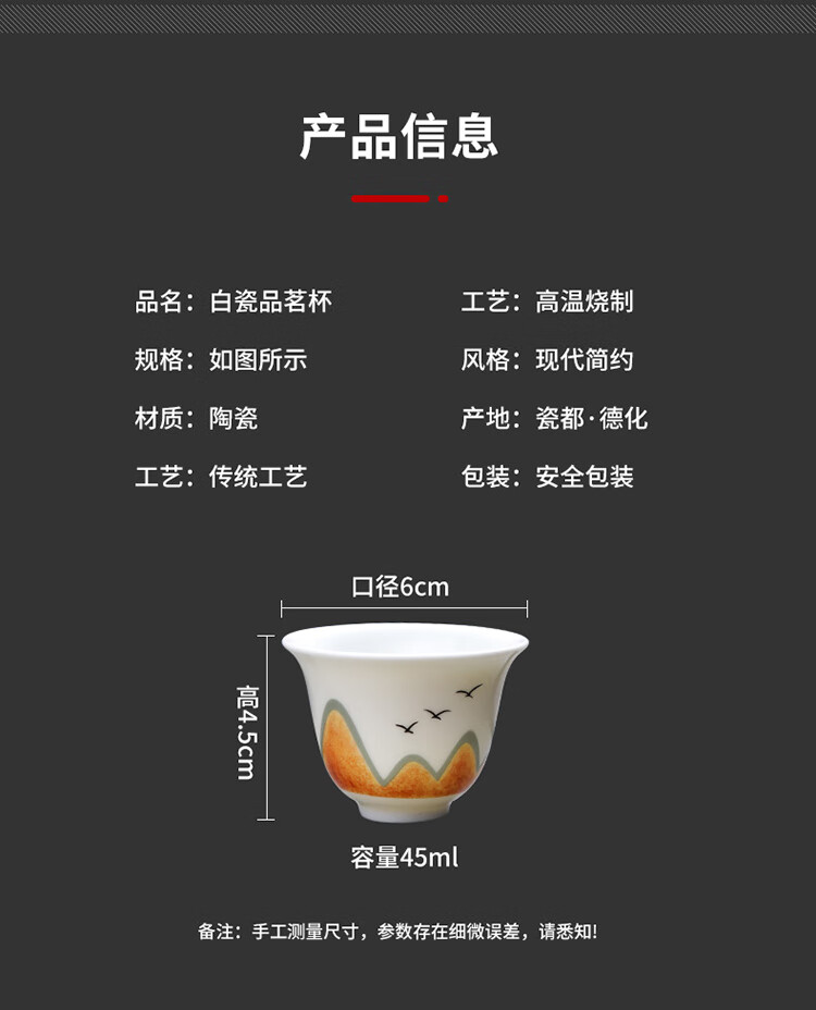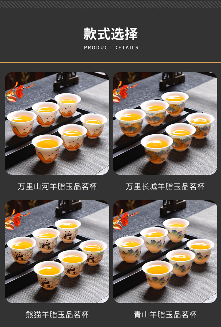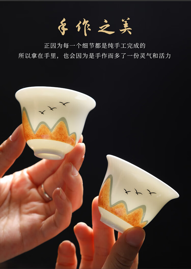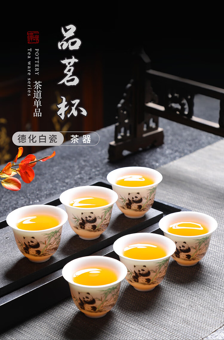 Tea cup ceramic household kung fu tea set tea drinking cup master personal mutton fat jade white porcelain small cup single tea cup ink mutton fat jade 6 pieces