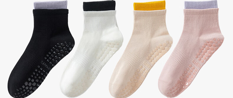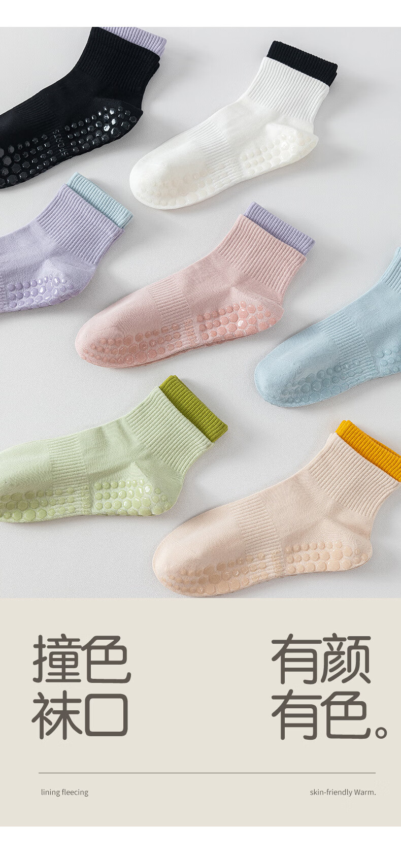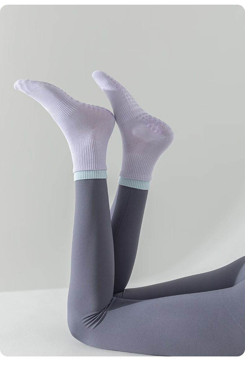 Yoga socks, women's mid-calf socks, double ribbed color-blocking stitching sports socks, non-slip training, fitness running, Pilates, 2 pairs, random mixed colors, one size fits all