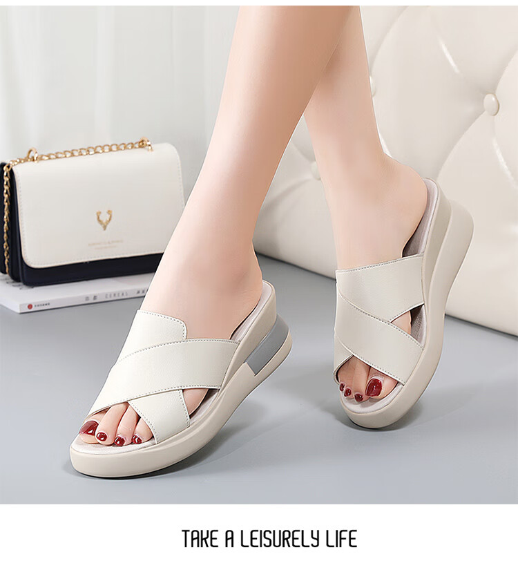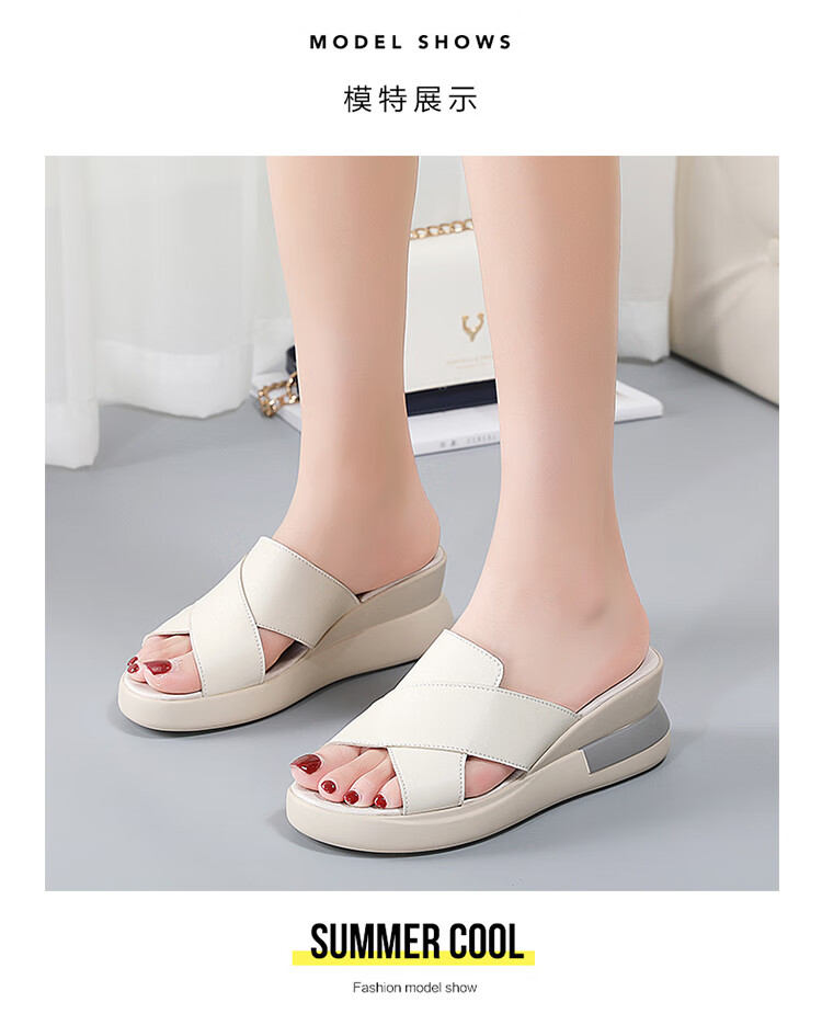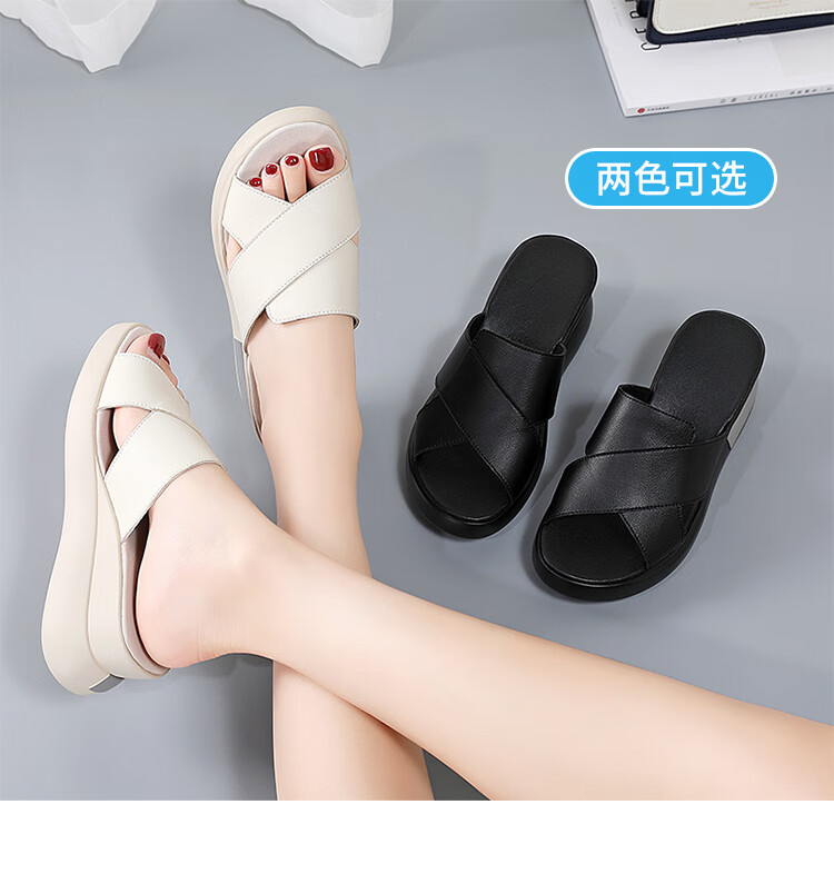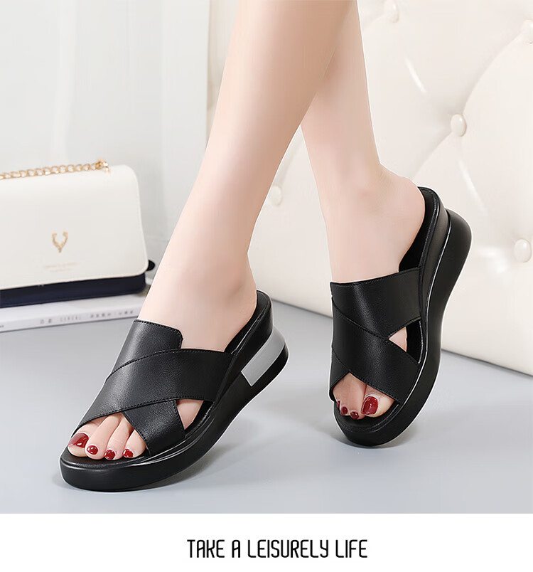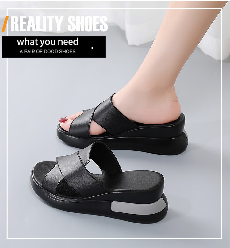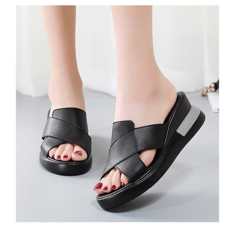 GEOX Manufacturer Women's Slippers Summer New Fashion Wear-Resistant Increased Thick-soled Wedge Sandals Women's Shoes Black VBXS20291 40