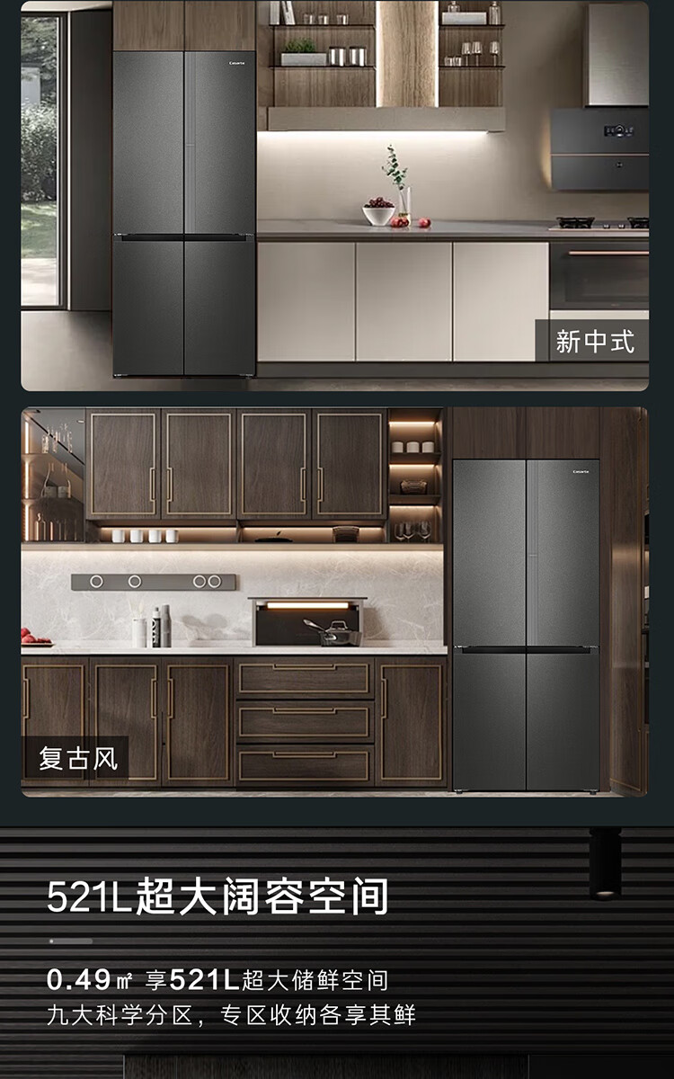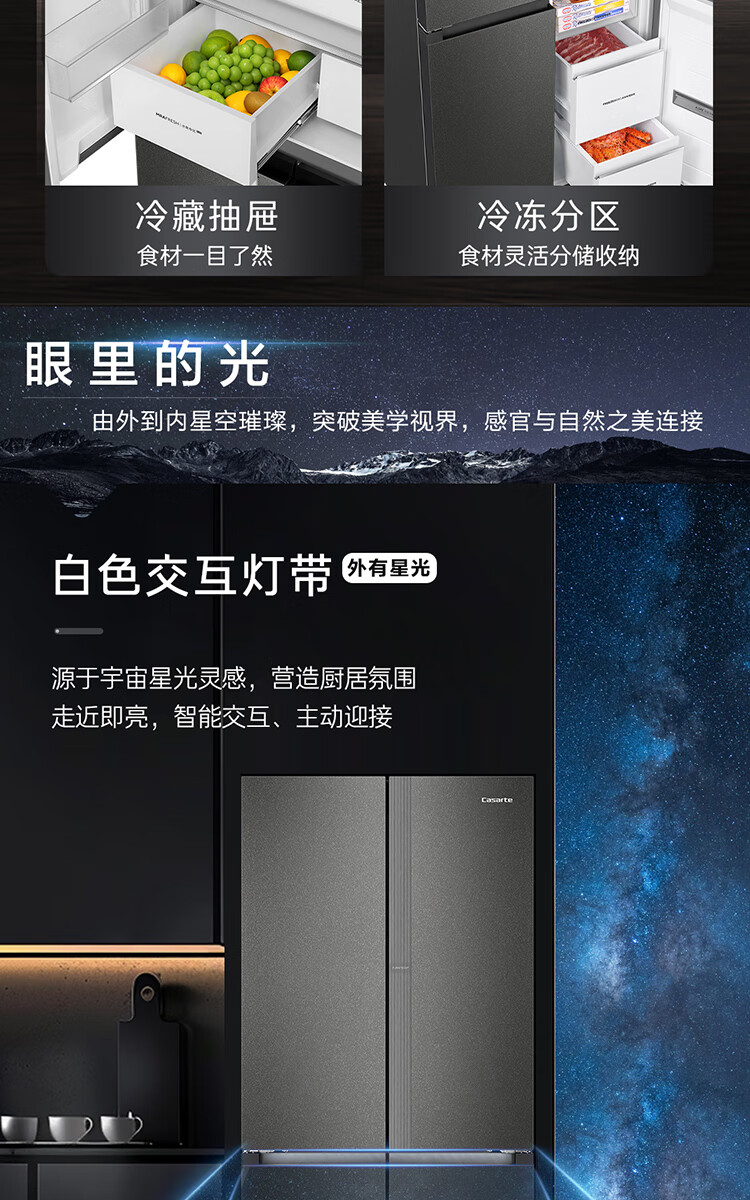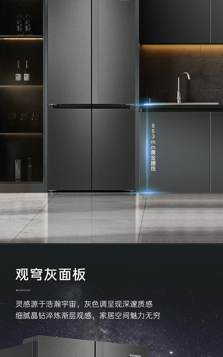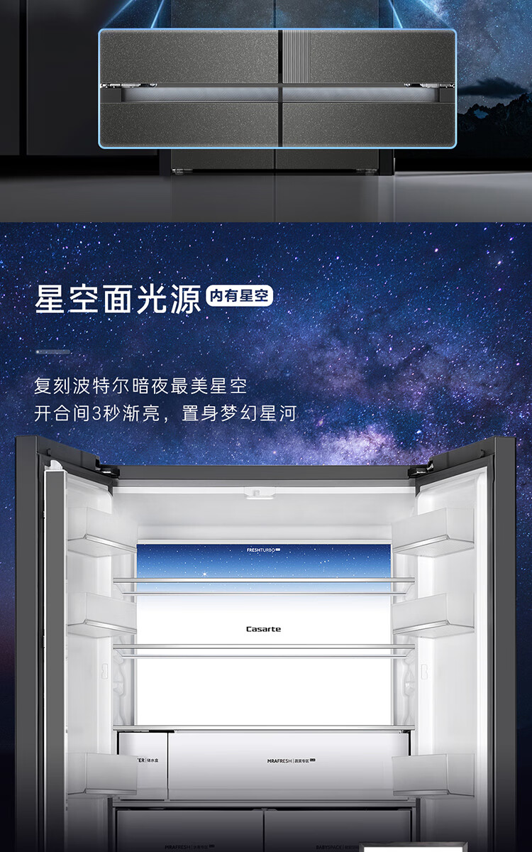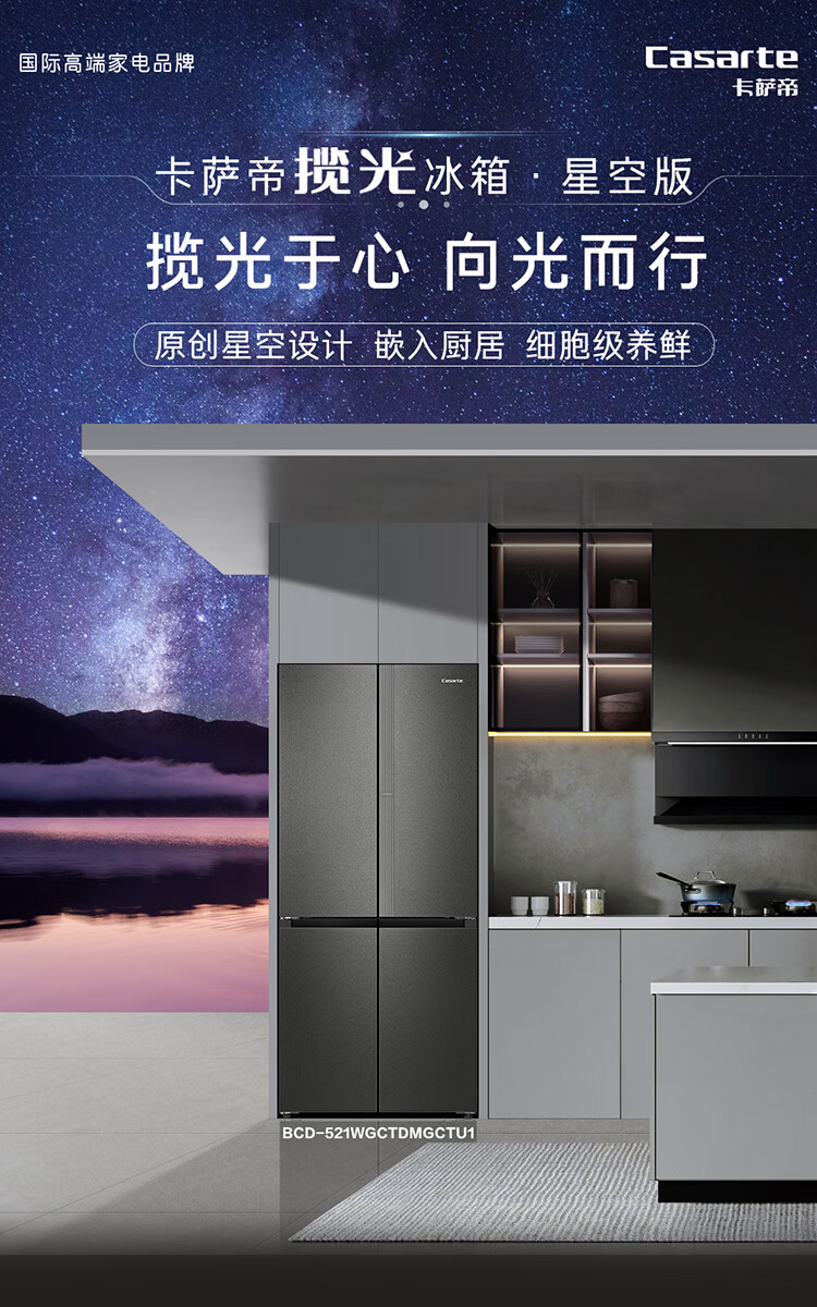 Casarte Languang refrigerator starry sky version 521 liters fully automatic ice making 594mm ultra-thin zero embedded dual system cross four-door