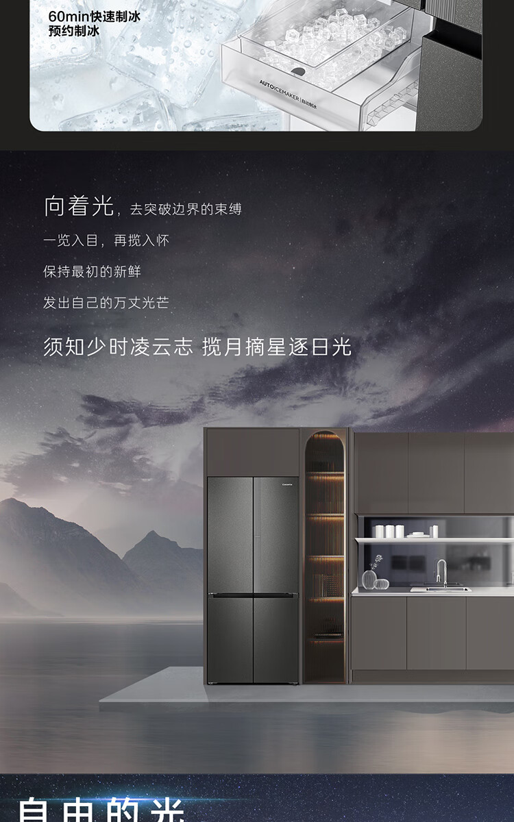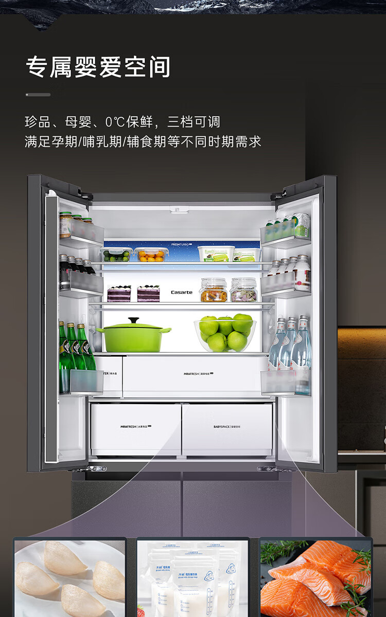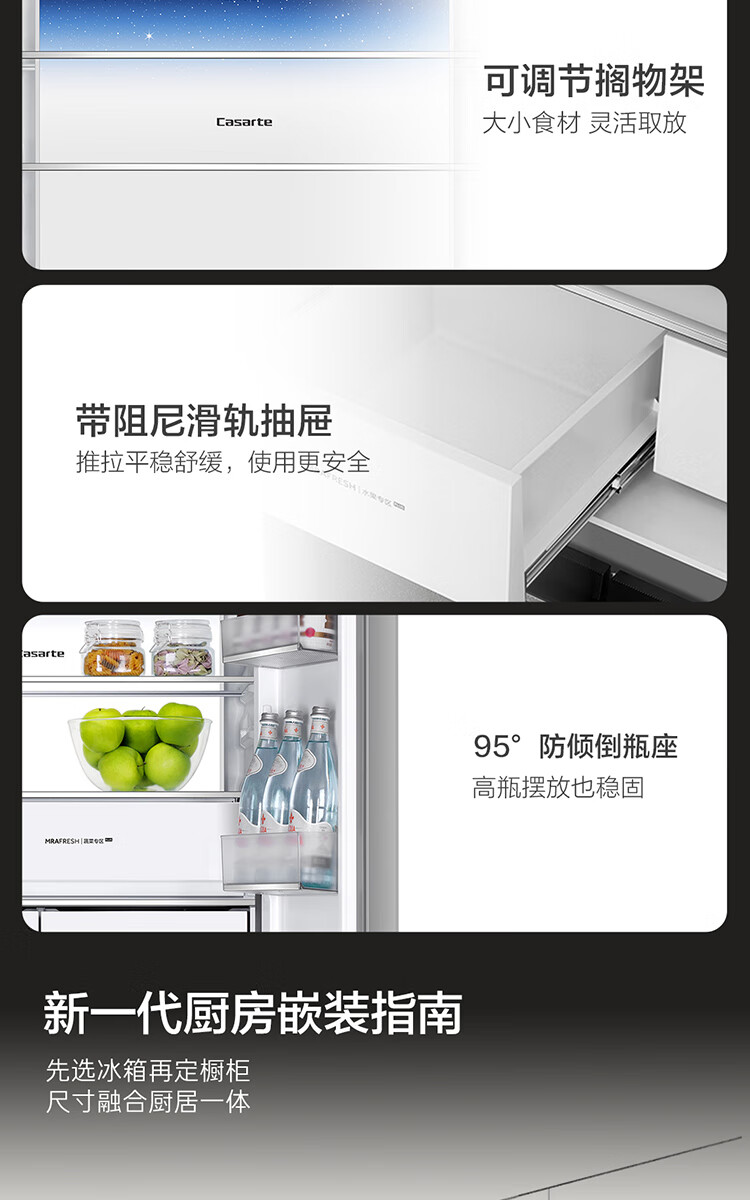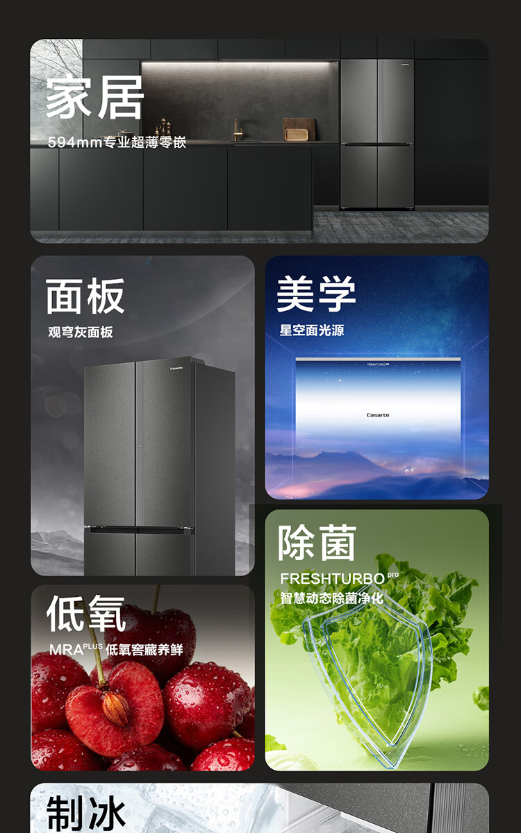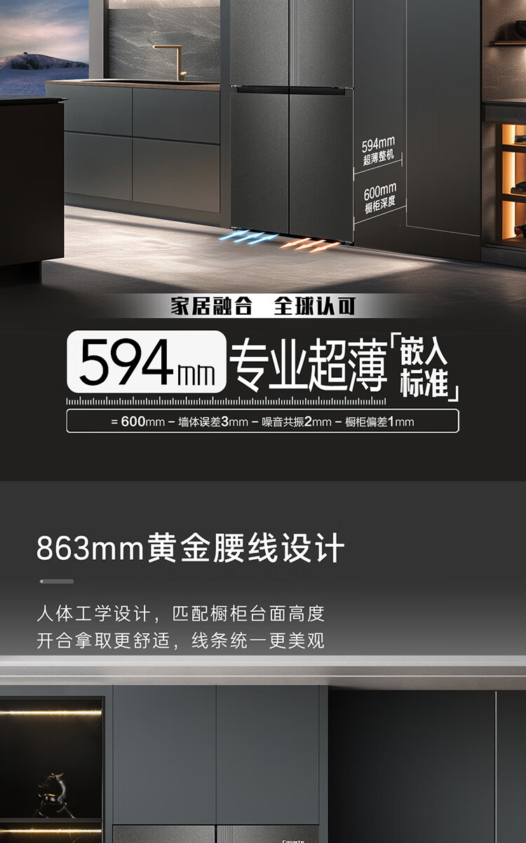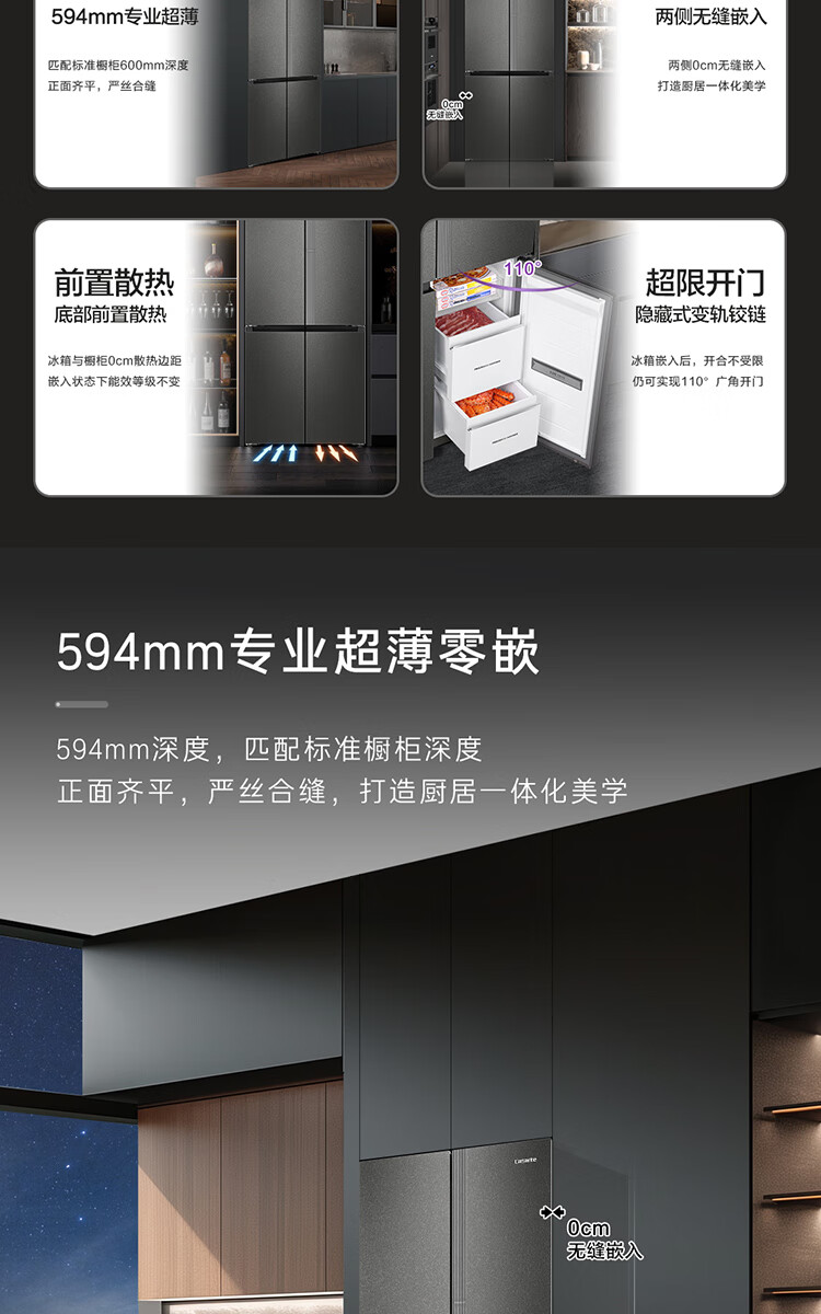 Casarte Languang refrigerator starry sky version 521 liters fully automatic ice making 594mm ultra-thin zero embedded dual system cross four-door