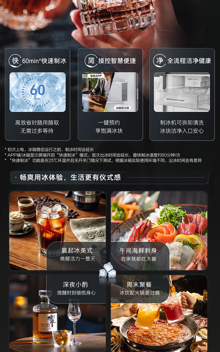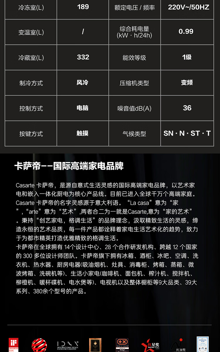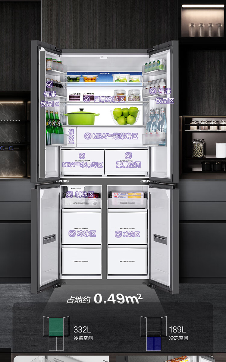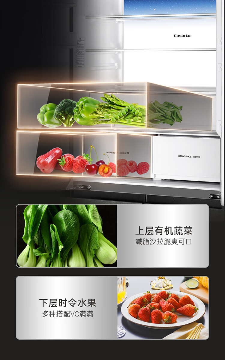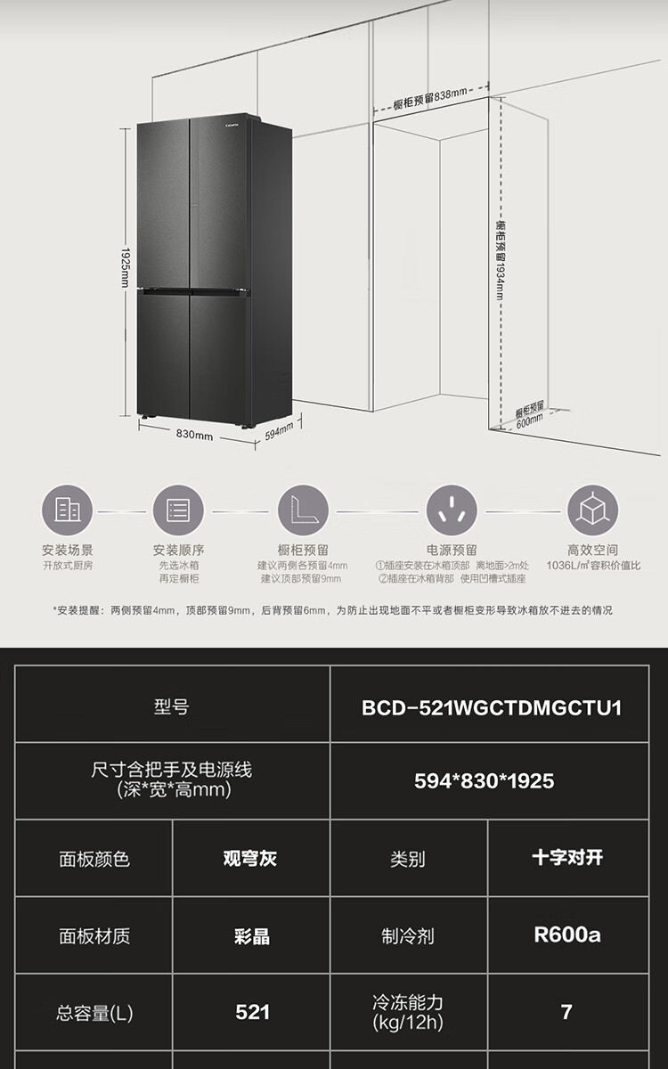 Casarte Languang refrigerator starry sky version 521 liters fully automatic ice making 594mm ultra-thin zero embedded dual system cross four-door