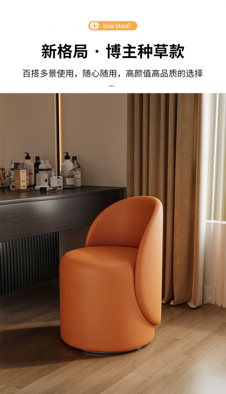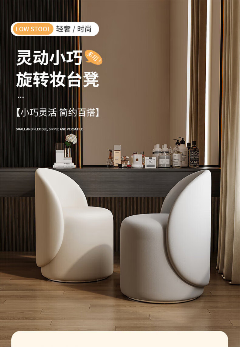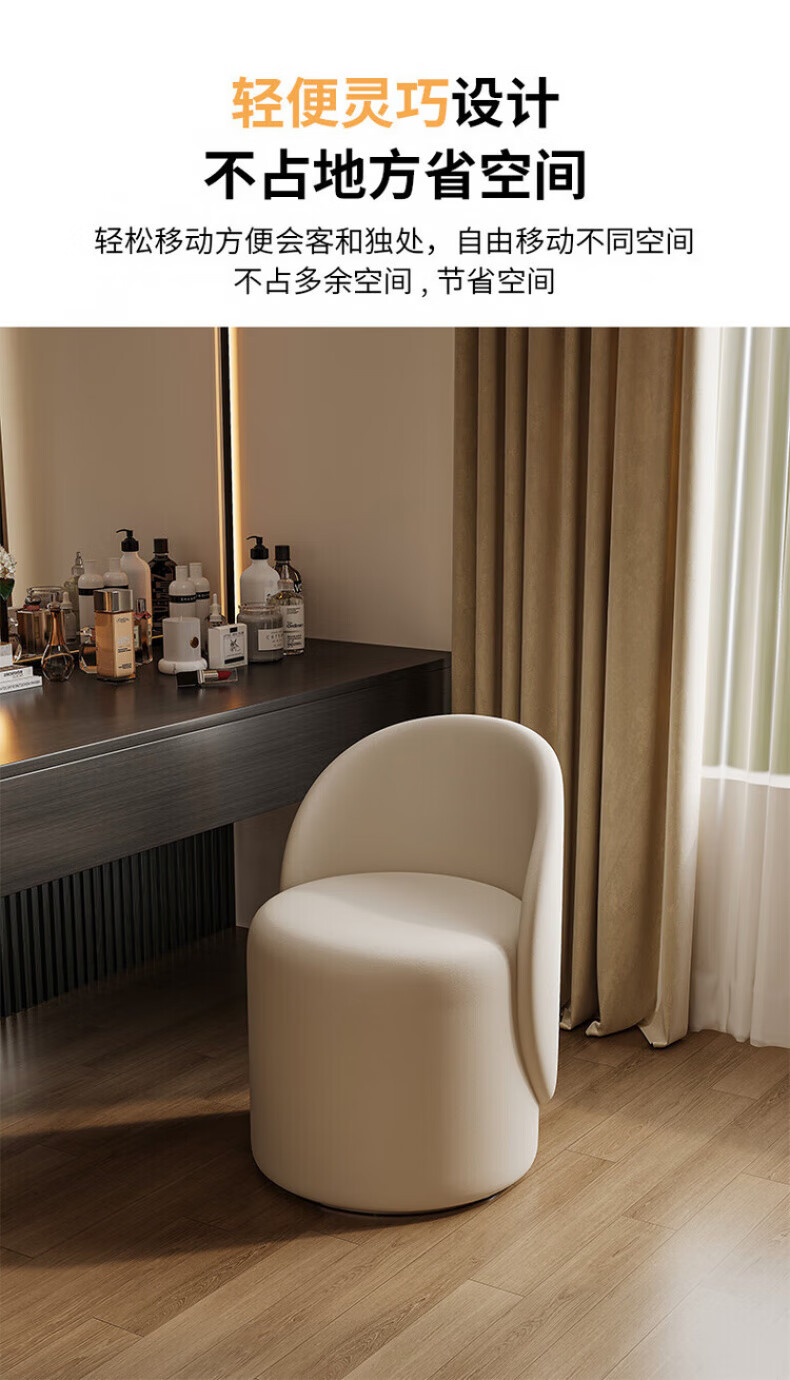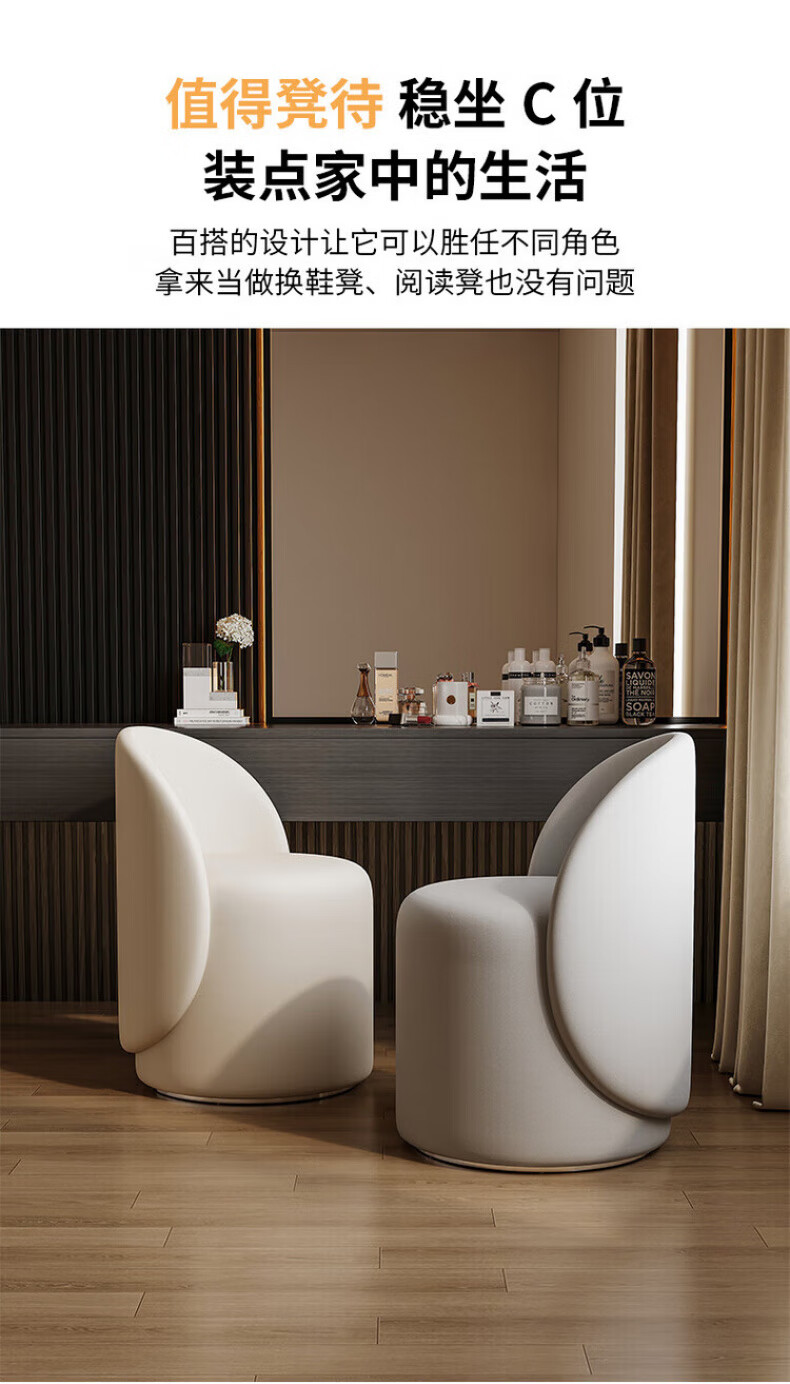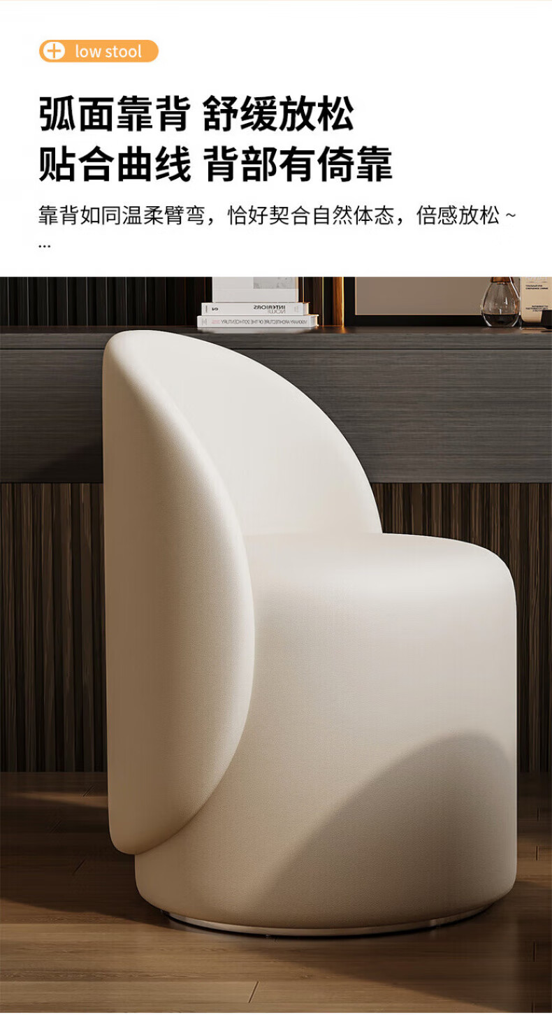 TRUHEIM German makeup stool light luxury home chair girls bedroom dressing table stool cloakroom rotating round stool high back model off-white (thick cat claw leather)