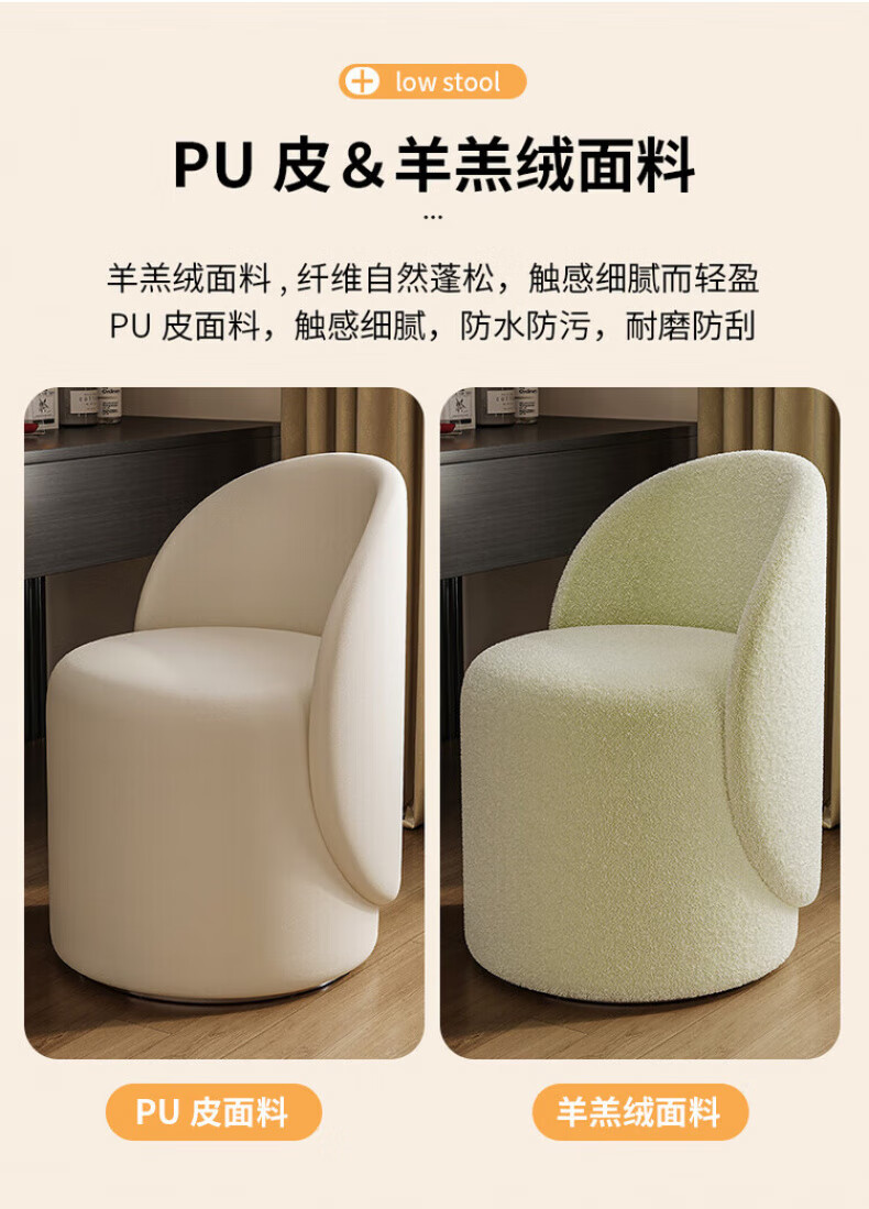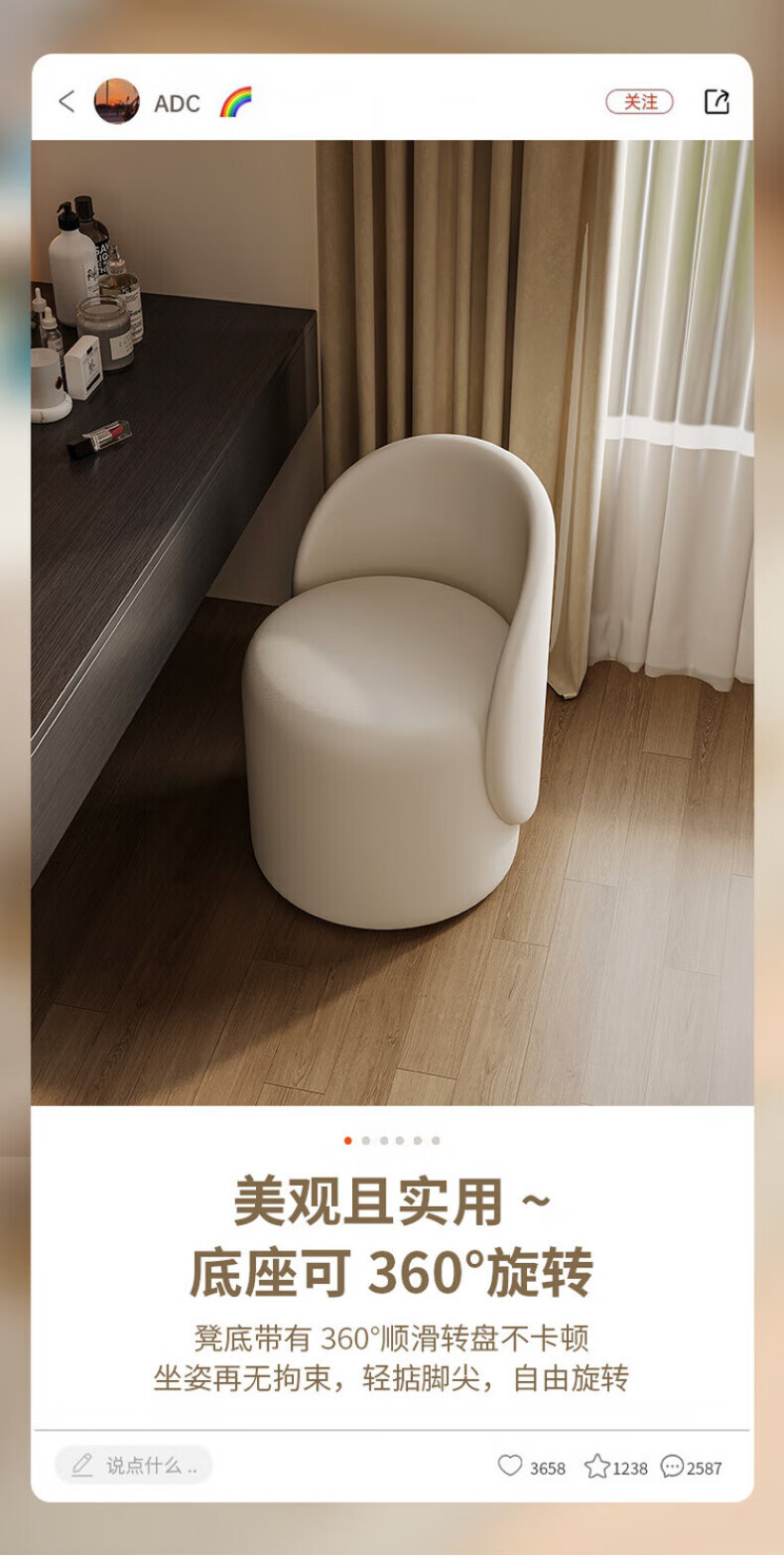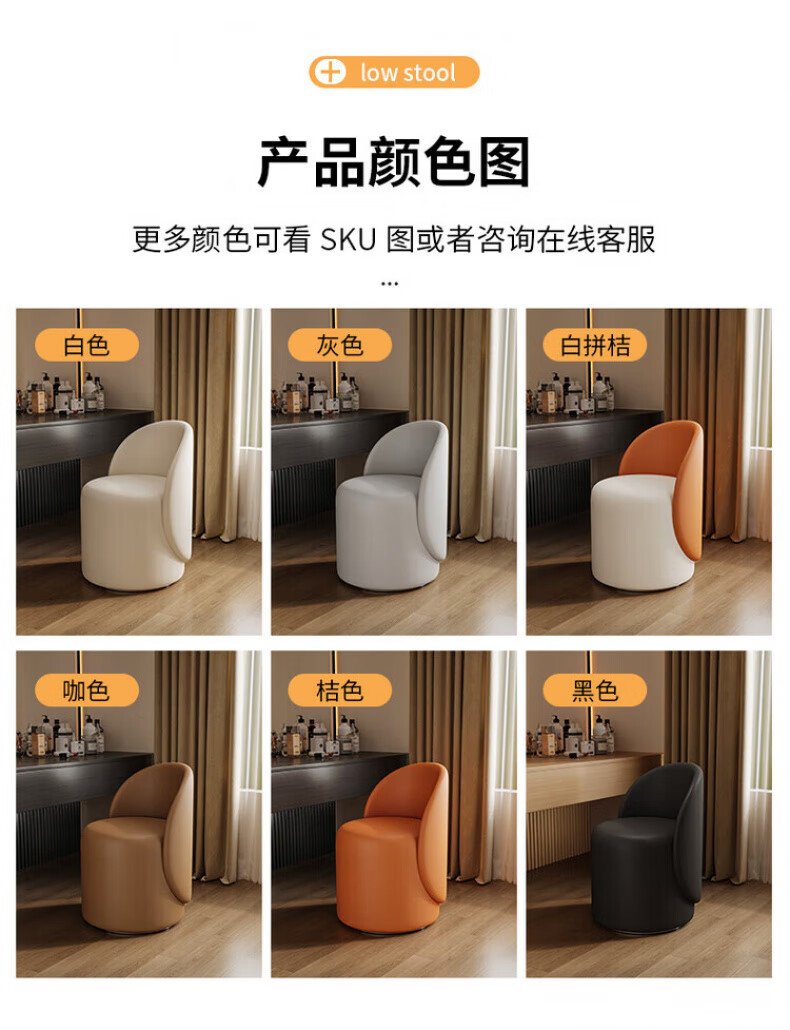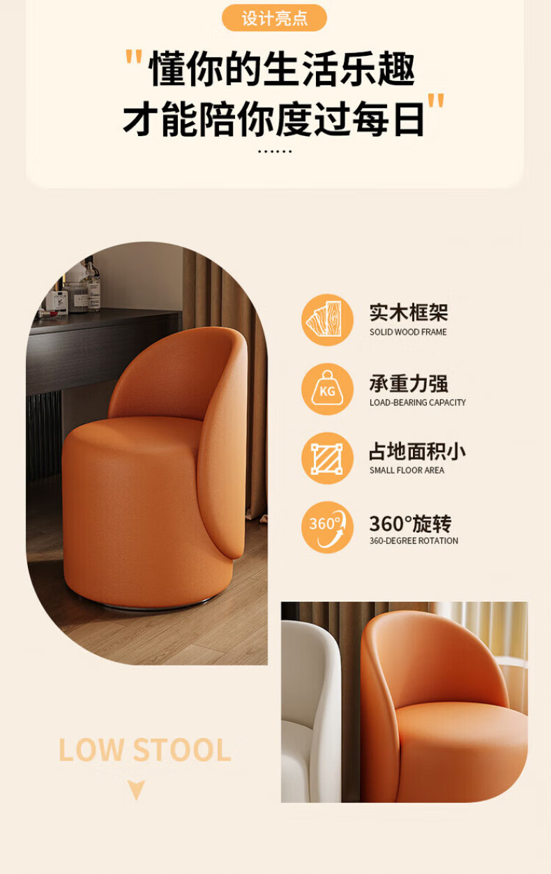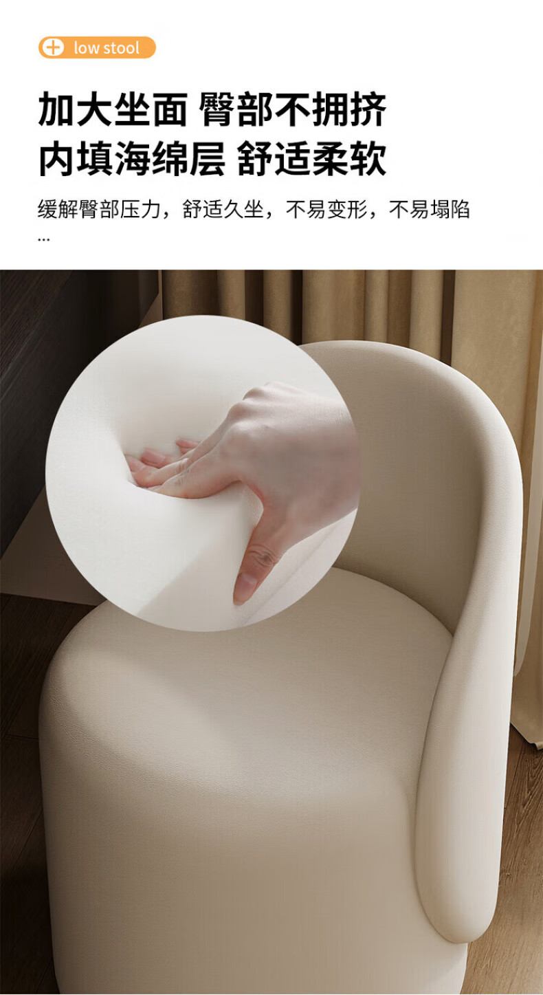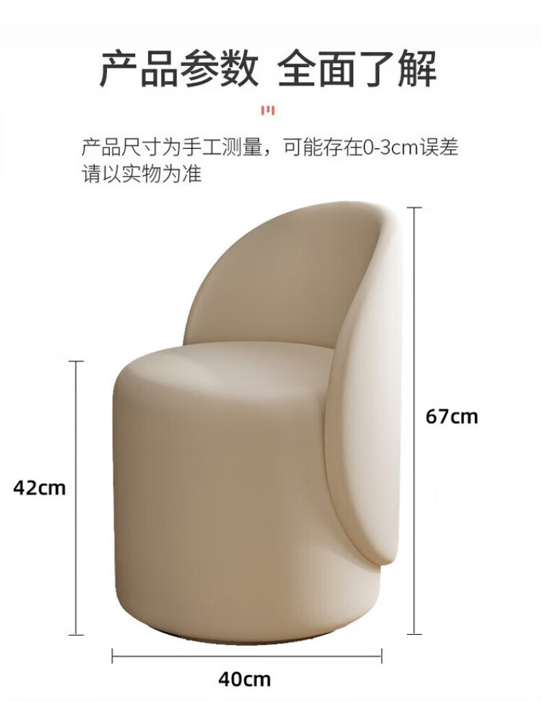 TRUHEIM German makeup stool light luxury home chair girls bedroom dressing table stool cloakroom rotating round stool high back model off-white (thick cat claw leather)