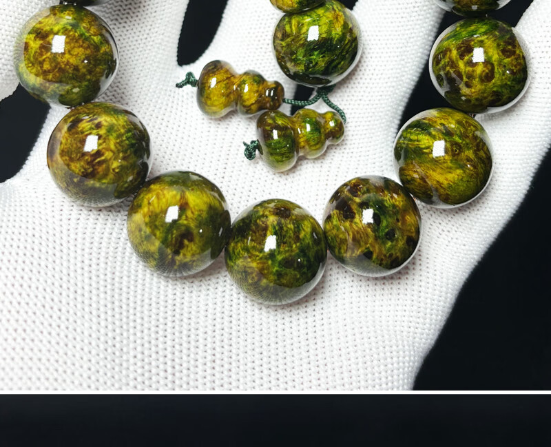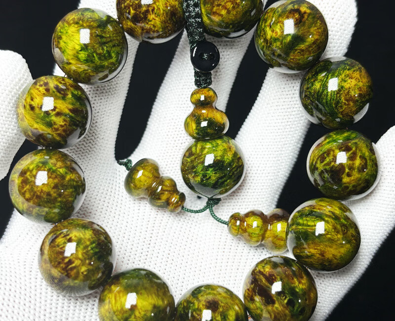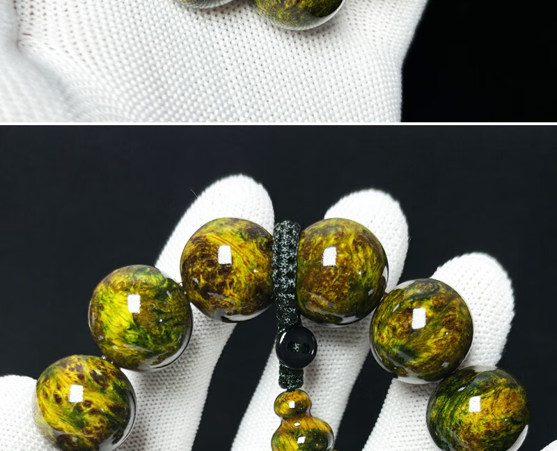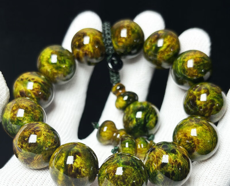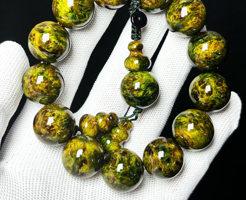 ADRIUS luxury high-end high-end amber wood northern agarwood full of pine clear seeds translucent bracelet Buddha beads ink painting bracelet ink painting 18mm 13 pieces