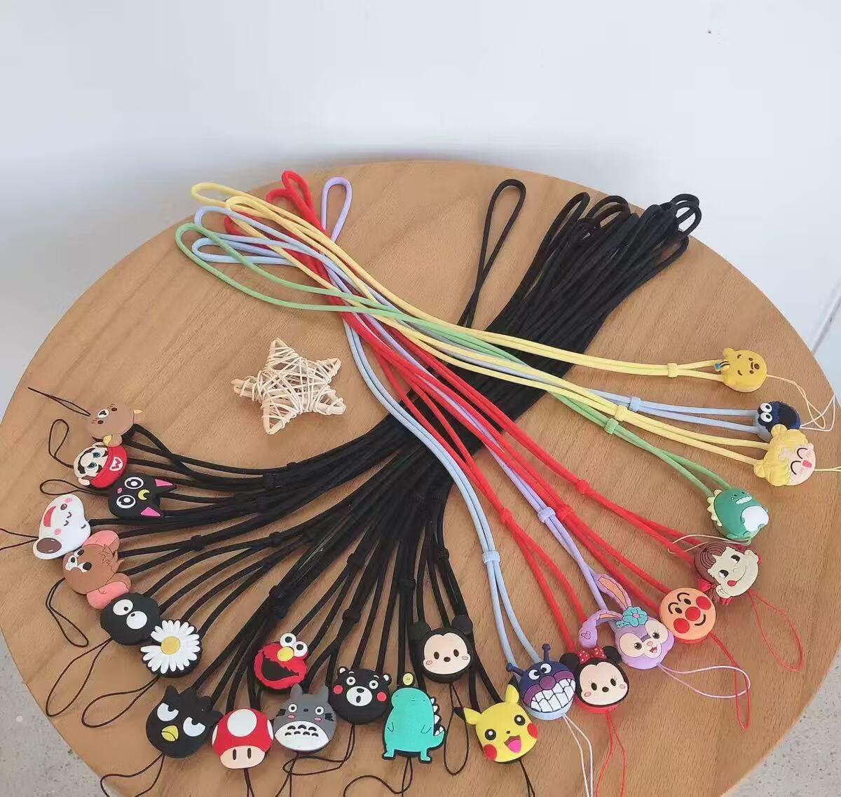 Cute cartoon mobile phone lanyard anti-break male and female doll pendant mobile phone chain jewelry long hanging neck sling nylon solid color doll mobile phone rope children's phone watch lanyard 2 random colors mobile phone pendant