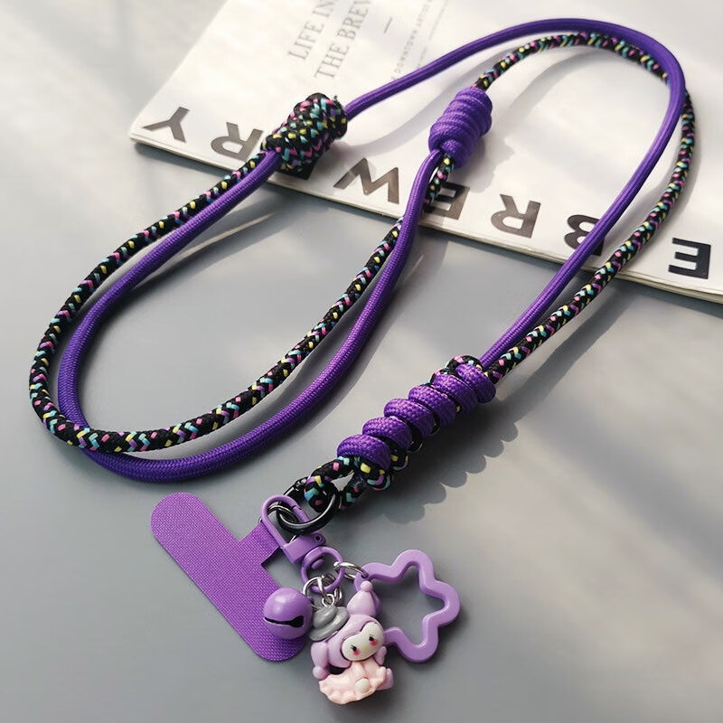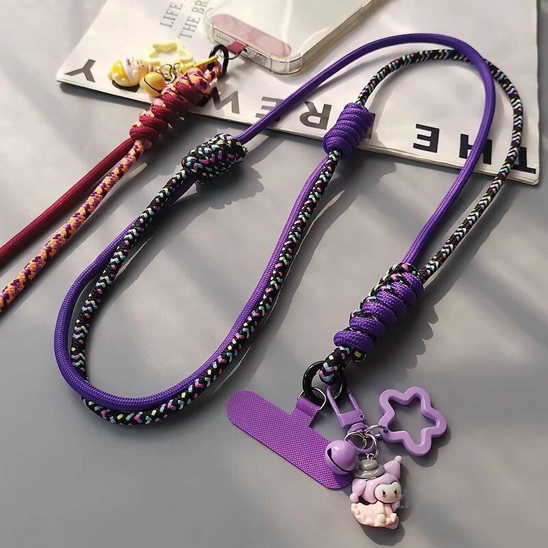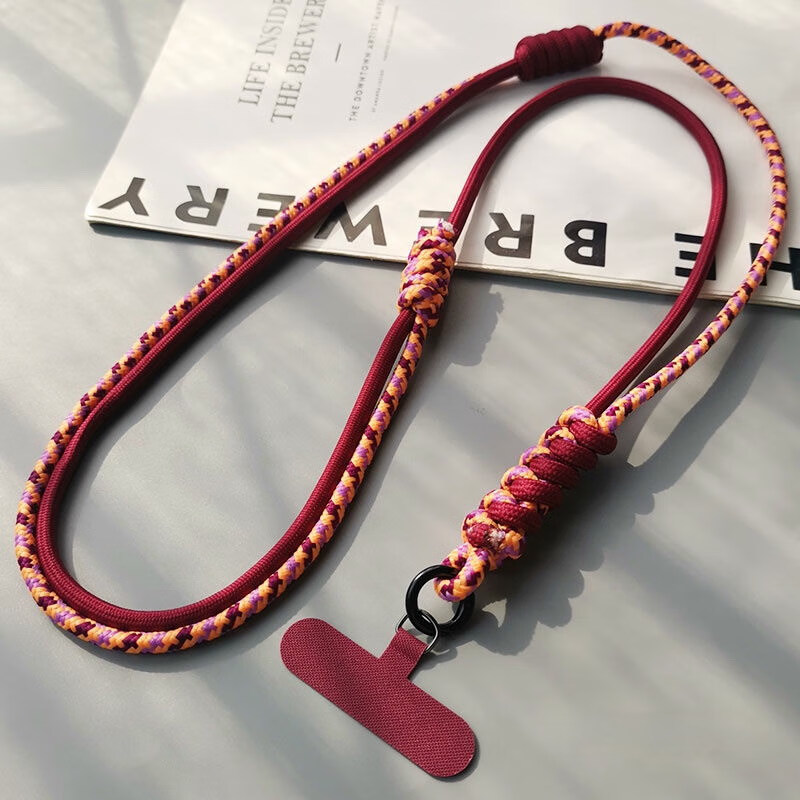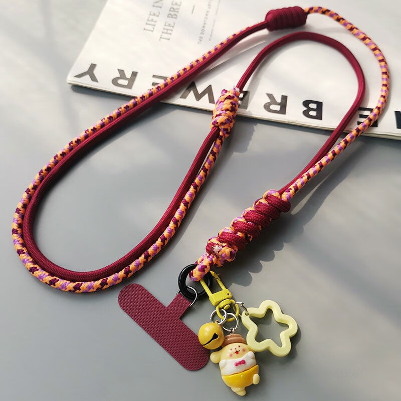 Double-knot long adjustable mobile phone lanyard crossbody can be carried on the back braided hanging chain pendant hanging neck little bee hanging chain for girls cute cartoon mobile phone hanging chain diagonal cross-body lanyard crossbody style wine red orange double knot adjustable braided rope + wine red card strip