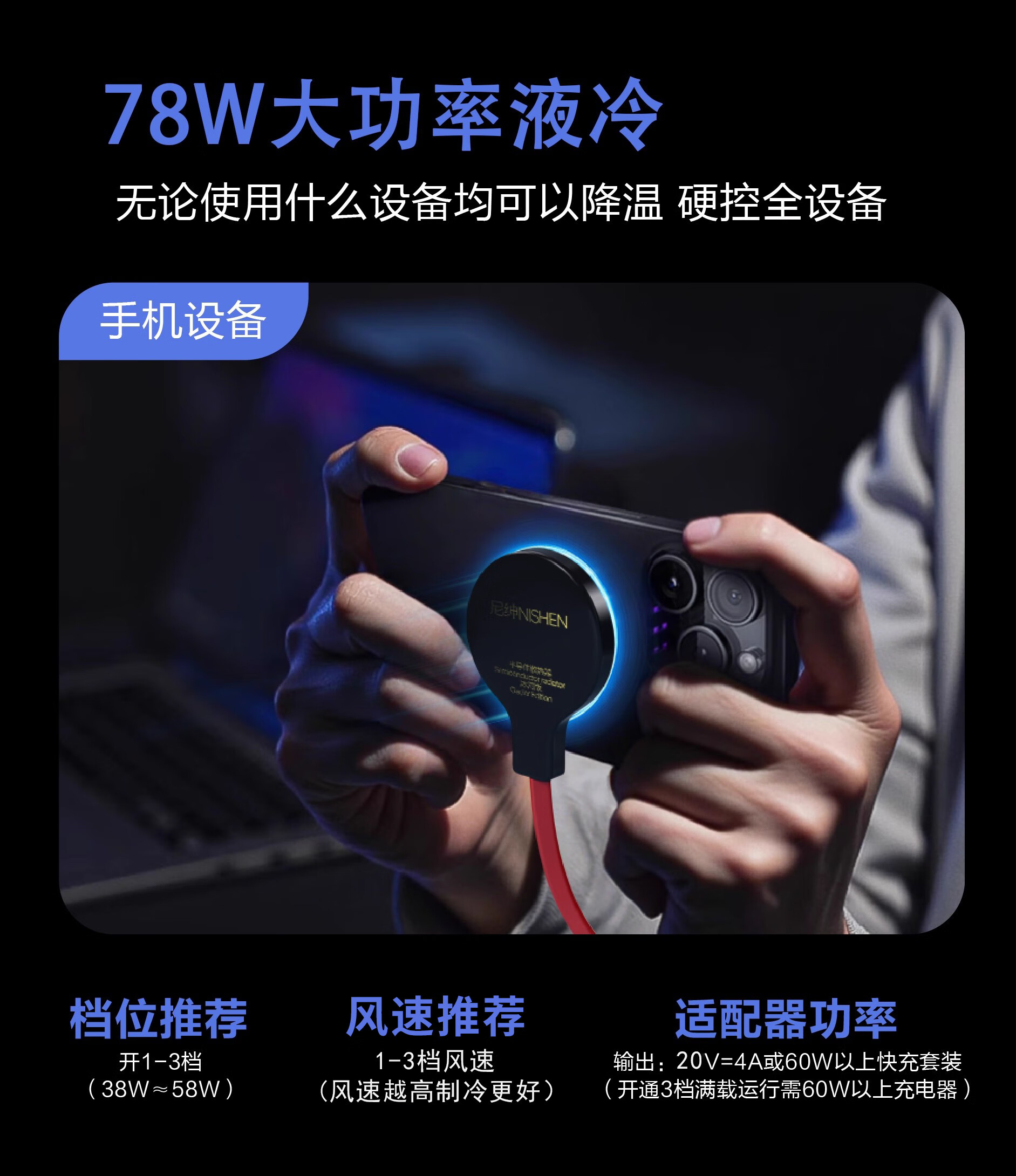 Nishen freezes in ten seconds, mobile phone radiator 78W high-power magnetic liquid cooling e-sports special semiconductor cooling suitable for tablet Huawei Apple Android mobile phone cooling space gray 78W top version upgraded water pipe 1.8 meters | intelligent voice
