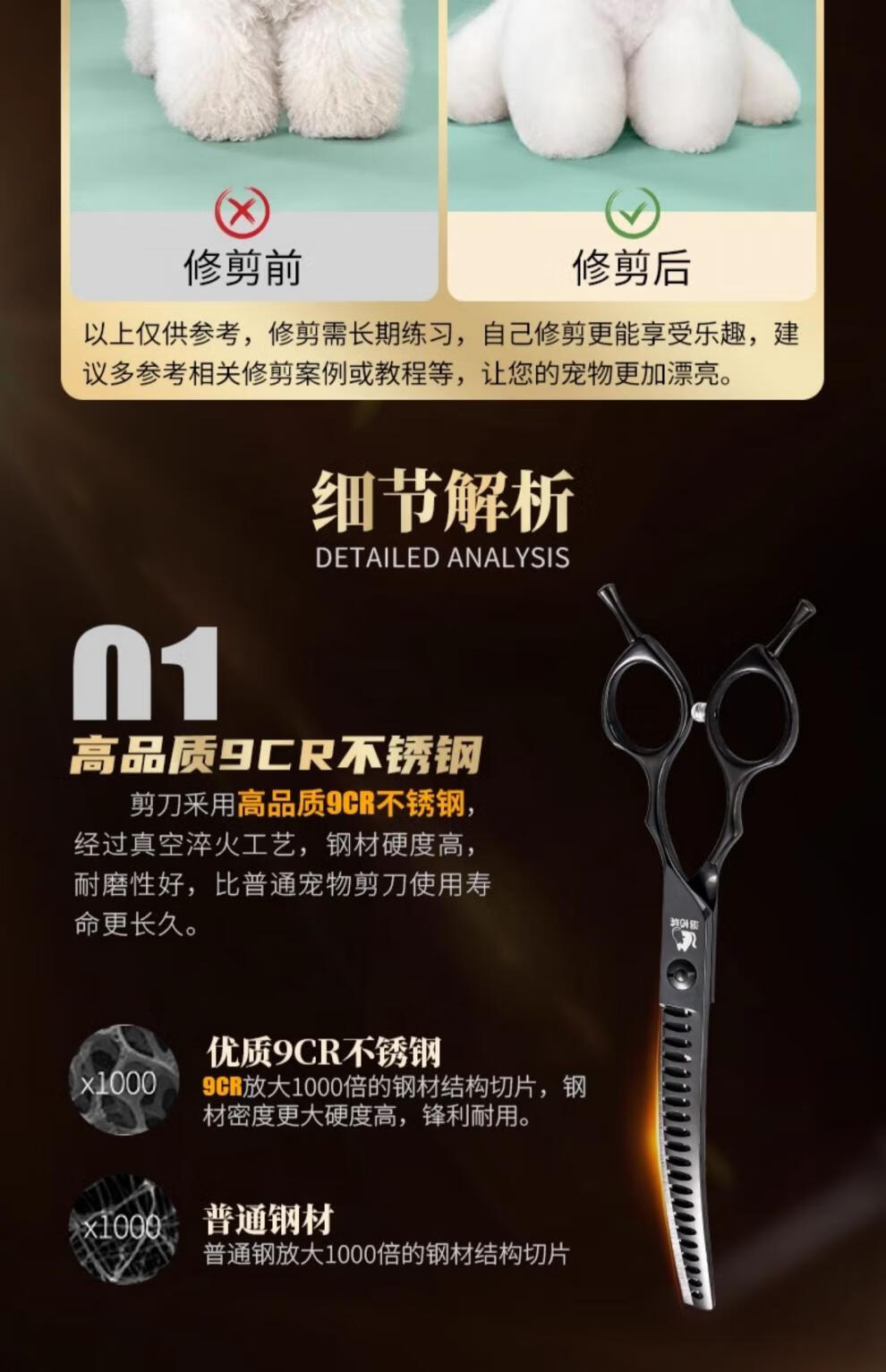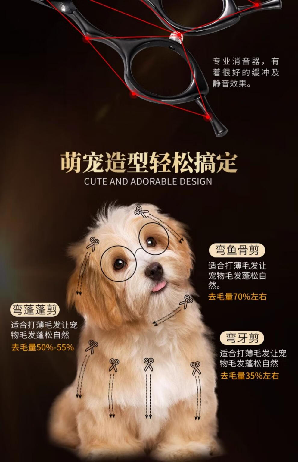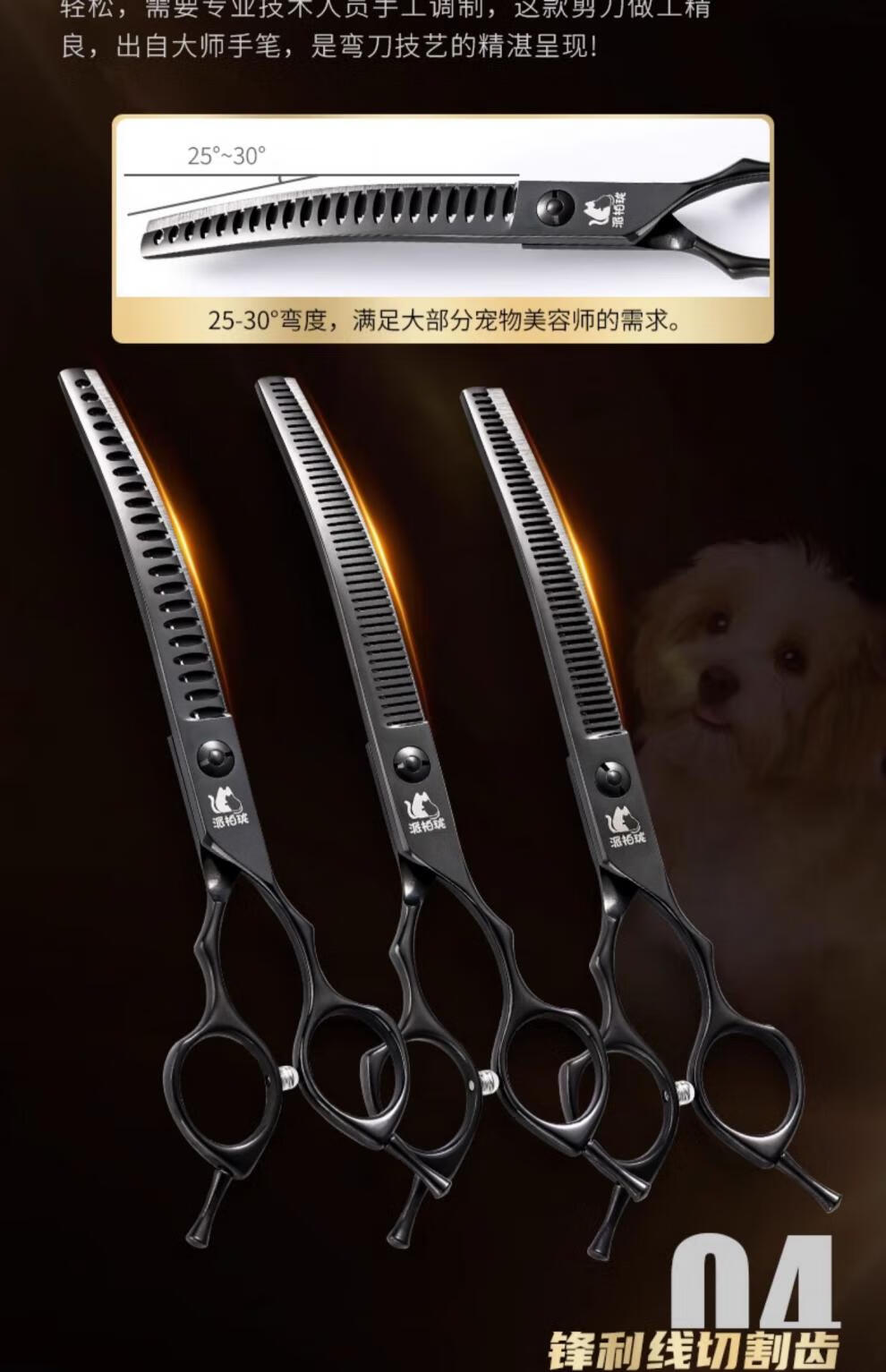 German pet grooming scissors set, special tools for dog hair shearing, curved teeth, curved fluffy scissors, curved fish bone scissors, 7-inch curved fluffy scissors