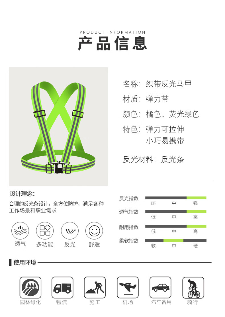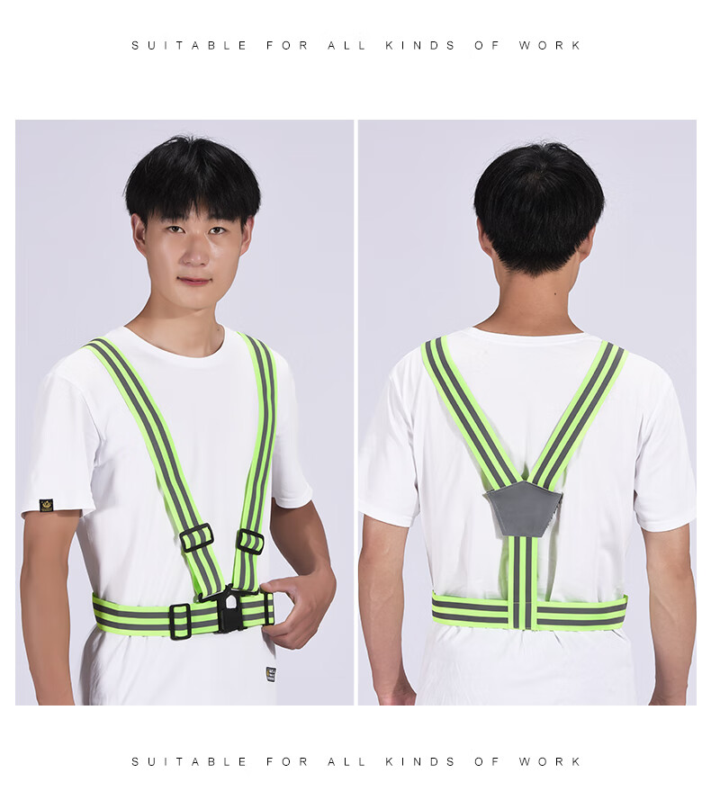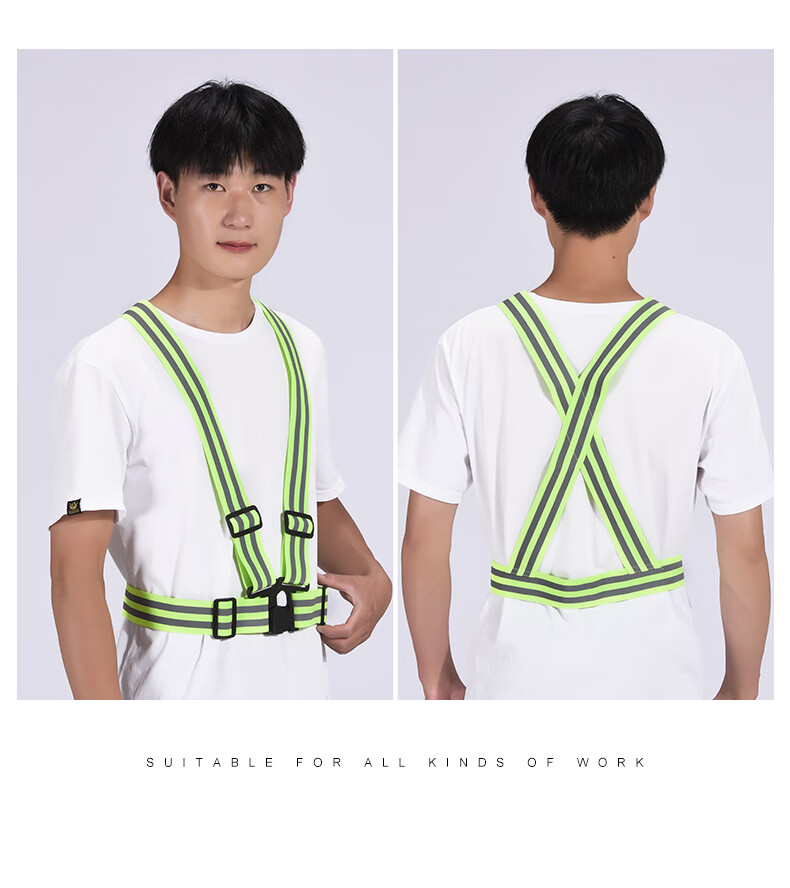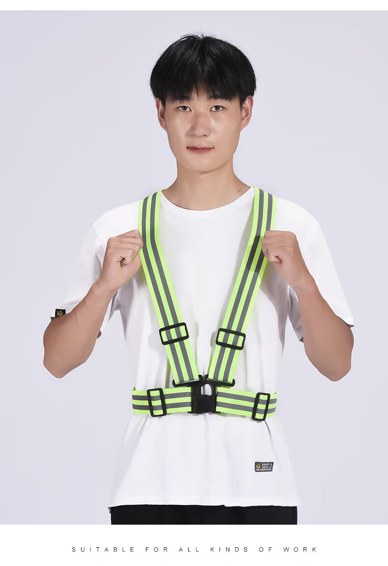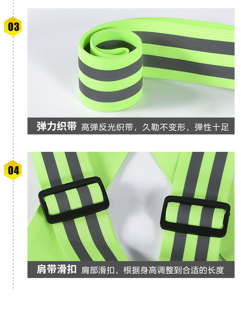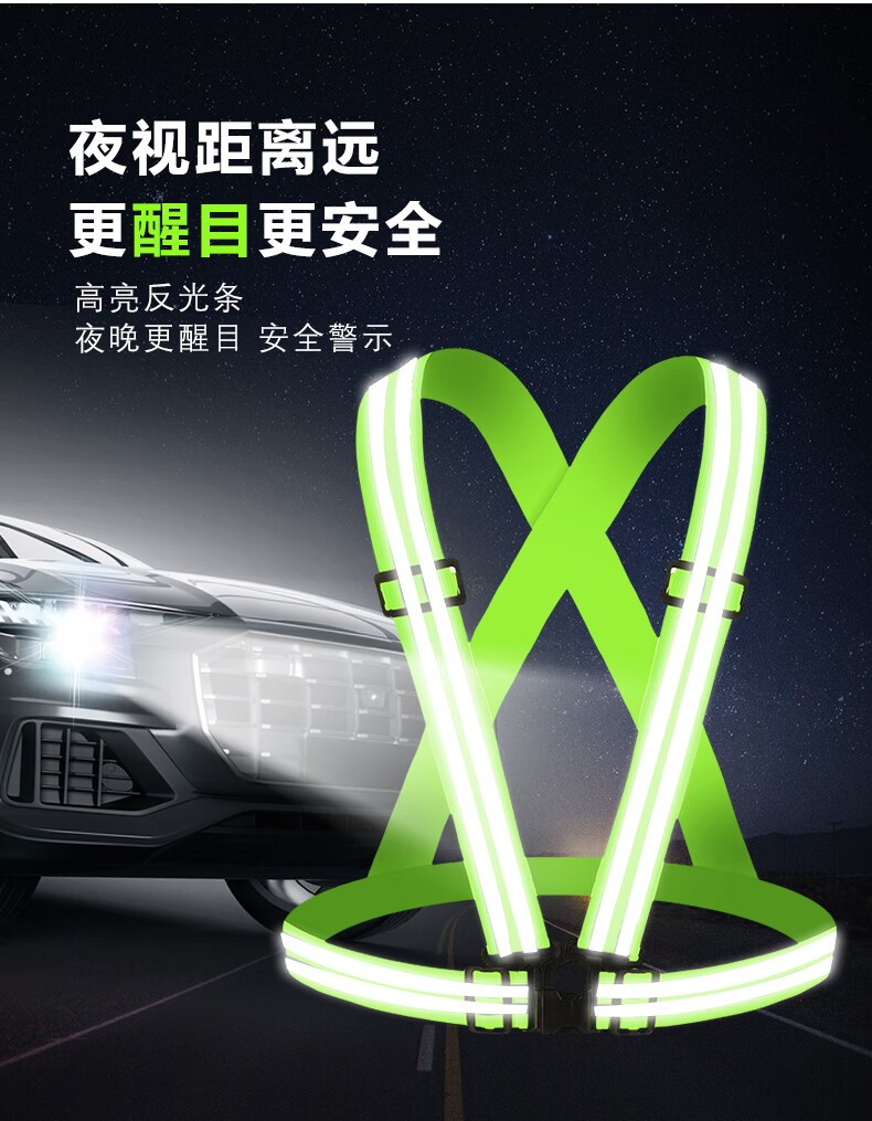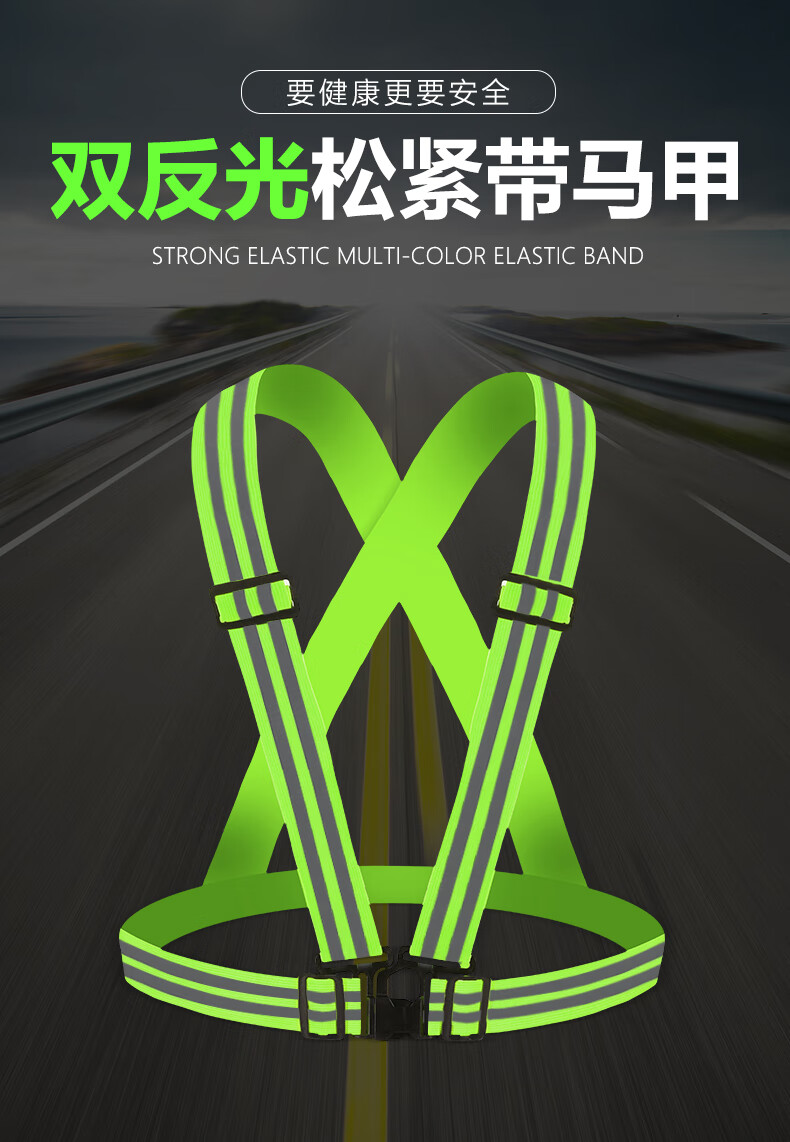 Reflective safety vest, vest, riding night running, sanitation engineering warning protection, elastic elastic straps, reflective clothing, 4*3cm (fluorescent green)