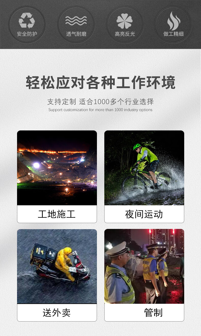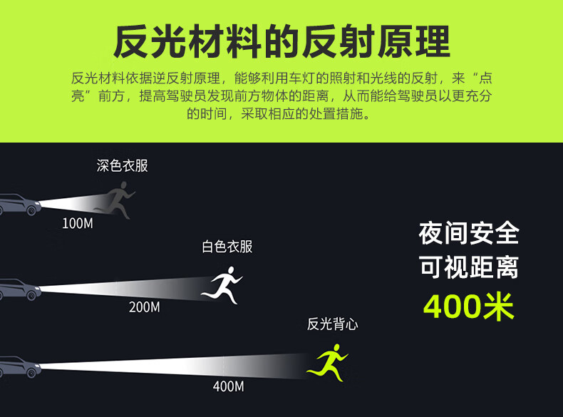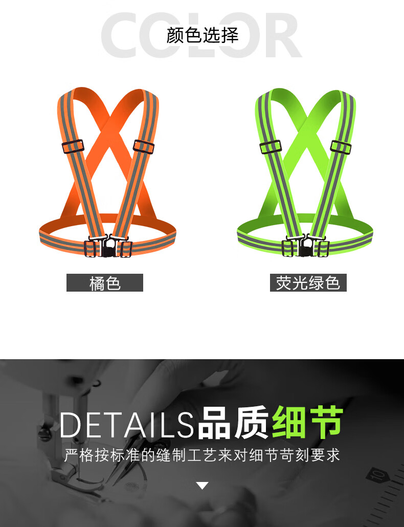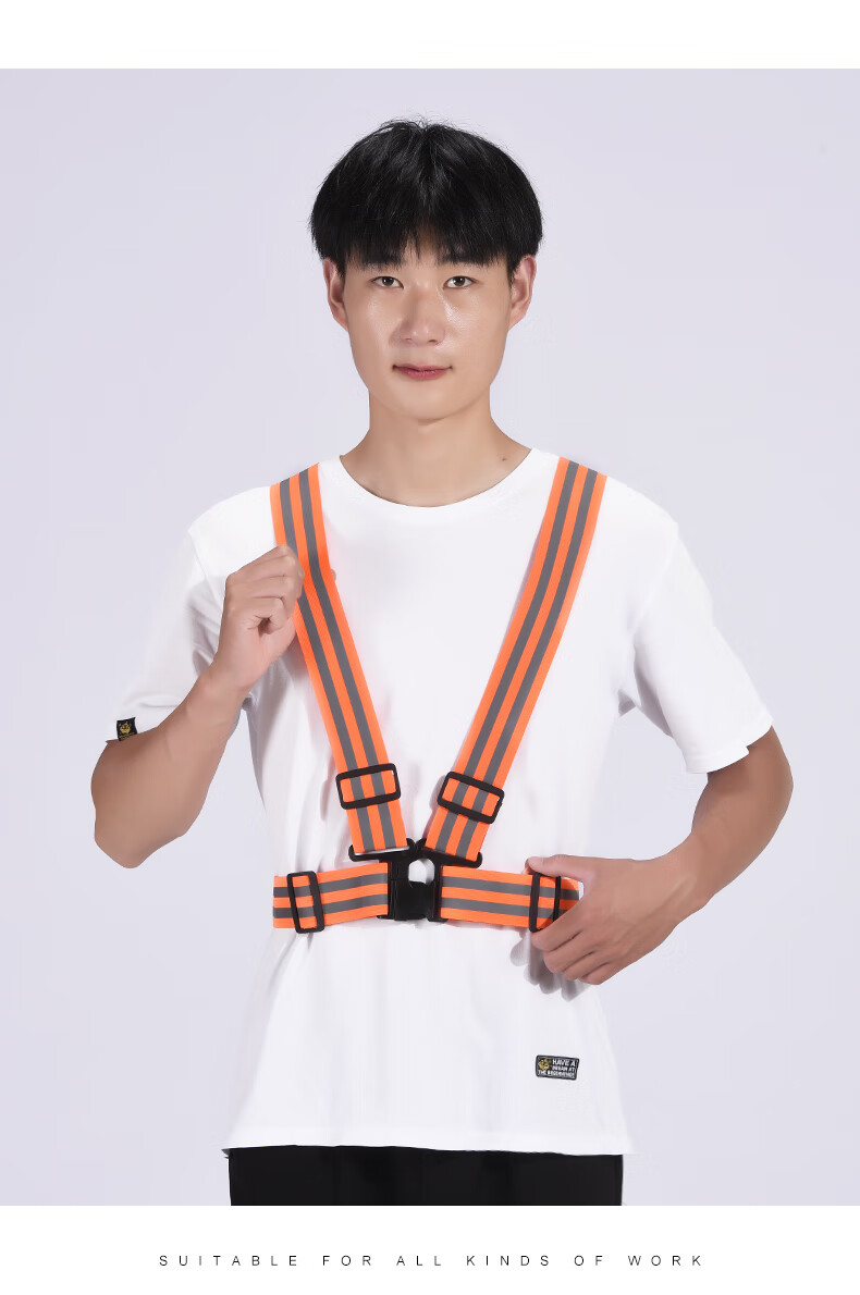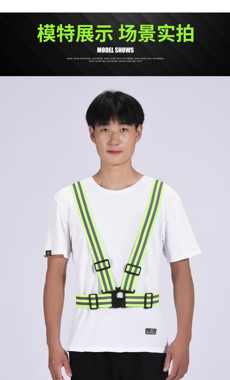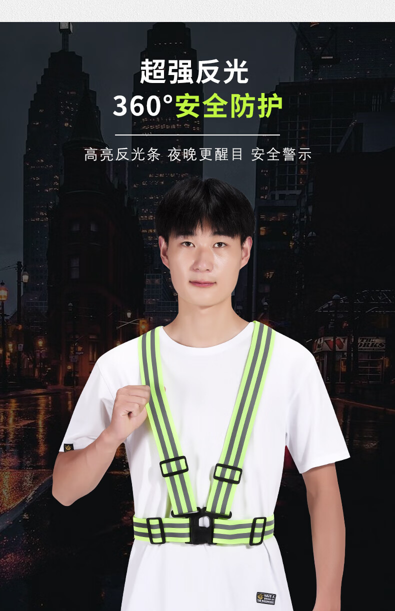 Reflective safety vest, vest, riding night running, sanitation engineering warning protection, elastic elastic straps, reflective clothing, 4*3cm (fluorescent green)