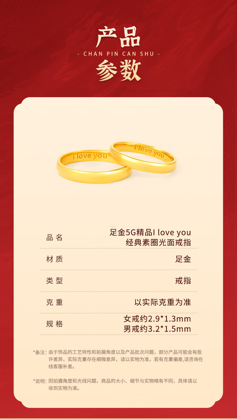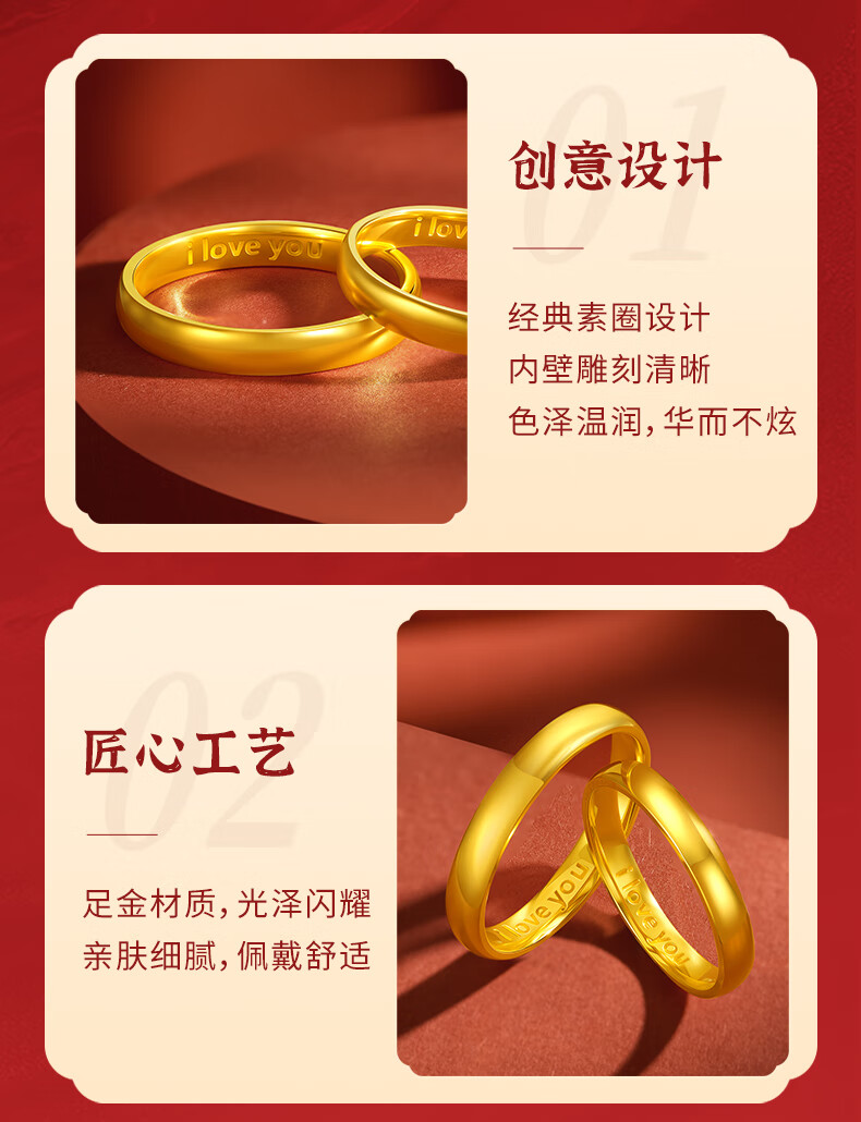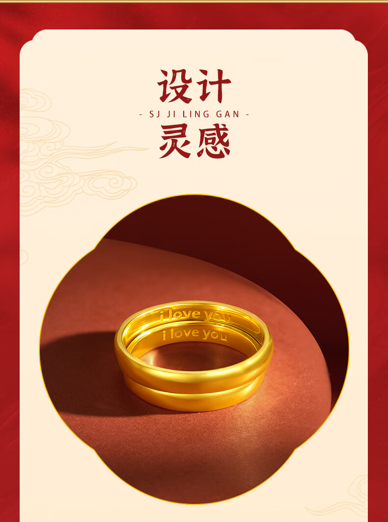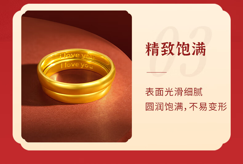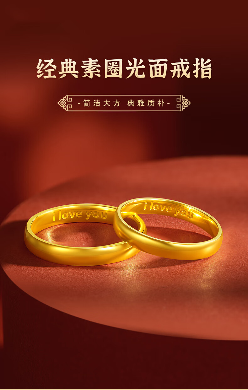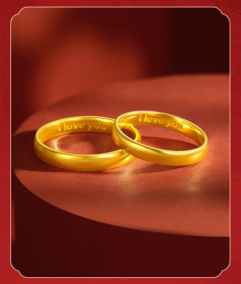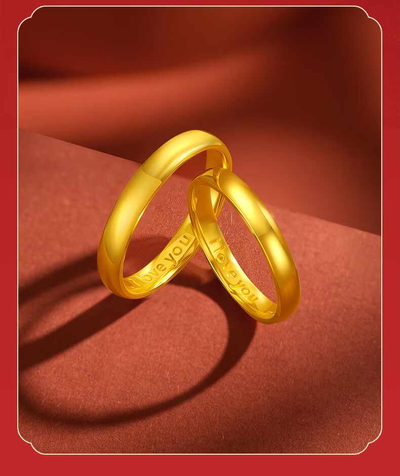 Beijing Gold Trading Center Co., Ltd. gold ring pure gold 999 plain ring iloveyou couple engagement ring birthday and Valentine's Day gift for girlfriend, female ring 12# about 3.53g solid