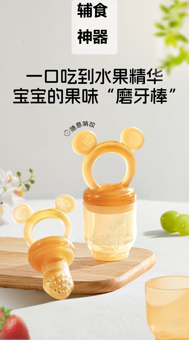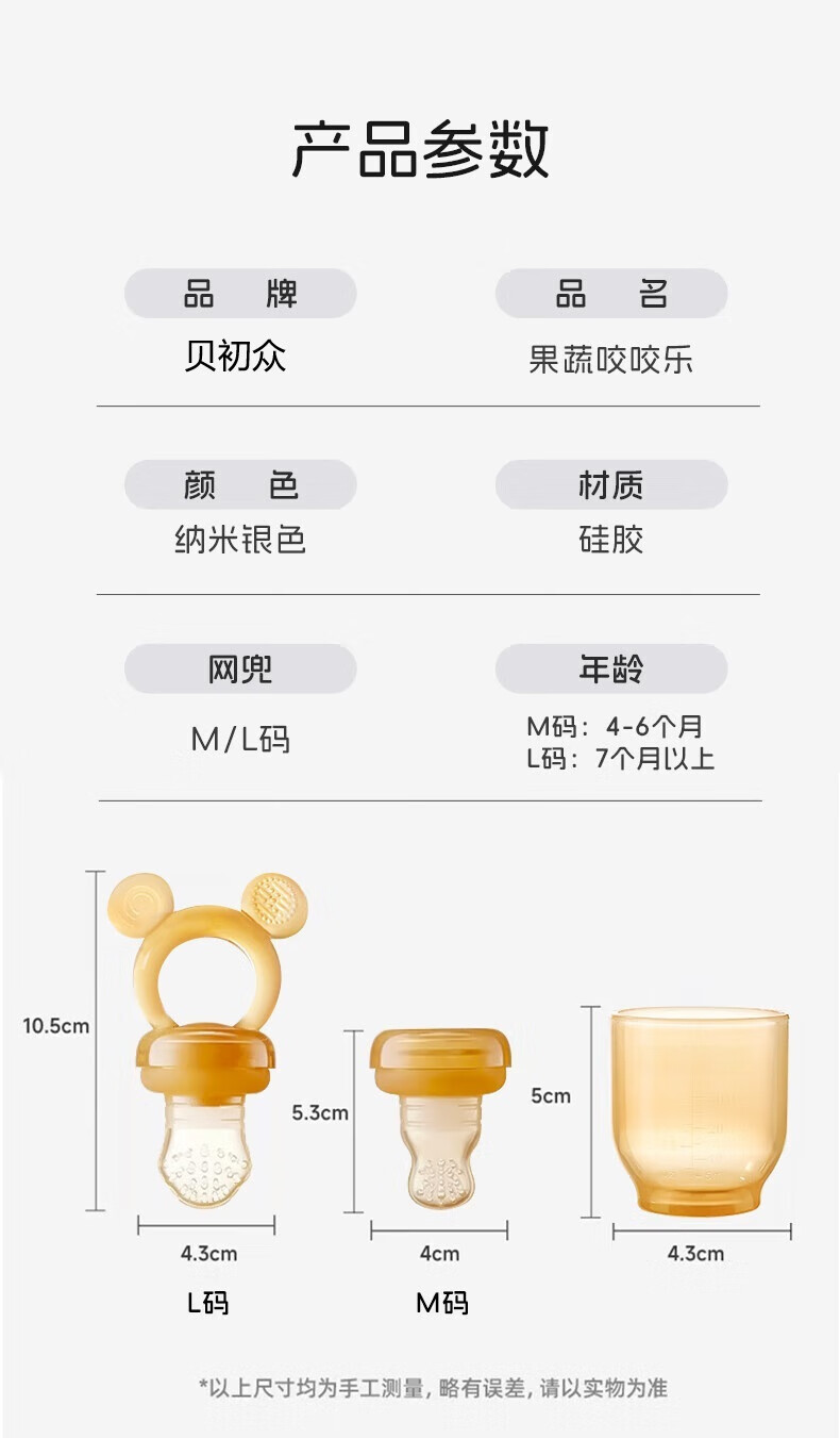 Bei Chuzhong baby's fruit-eating artifact bite bag baby's fruit and vegetable food supplement artifact silicone chewing music oral comfort teether L size 1 pack full silicone chewing music