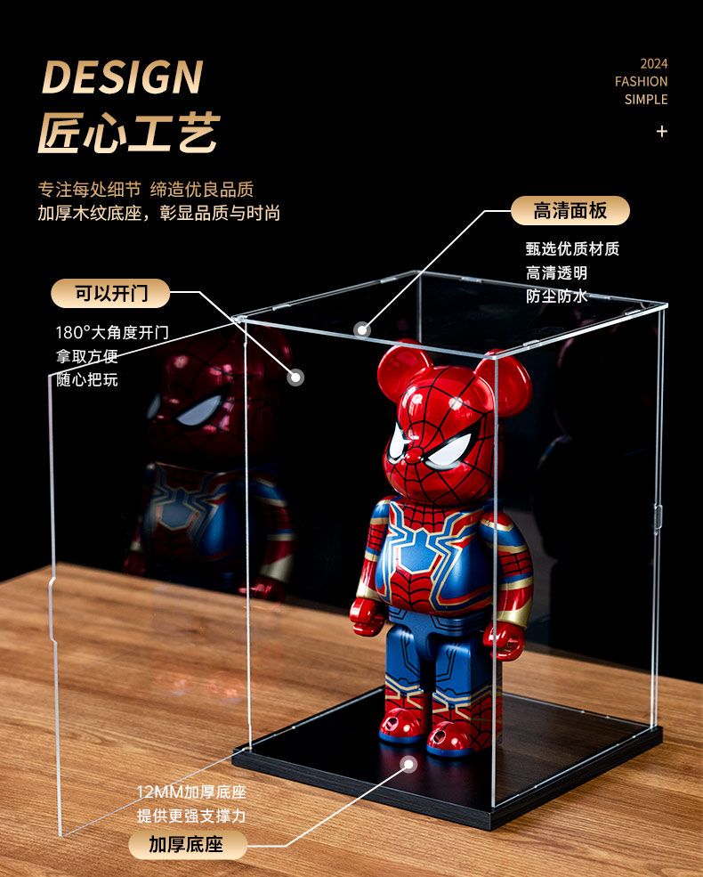 Acrylic return light display box is suitable for cool-point emerald phoenix crown metal puzzle three-dimensional model storage dust cover, matte black return light model 20x20x30cm display box only