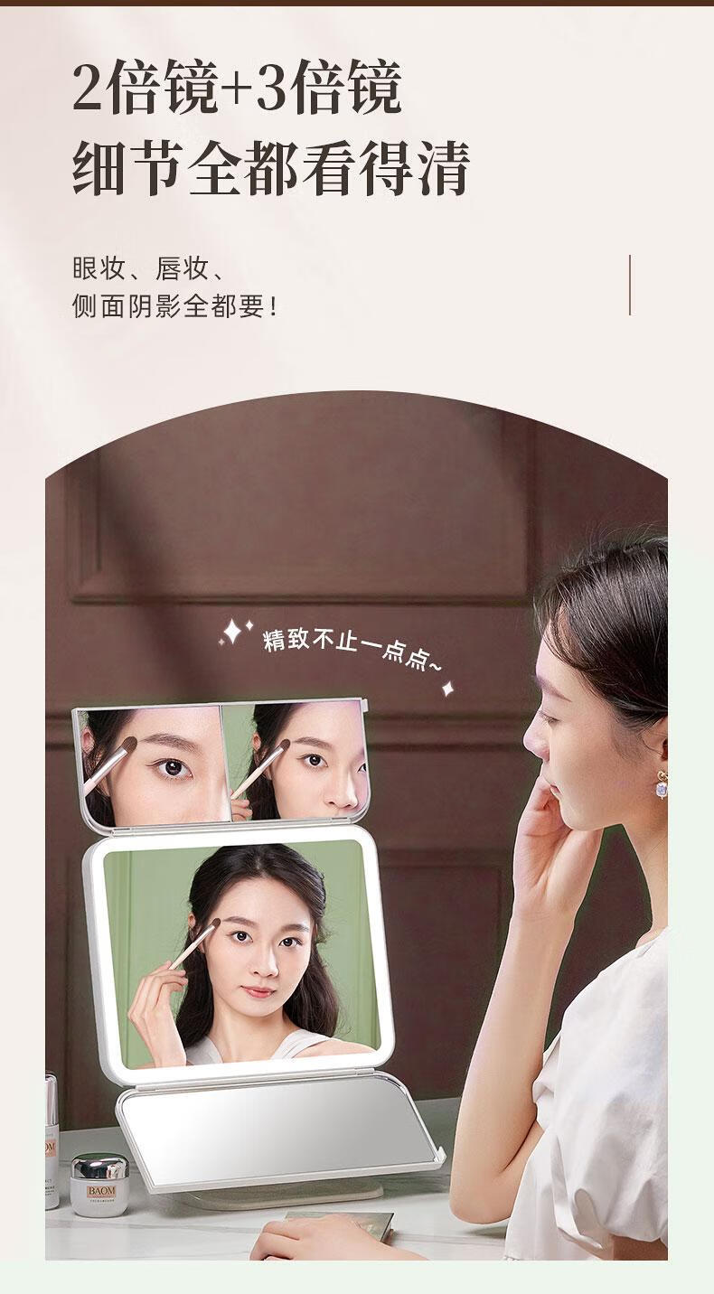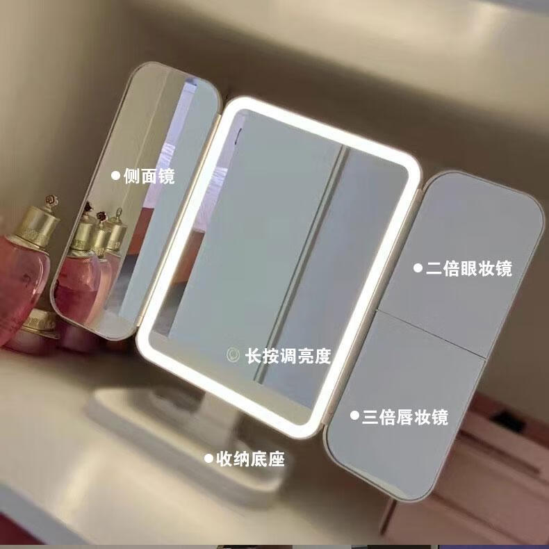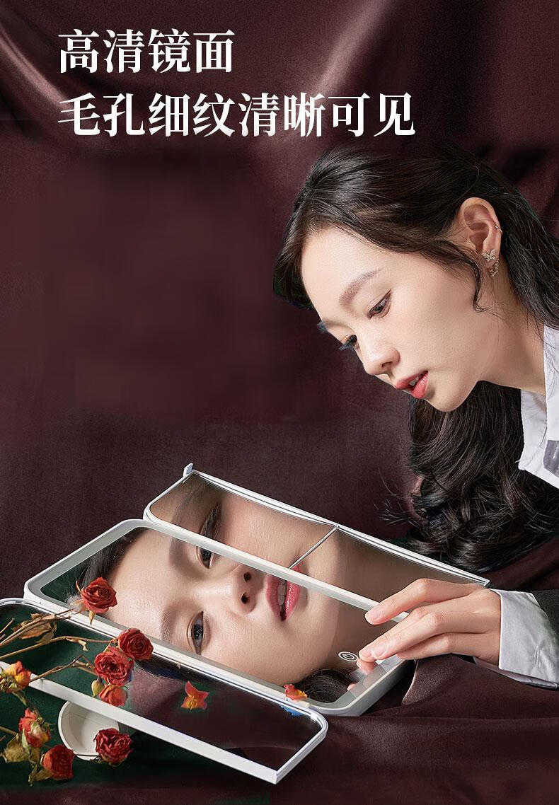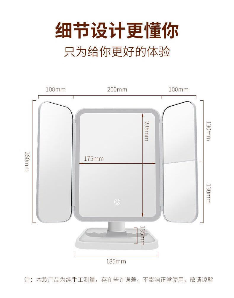 YUBAE make-up mirror LED with light fill-in high-definition mirror three-sided folding gift for girlfriend birthday gift rechargeable upgraded version led folding make-up mirror